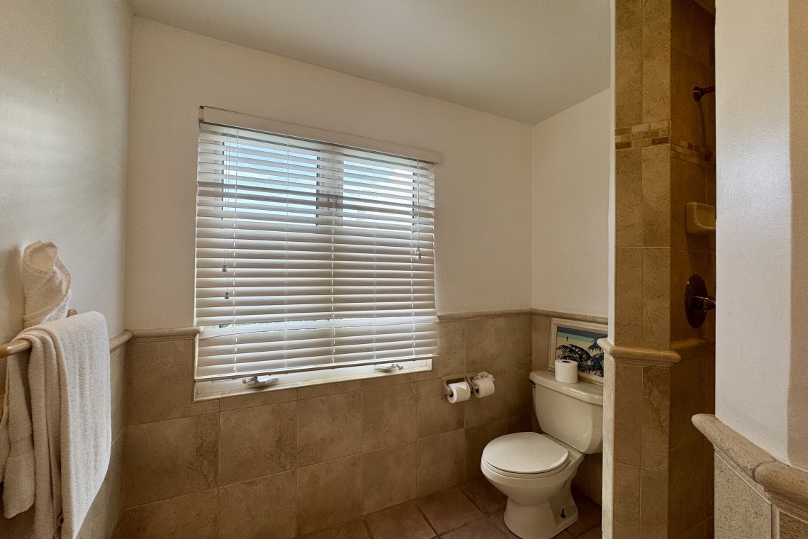 1) The bedroom and bathroom on the middle floor (Garden Suite) continue on with the light and breezy feeling of the suite, with a king-sized bed, AC, and adjacent bathroom with shower. Of course, you’ll be met with ocean views here too as the floor to ceiling window slides open wide to a Juliet balcony.