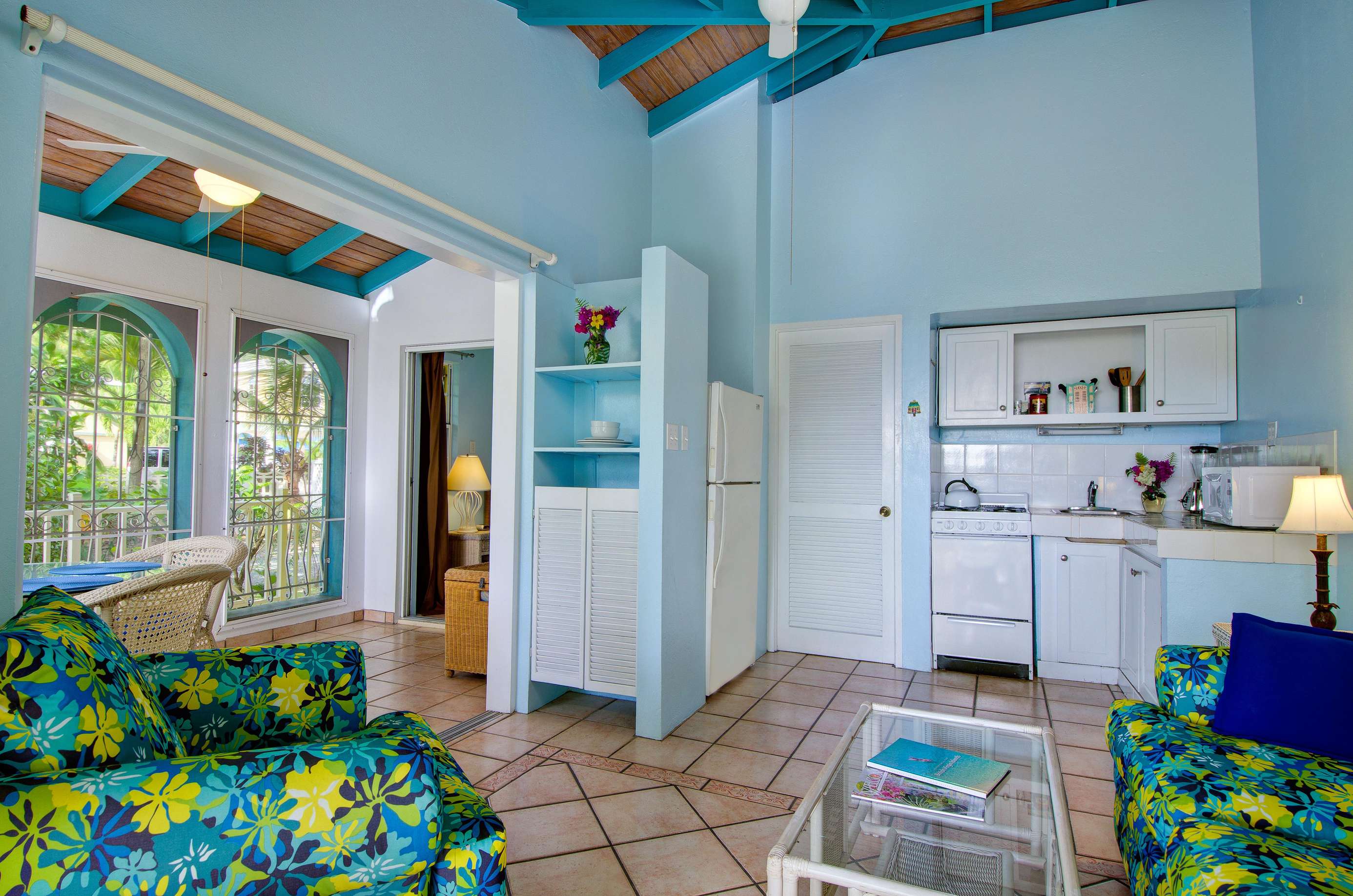 Set in a tropical, grassy walled garden, your personal porch is the perfect spot to enjoy a bite to eat or read a good book. You’ll be surrounded by kalabash, banana, coconut and almond trees, flowering hibiscus bushes and blooming bougainvillea – a blissful backdrop for lazing in a hammock or BBQing up a feast in the communal gazebo. Whilst there might not be beach views, this luscious garden area really whisks you away into a tropical paradise.