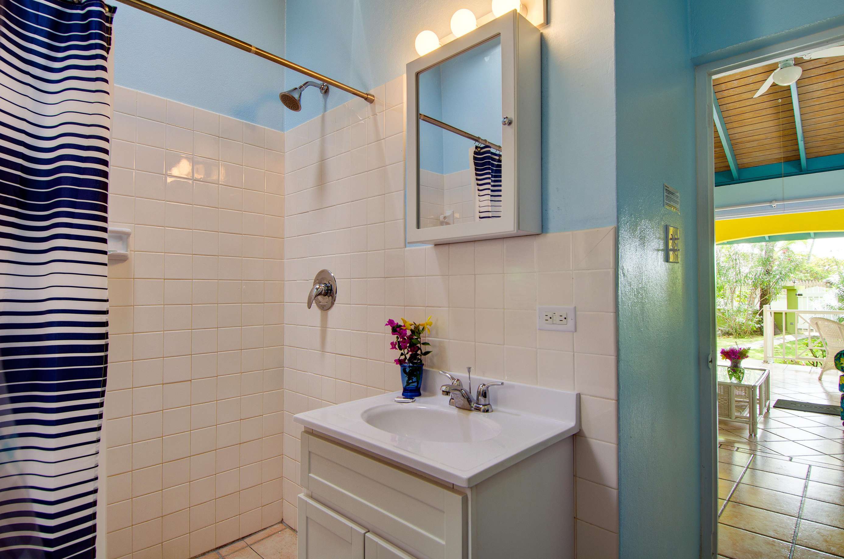1)You’ll feel right at home in the comfy ensuite bedroom with queen size bed, closet with safe, dresser, SmartTV, and beachy décor. The bathroom has a single vanity and spacious shower, perfect for cooling down after a day at the beach.