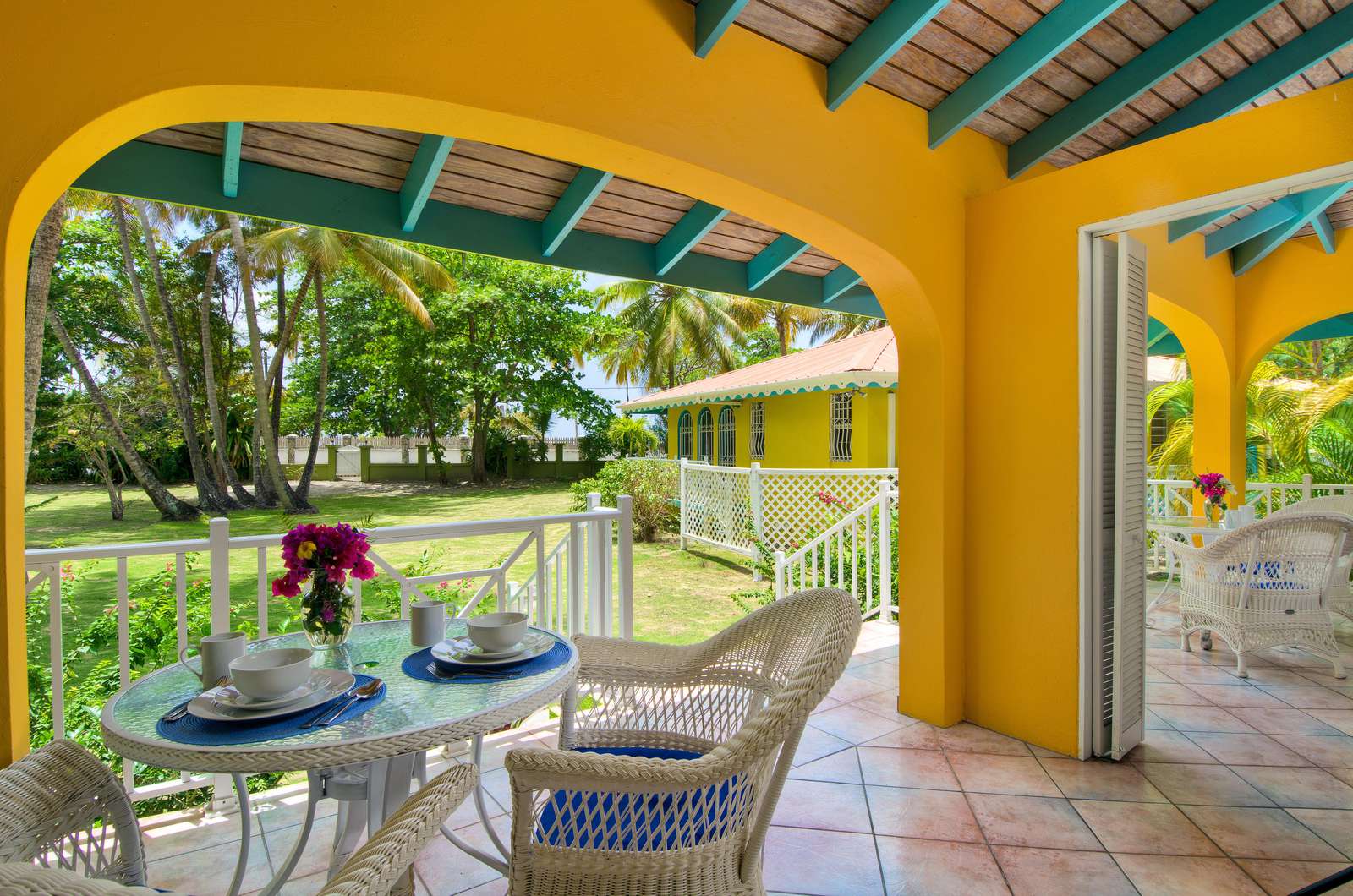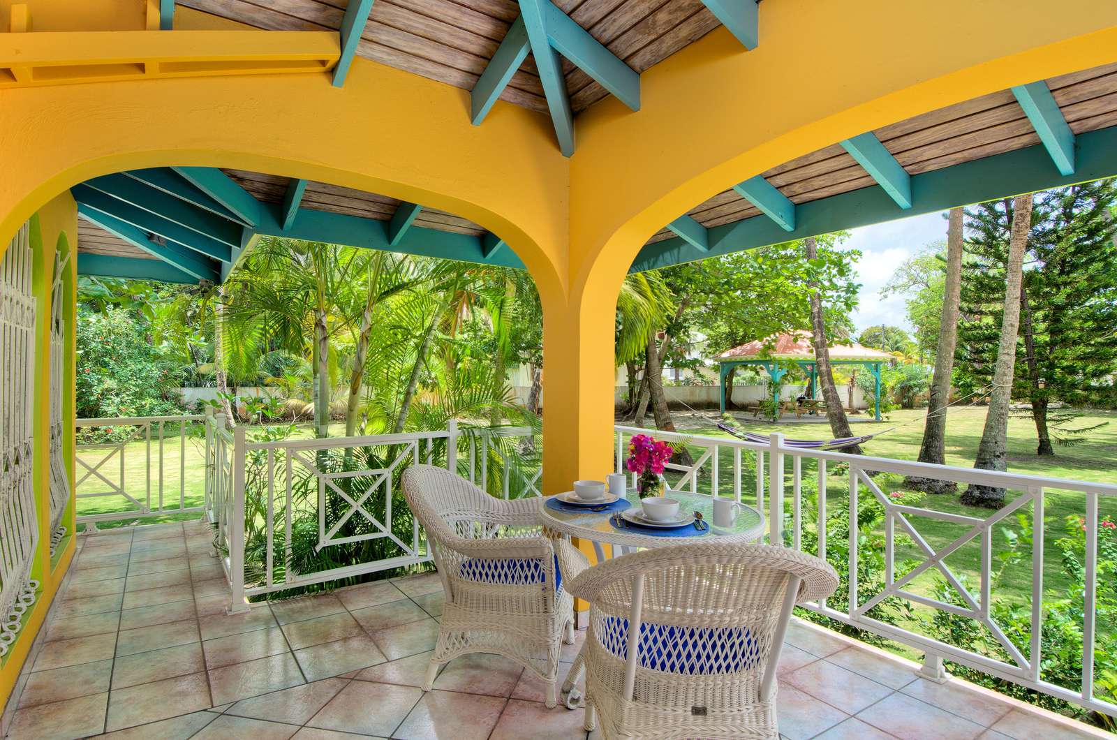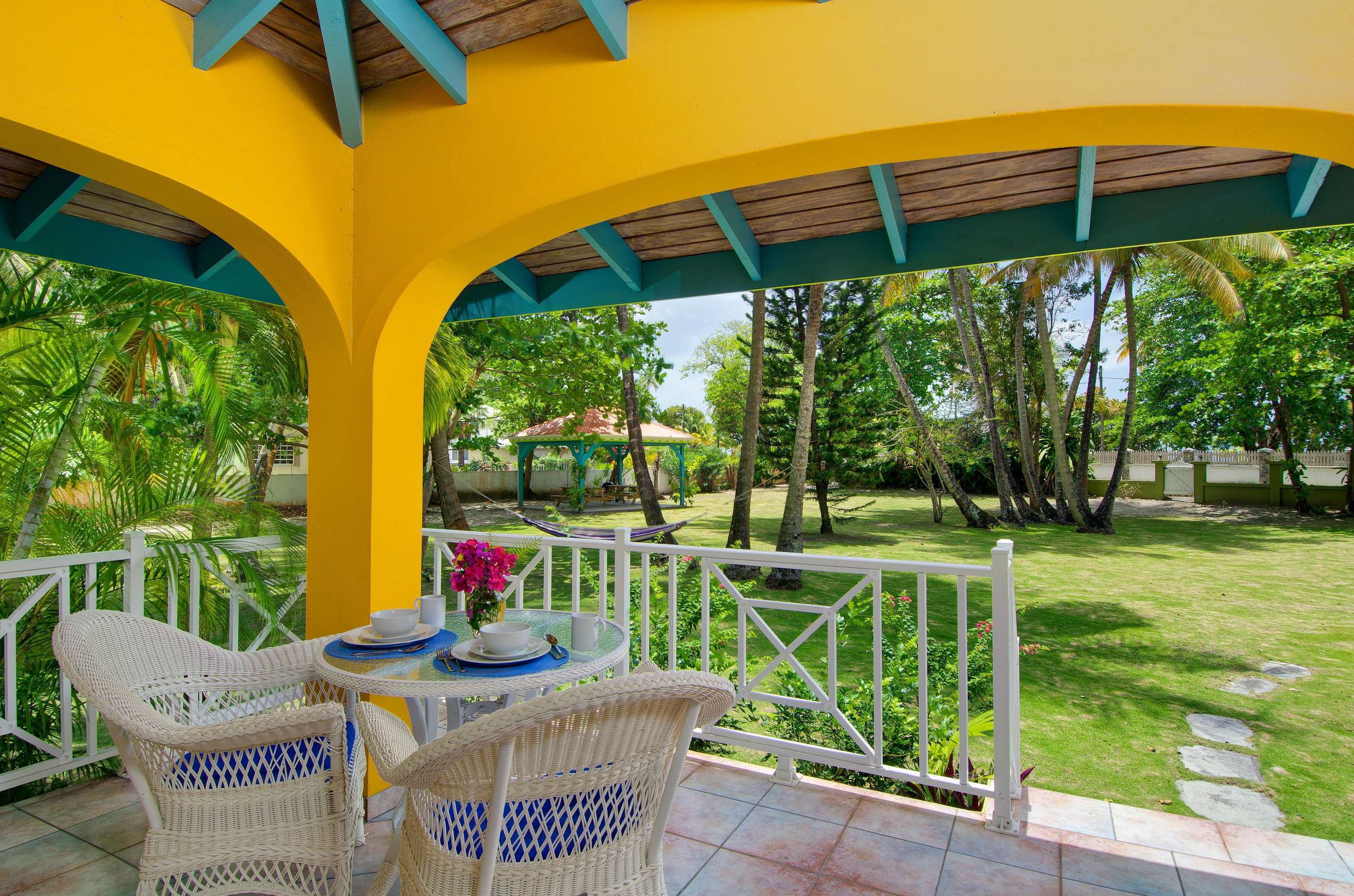 Set in a tropical, grassy walled garden, your personal porch is the perfect spot to enjoy a bite to eat or read a good book. You’ll be surrounded by kalabash, banana, coconut and almond trees, flowering hibiscus bushes and blooming bougainvillea – a blissful backdrop for lazing in a hammock or BBQing up a feast in the communal gazebo. Whilst there might not be beach views, this luscious garden area really whisks you away into a tropical paradise.