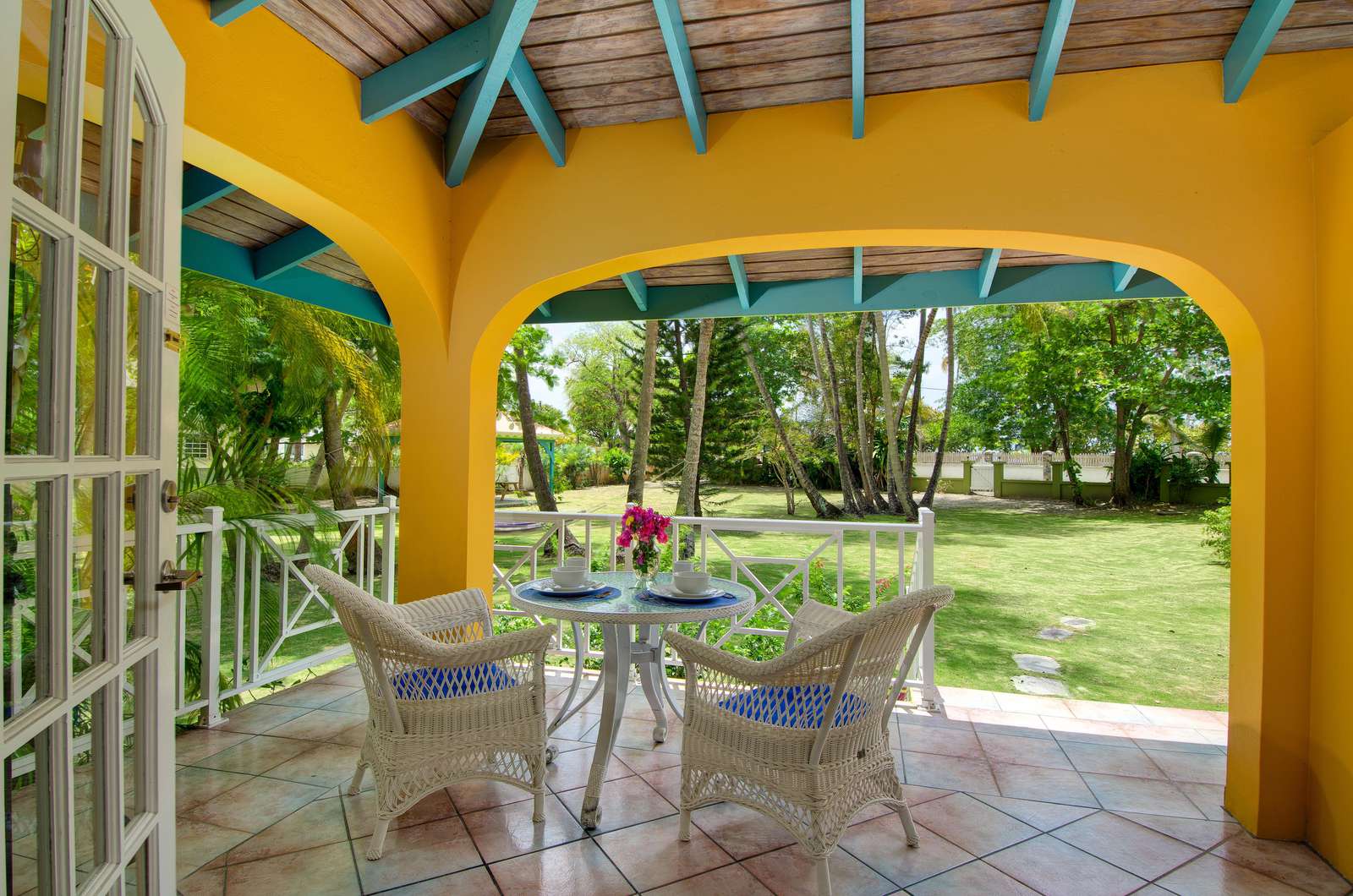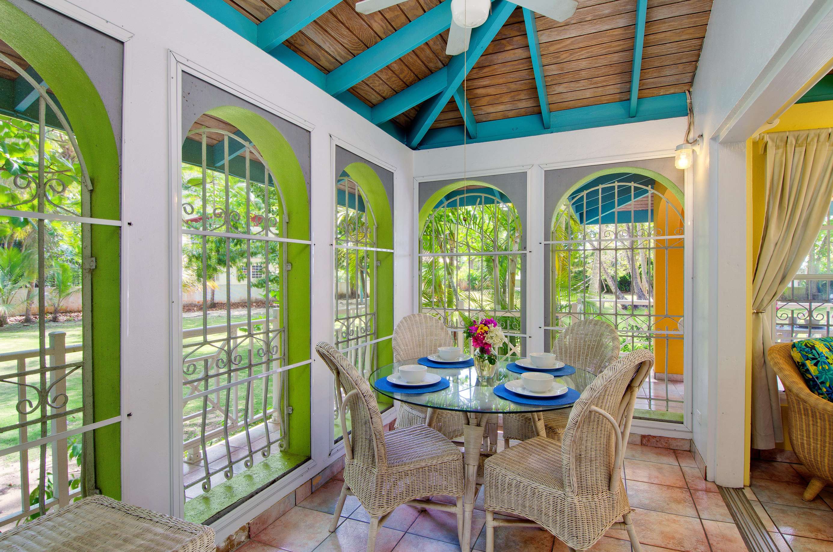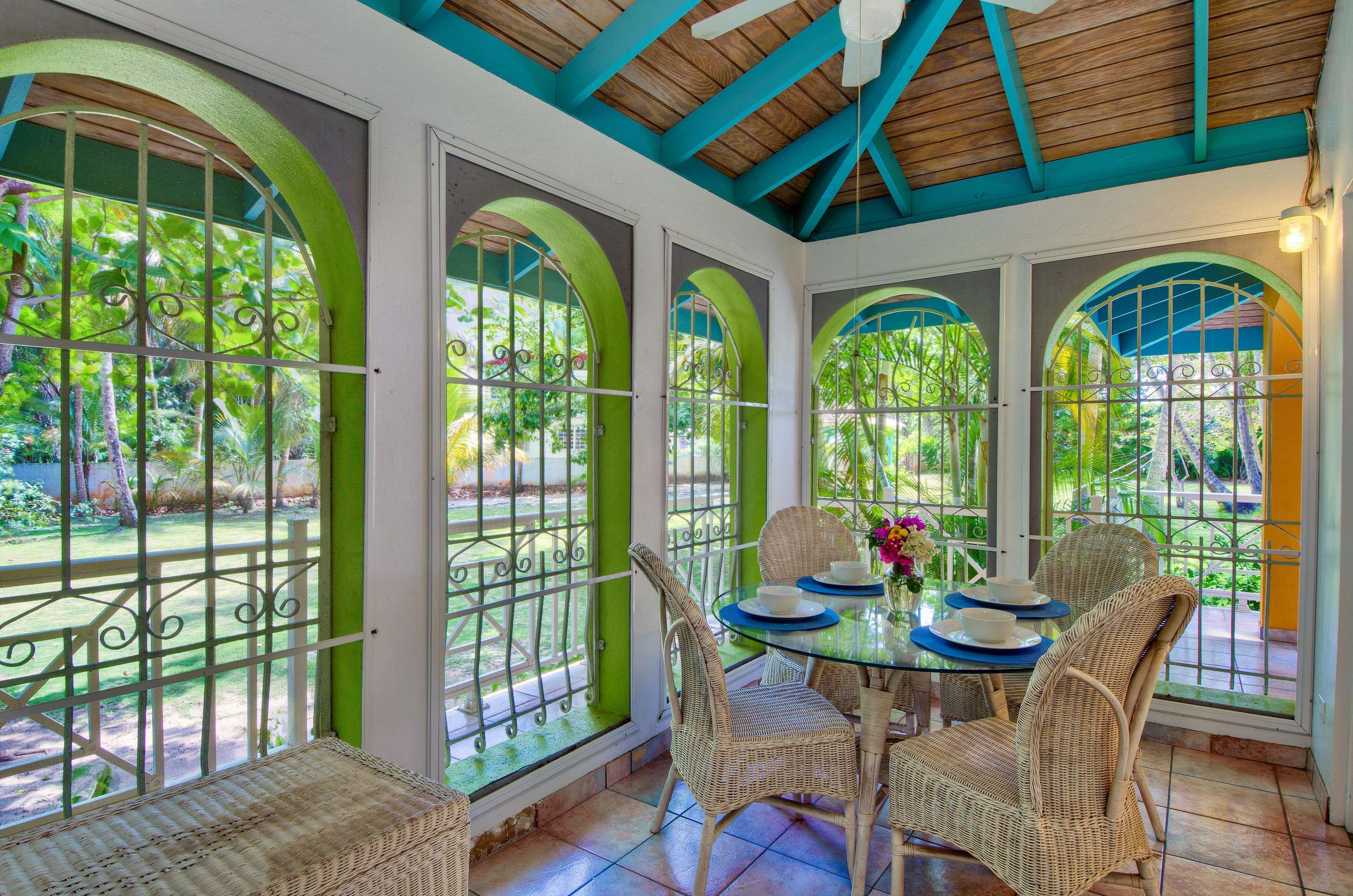 Set in a tropical, grassy walled garden, your personal porch is the perfect spot to enjoy a bite to eat or read a good book. You’ll be surrounded by kalabash, banana, coconut and almond trees, flowering hibiscus bushes and blooming bougainvillea – a blissful backdrop for lazing in a hammock or BBQing up a feast in the communal gazebo. Whilst there might not be beach views, this luscious garden area really whisks you away into a tropical paradise.