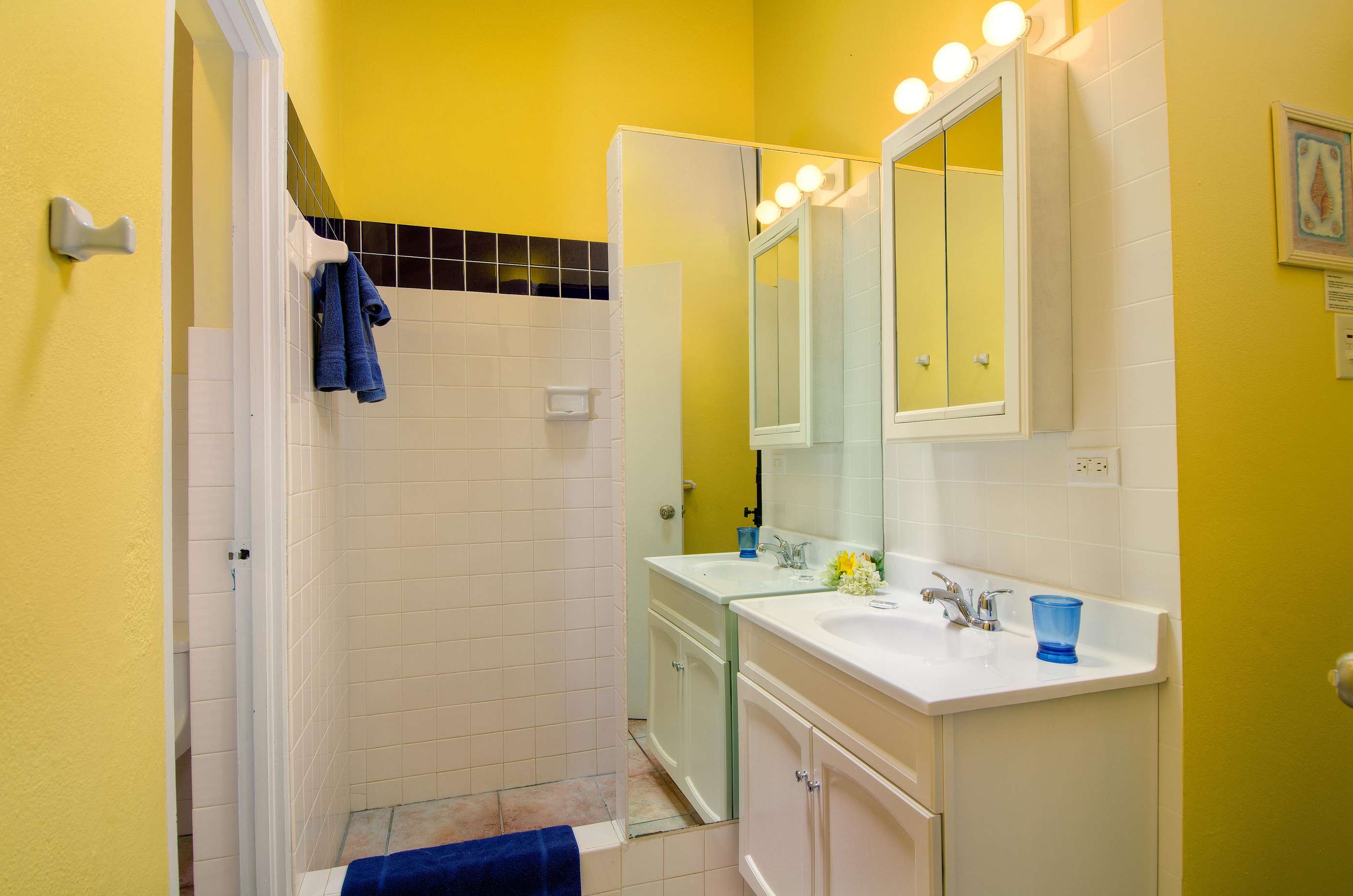 1)You’ll feel right at home in the comfy ensuite bedroom with queen size bed, closet with safe, dresser, SmartTV, and beachy décor. The bathroom has a single vanity and spacious shower, perfect for cooling down after a day at the beach.