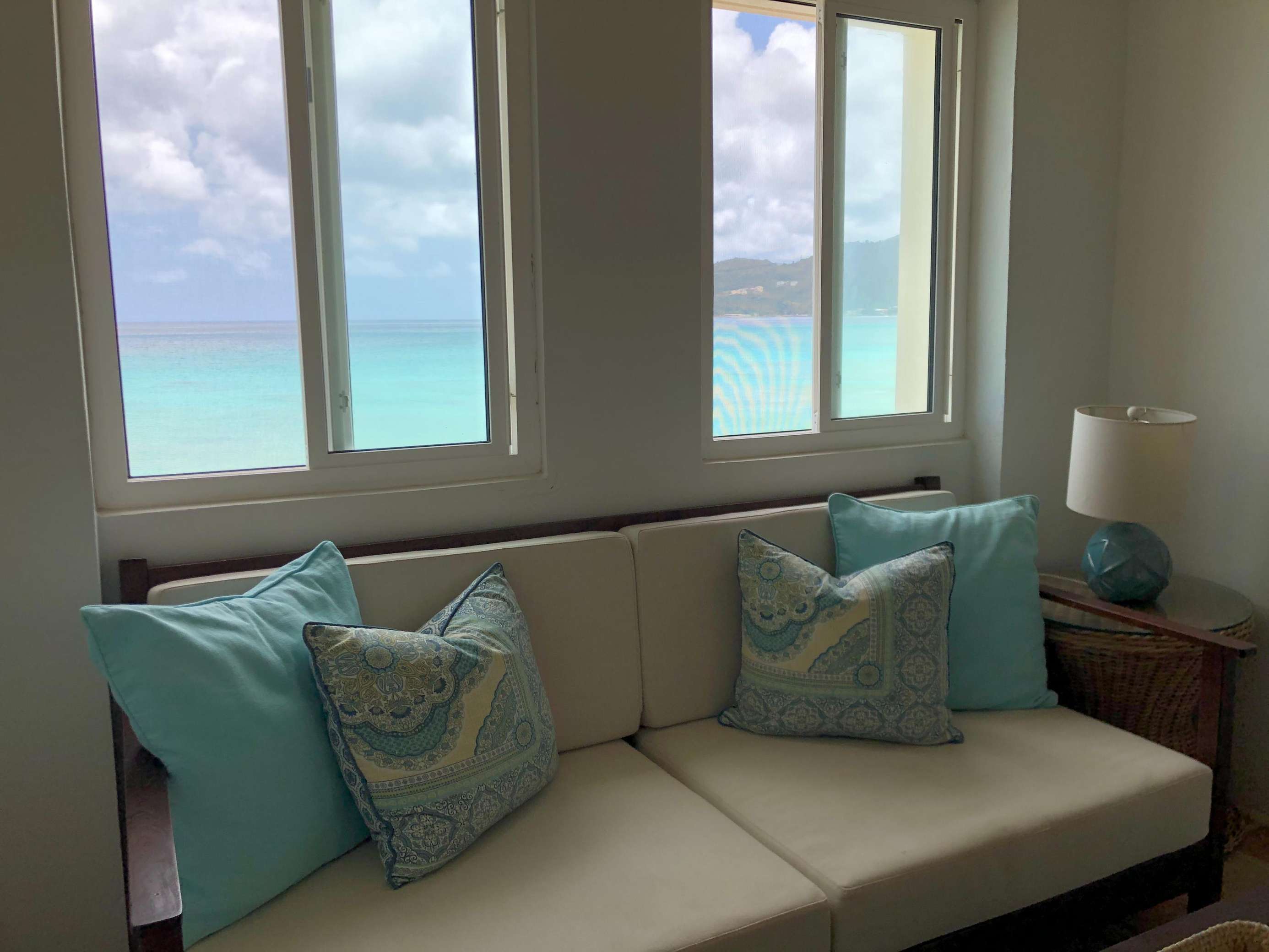 The decor is tasteful with a cool, coastal vibe. Everything is light, bright and breezy and perfectly complements the turquoise ocean which is so close it feels as if it’s in touching distance.