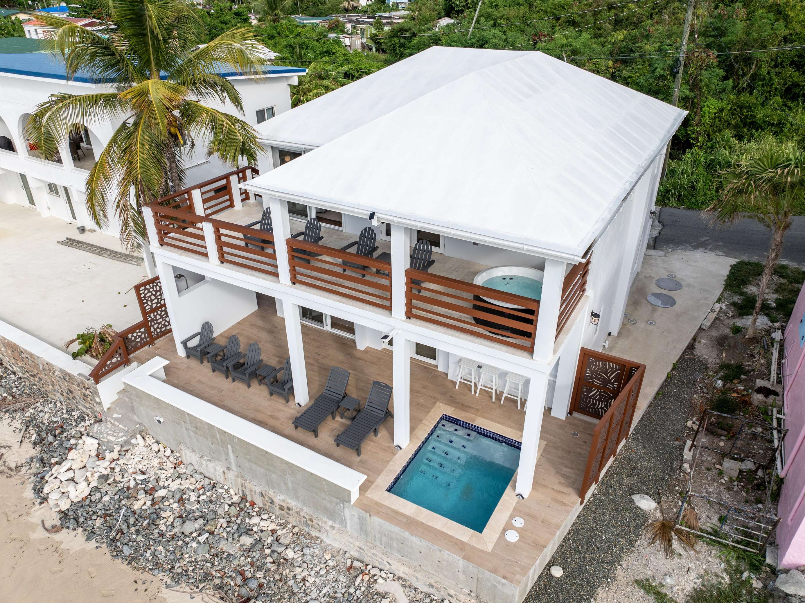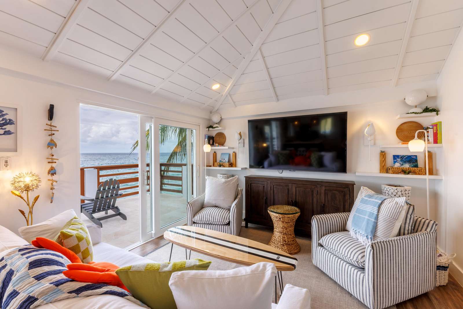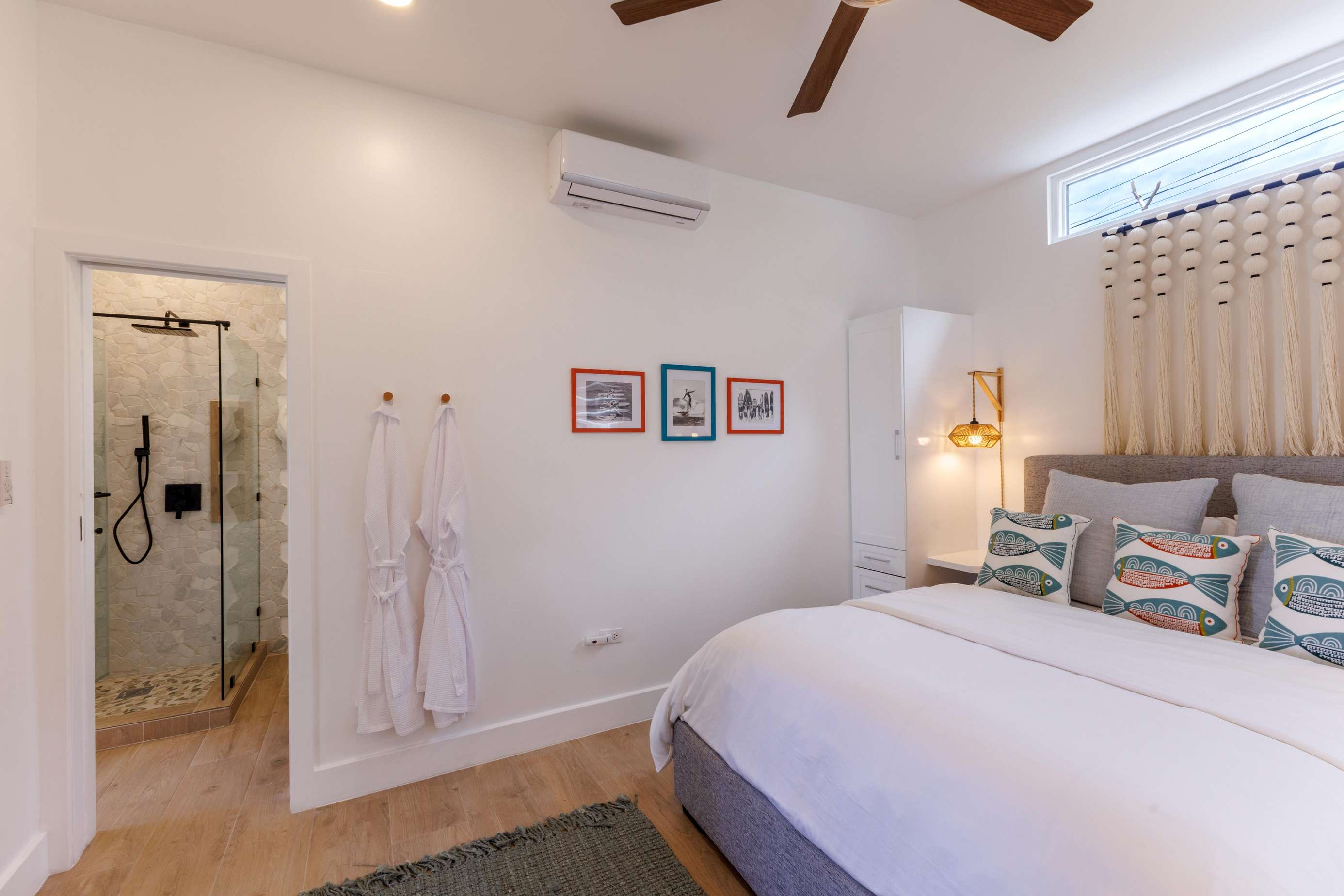 Chmada Beach Villa is modern & luxurious with a sociable layout. Sparkling ocean views & cool modern decor creates the feeling of ultimate island elegance. The perfect villa for larger parties, it can also be rented as two separate apartments (Ground floor - Onta Beach Villa & Top floor - Etta Beach Villa) meaning when rented as a whole, each guest has plenty of space & privacy. The layouts of each are identical - with nearly identical amenities keeping everyone comfortable, happy & oh so relaxed!