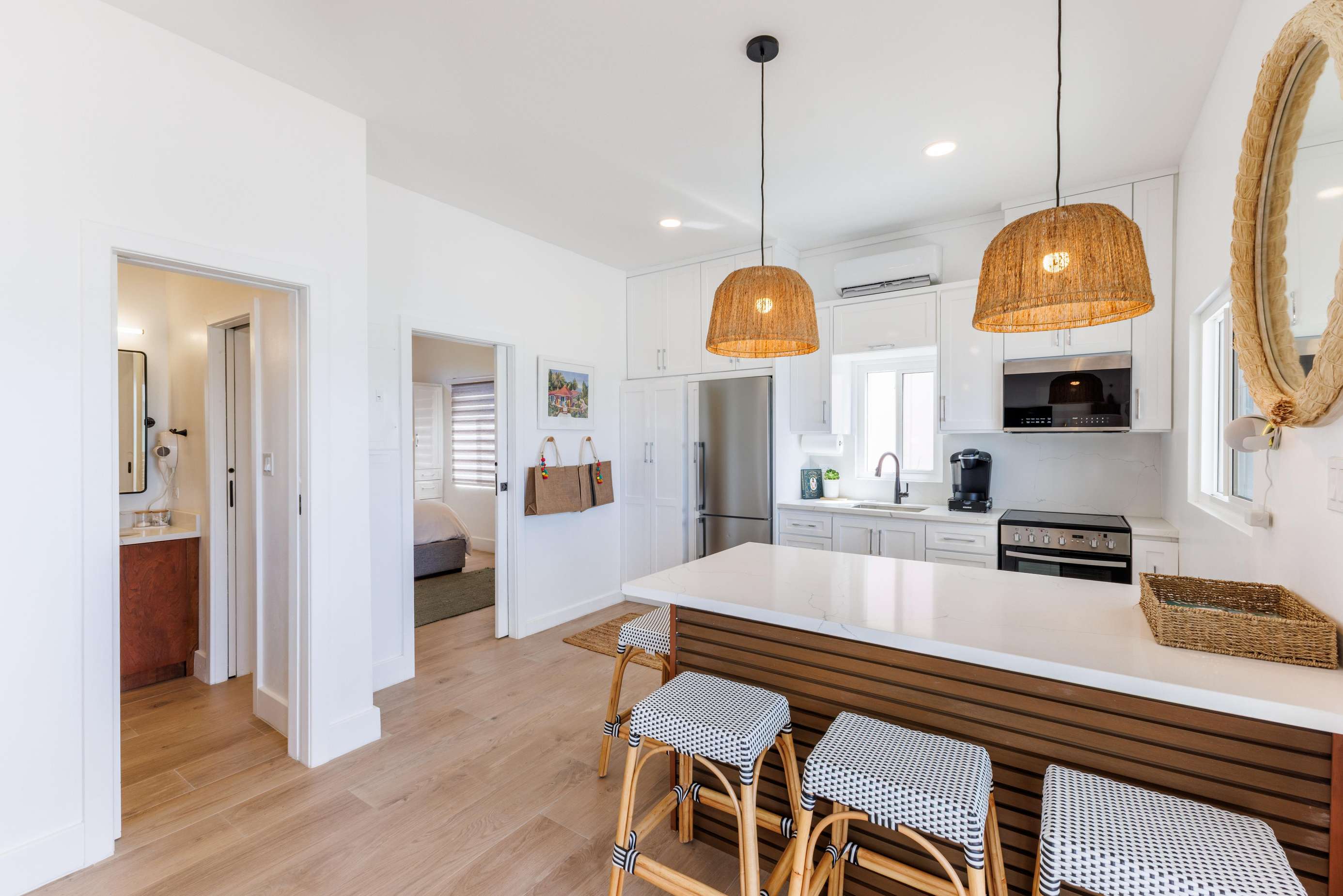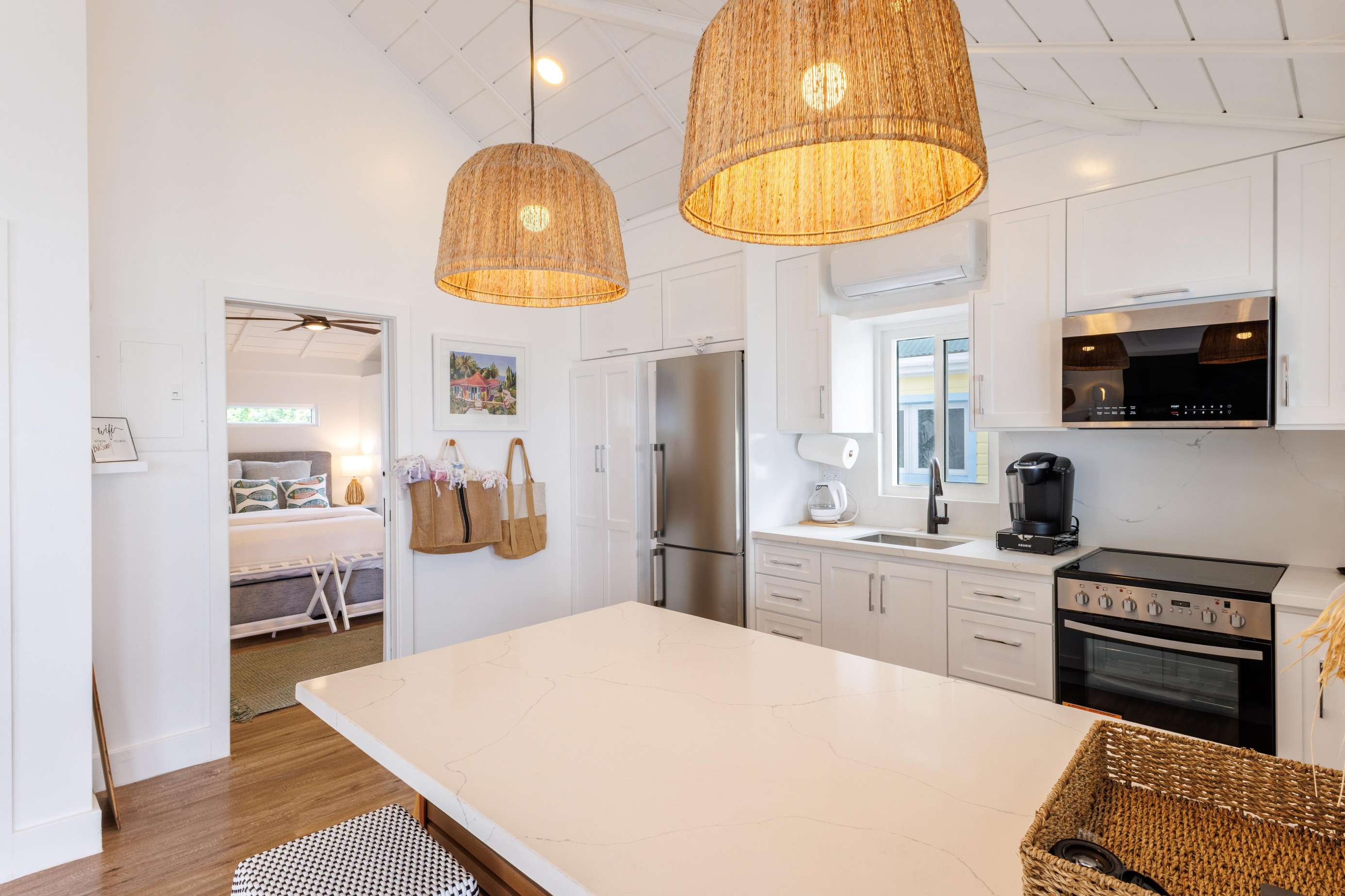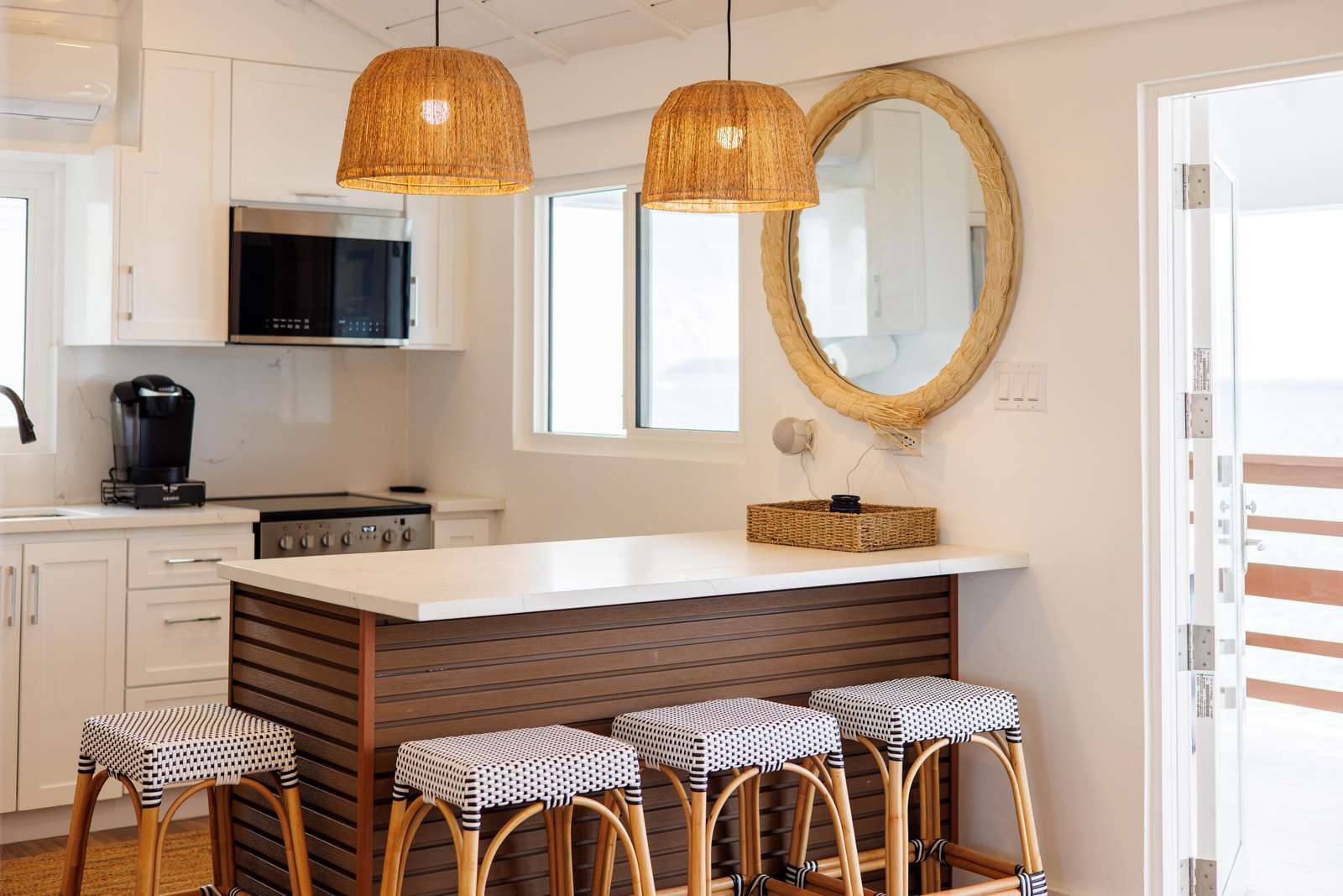 The kitchens are fully equipped with everything you may need for self-catering. A handy breakfast bar is a great spot to gather for meals together with an ocean view.