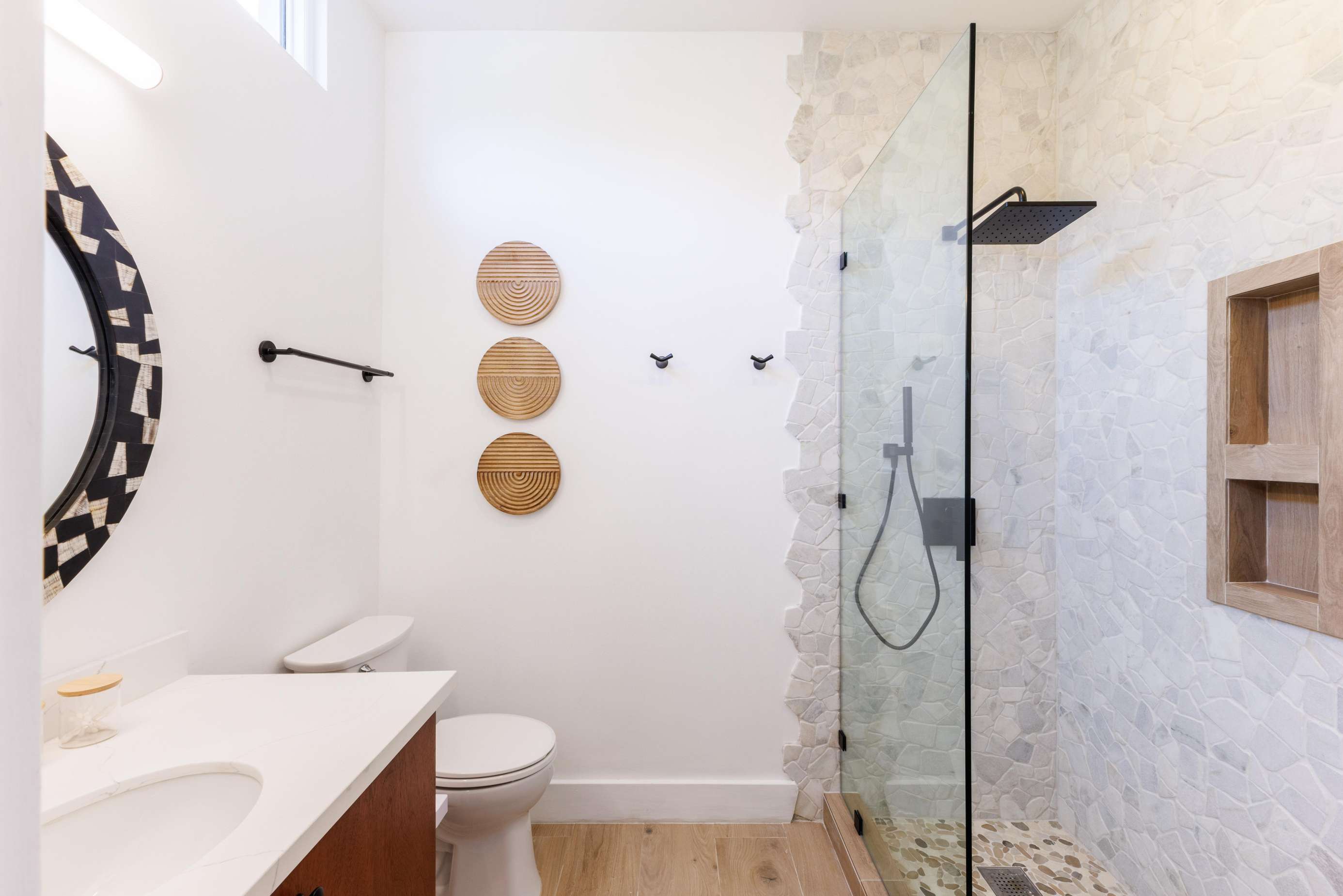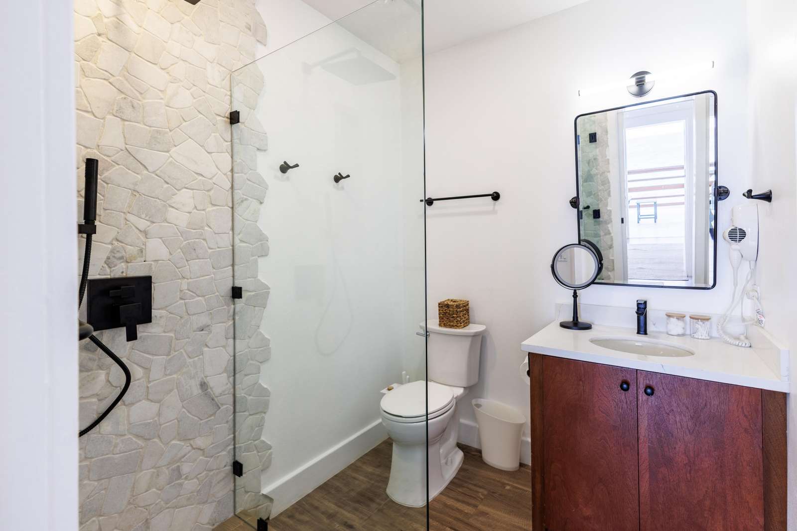 Each floor has 2 ensuite bedrooms. Each bedroom is a private sanctuary where you can keep cool with choice of AC or ceiling fans (or both!). *Please note that if someone is sleeping on the sofa bed, then they will share a bathroom with one of the bedrooms (can be accessed though the living room as well as the bedroom).