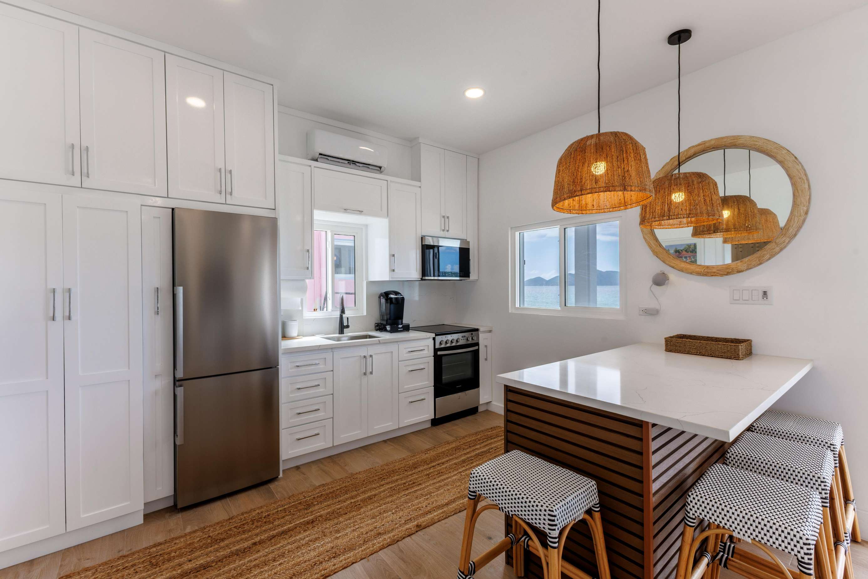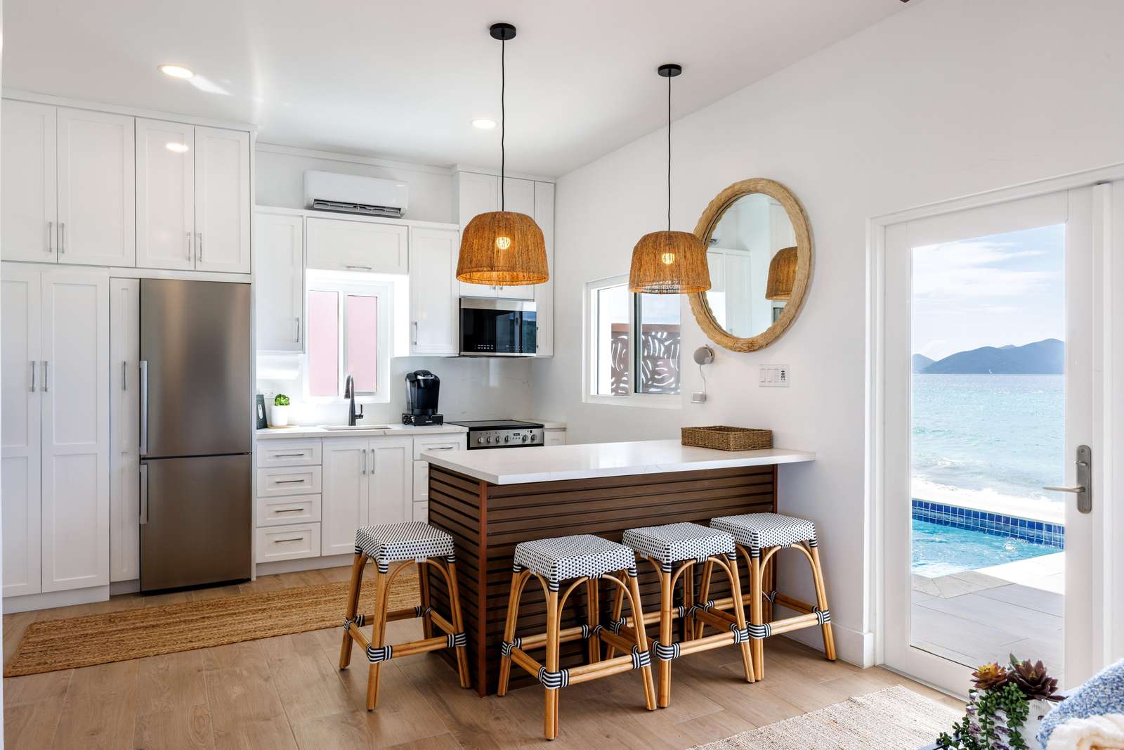 Etta Beach Villa is modern & luxurious with a sociable layout. Sparkling ocean views & cool modern decor creates the feeling of ultimate island elegance. Each guest has plenty of space & privacy with brand-new modern appliances & furniture keeping everyone comfortable, happy & oh so relaxed!