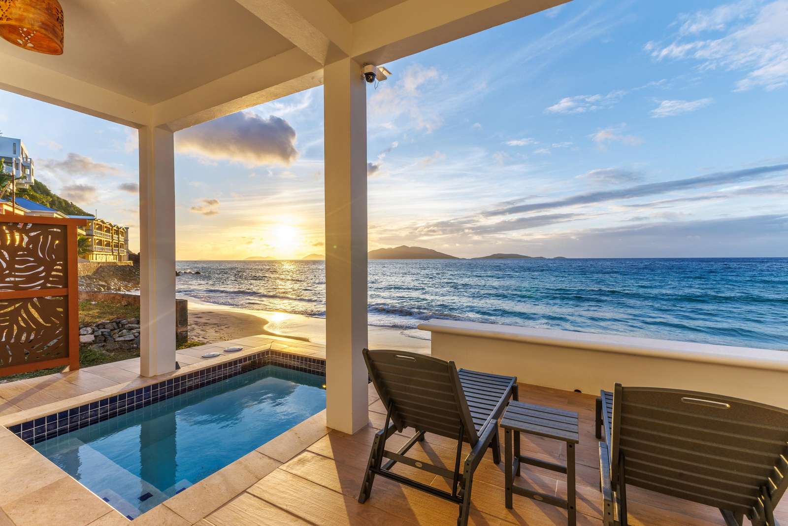 The outdoor space at Etta Beach Villa is just as special as the indoors. A spacious ocean facing balcony with dining, lounging & seating areas allow you to watch the waves roll in by day & the stars twinkle by night. You'll also find a cooling plunge pool which is the perfect spot to enjoy a glass of fizz & watch the sun go down or the surfers catching some waves further down the bay. The Caribbean is also about the slow life, and Etta Beach Villa makes chilling out oh so easy...