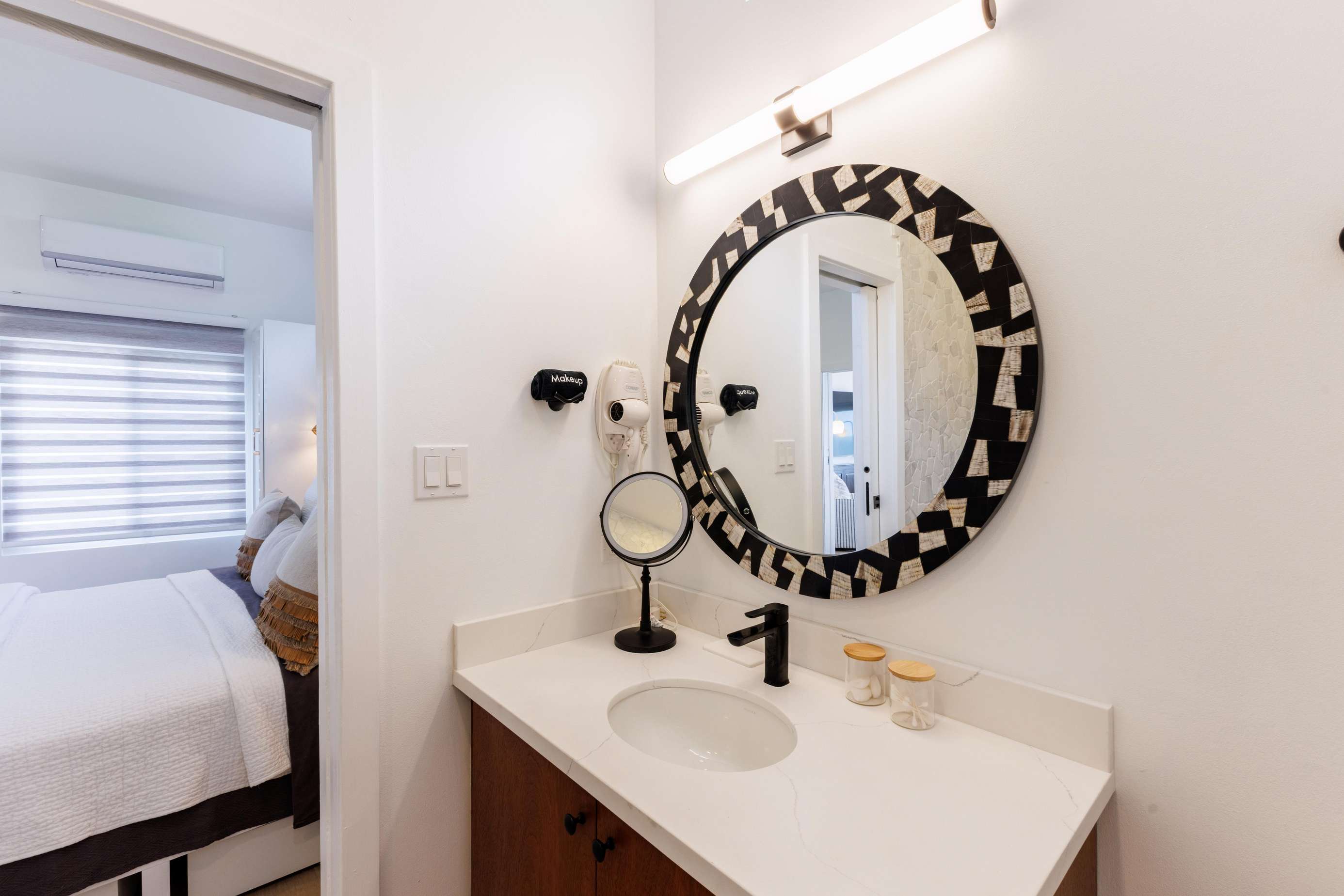 Just behind the living room & kitchen you'll find 2 bedrooms, each of which is a private sanctuary where you can keep cool with choice of AC or ceiling fans (or both!). *Please note that if someone is sleeping on the sofa bed, then they will share a bathroom with one of the bedrooms (can be accessed though the living room as well as the bedroom).