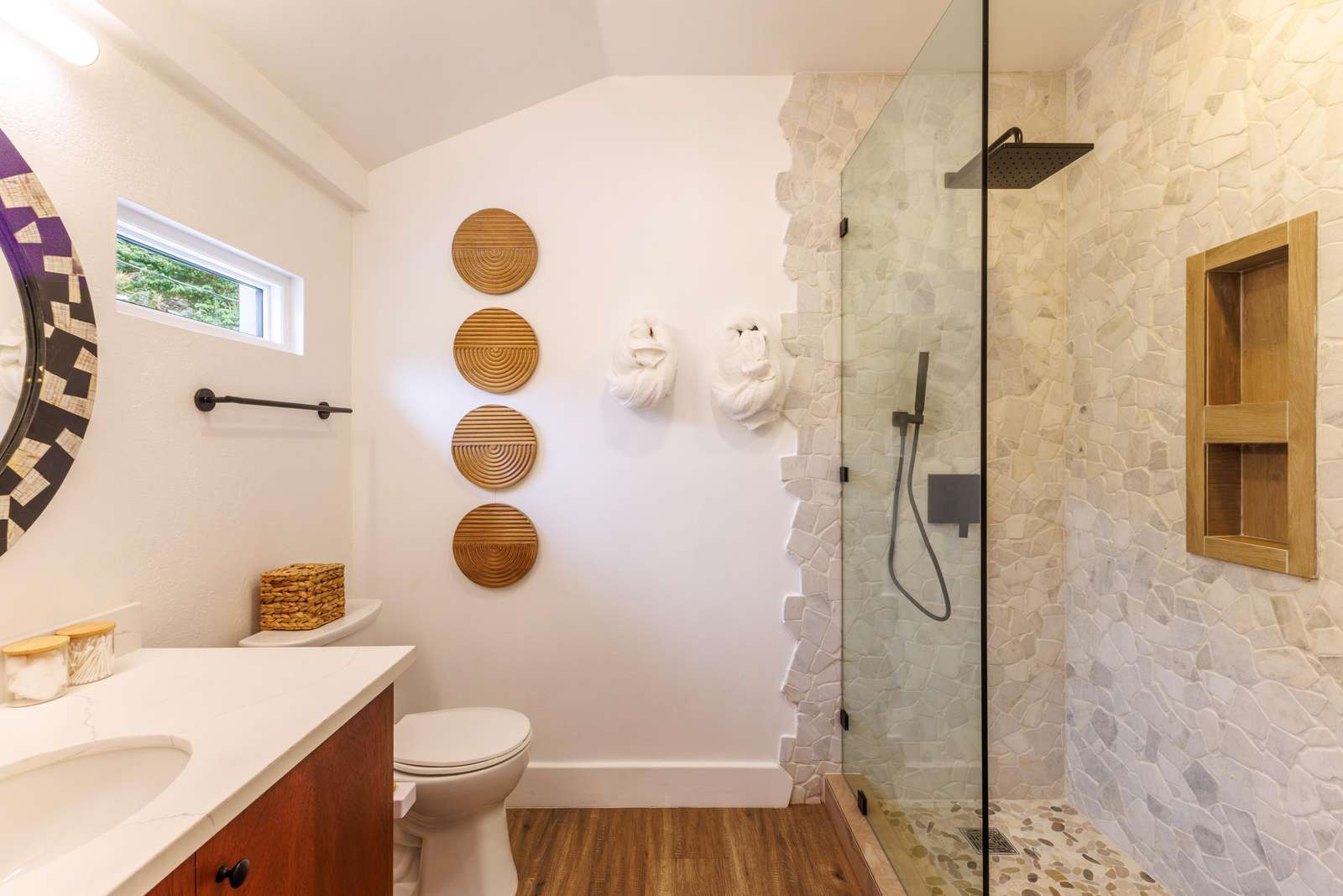 Just behind the living room & kitchen you'll find 2 bedrooms, each of which is a private sanctuary where you can keep cool with choice of AC or ceiling fans (or both!). *Please note that if someone is sleeping on the sofa bed, then they will share a bathroom with one of the bedrooms (can be accessed though the living room as well as the bedroom).