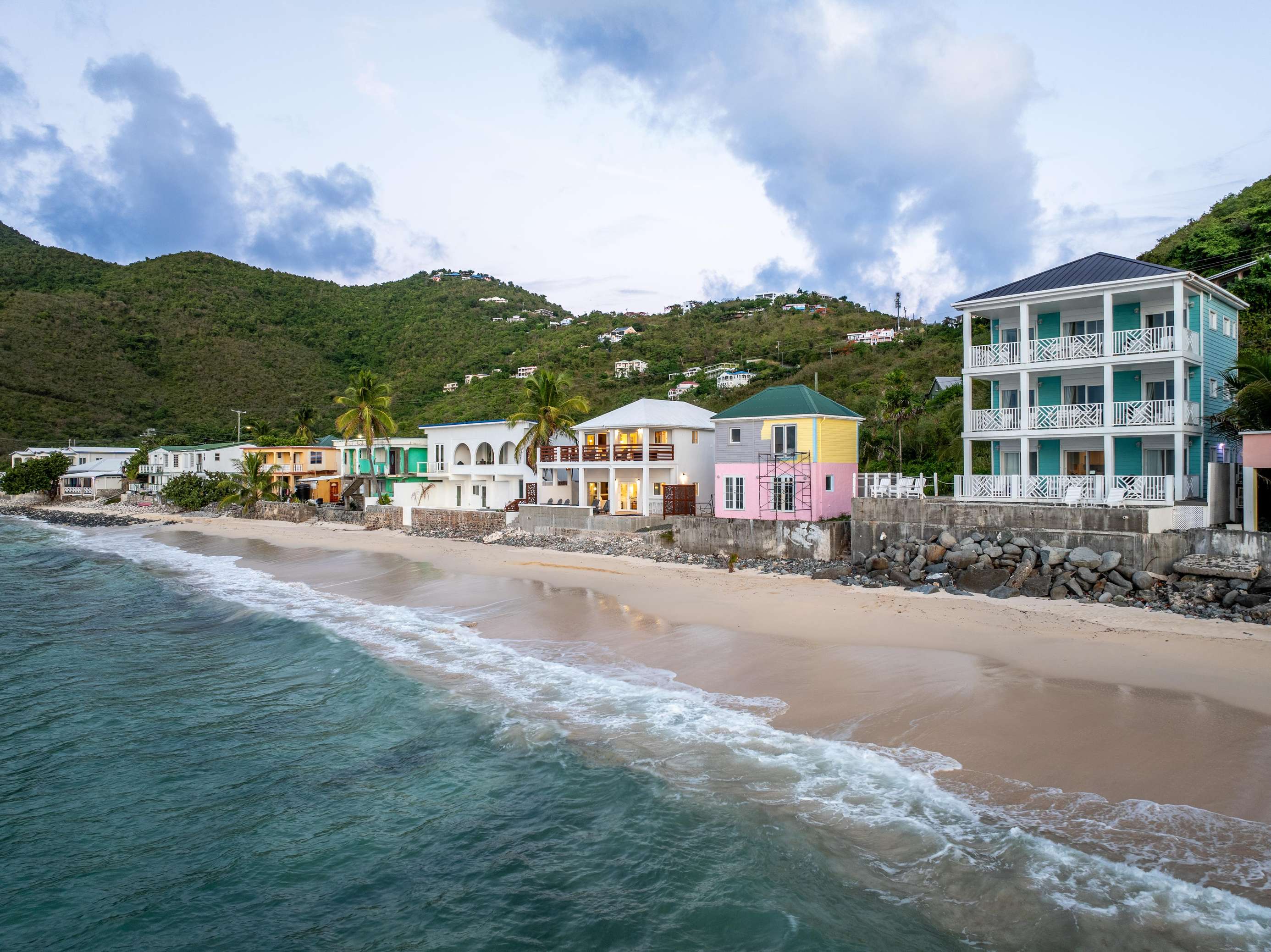 A charming little village in the West End of Tortola with world class winter surf, and you will be within walking distance of a selection of wonderful restaurants. Nardie’s Beach Bar at Sebastians on the Beach is just a minutes walk away and is open for breakfast, lunch and dinner. It also has a special weekend brunch menu and can be a lively spot to spend a Thursday or Saturday night as they host Bingo and Karaoke. The Sugar Mill is a beautiful upscale boutique hotel, just a short oceanfront quarter mile walk away. The main restaurant opens for candlelit dinners and its stylish sister Tramonti is open for breakfast and lunch with a beachfront position.