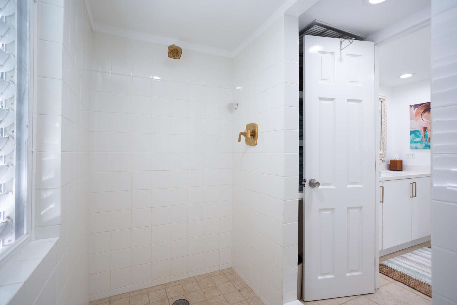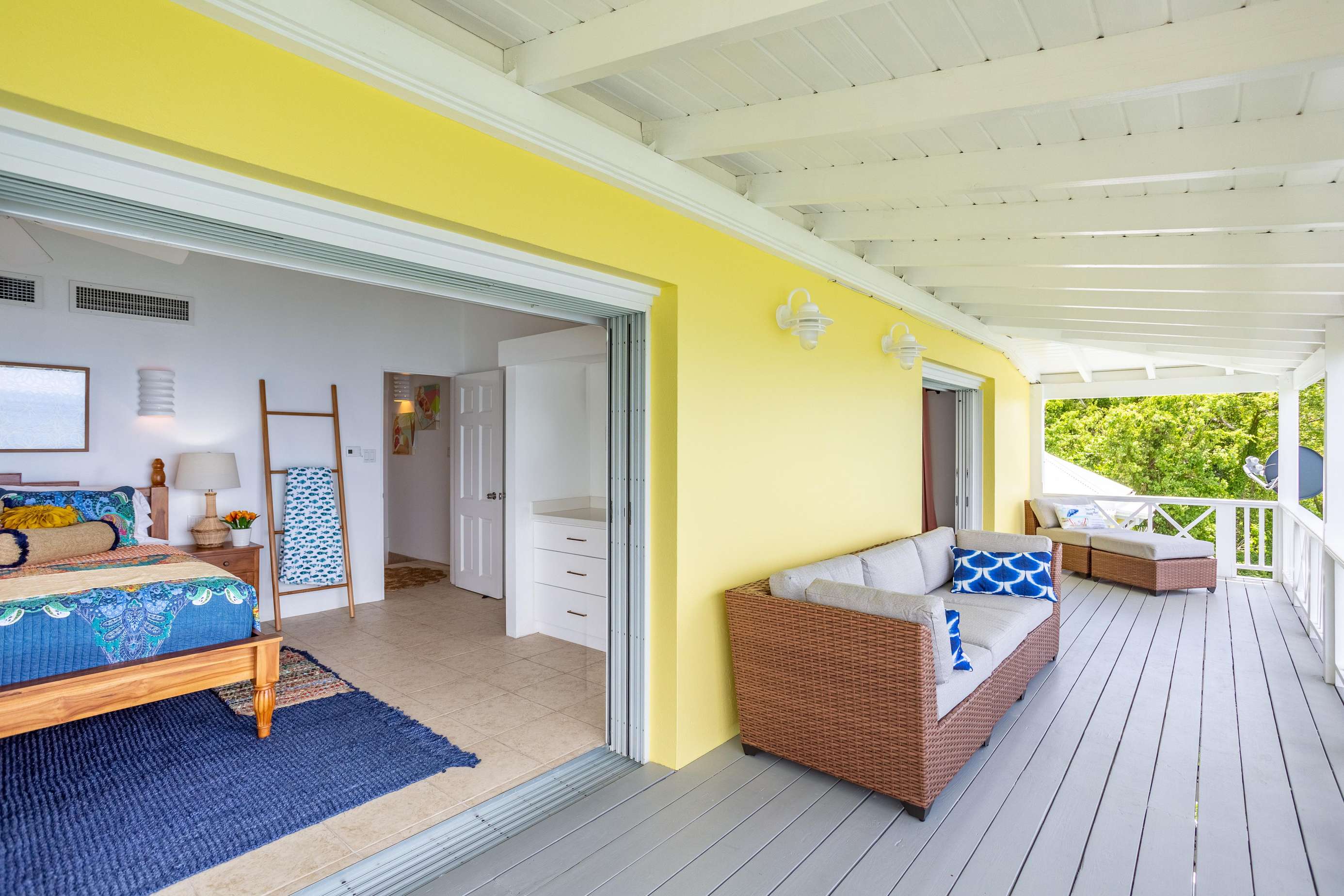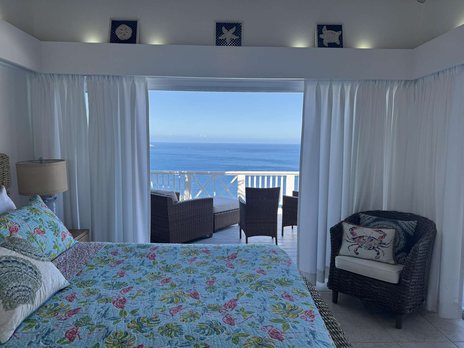 The Captains Quarters (bedroom 3) is in a separate pavilion at the end of the pool deck. This bedroom is it’s own little sanctuary, with huge floor-to ceiling glass doors framing the deep blue ocean and sky, & your own private outdoor shower!