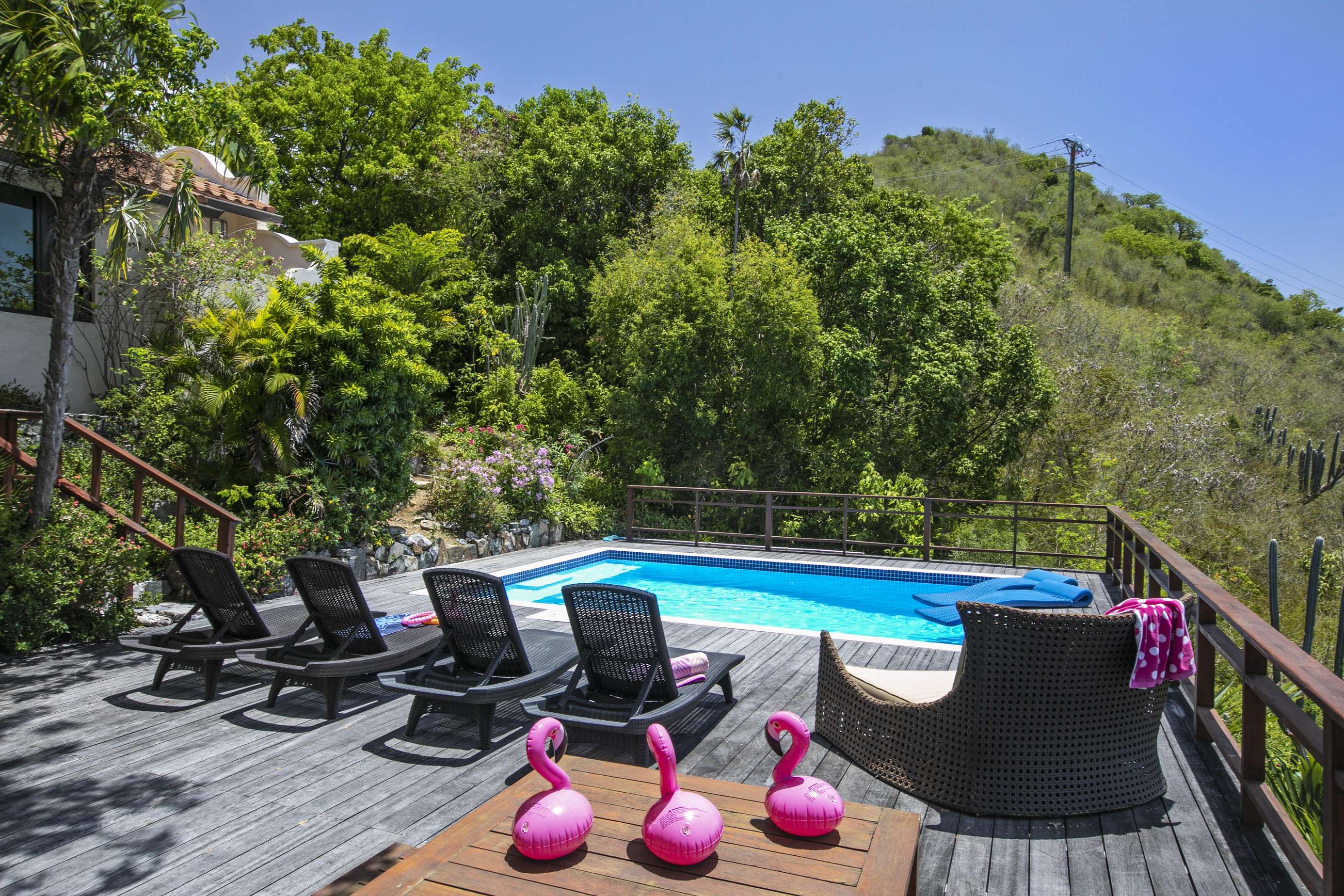 Gestalt’s fabulous (and spacious) pool and BBQ deck overlook the glistening channel towards Little Thatch and St John beyond. It’s a fabulous boat-watching spot as they drift in and out of Soper’s Hole Marina below. A private path leads the inquisitive explorer to a private dock (shared with neighbouring Blackbeard’s Hideaway) where you can snorkel and swim along the craggy coast. Like we said, it’s one of a kind.