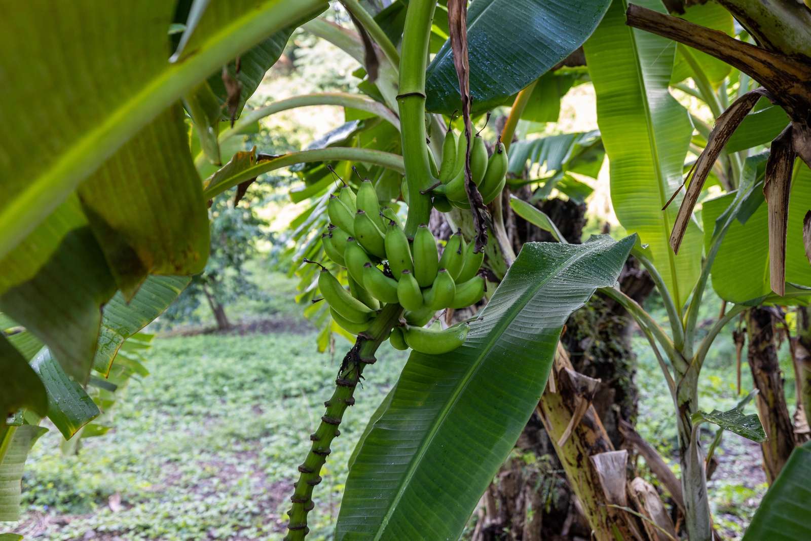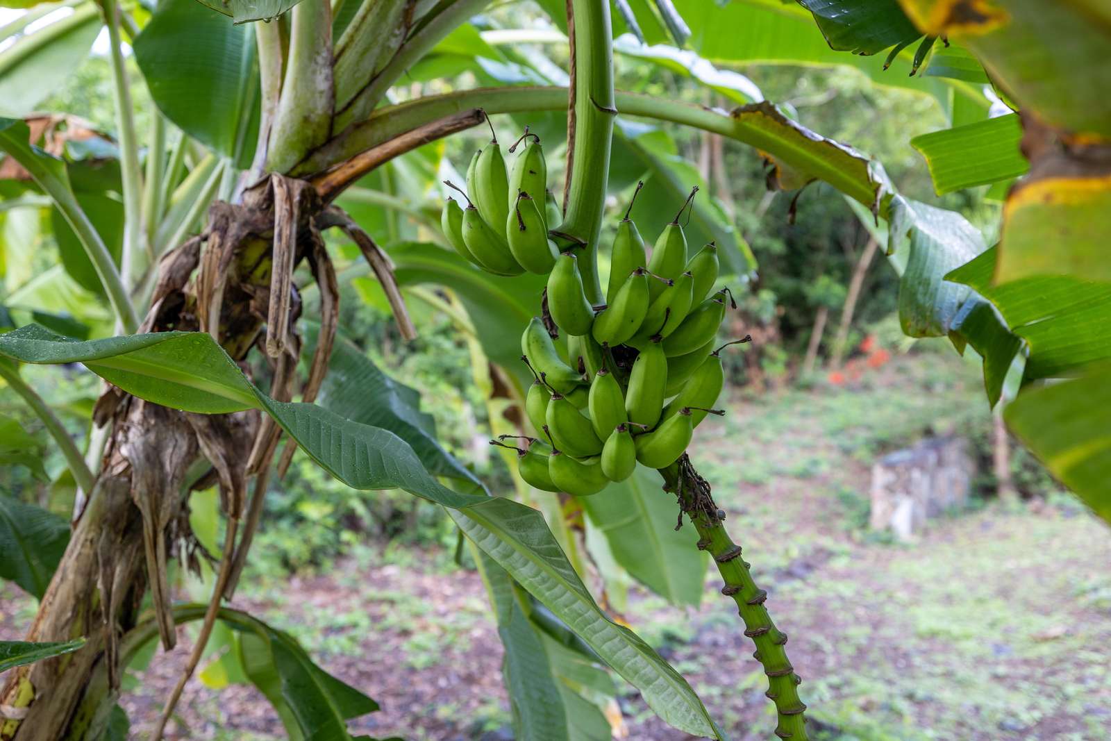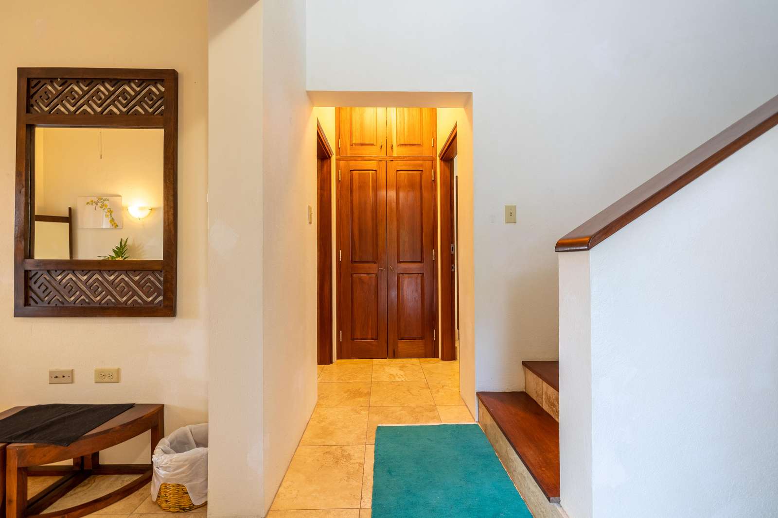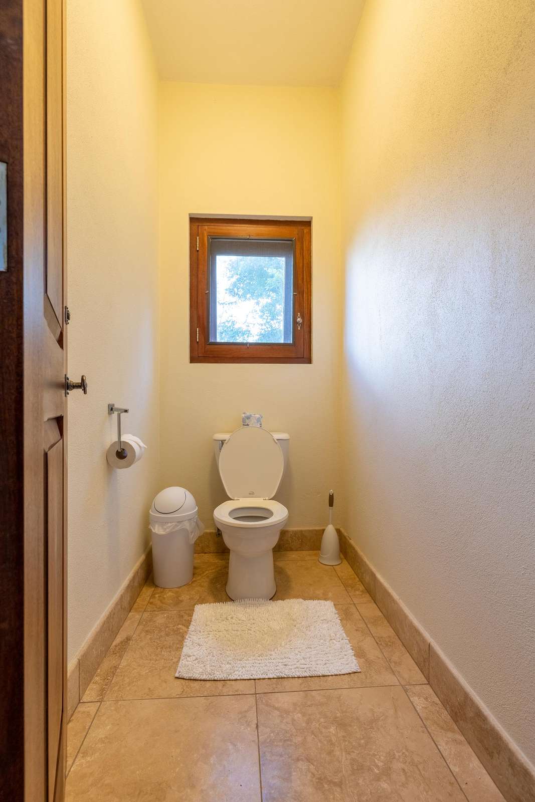 The airy bedrooms are on the ground floor. The primary has a king-sized bed and the second bedroom a queen. The third bed in the middle room is a single for an additional guest. All of the bedrooms open out to the bottom floor veranda and its soundscape of birds and treefrogs.