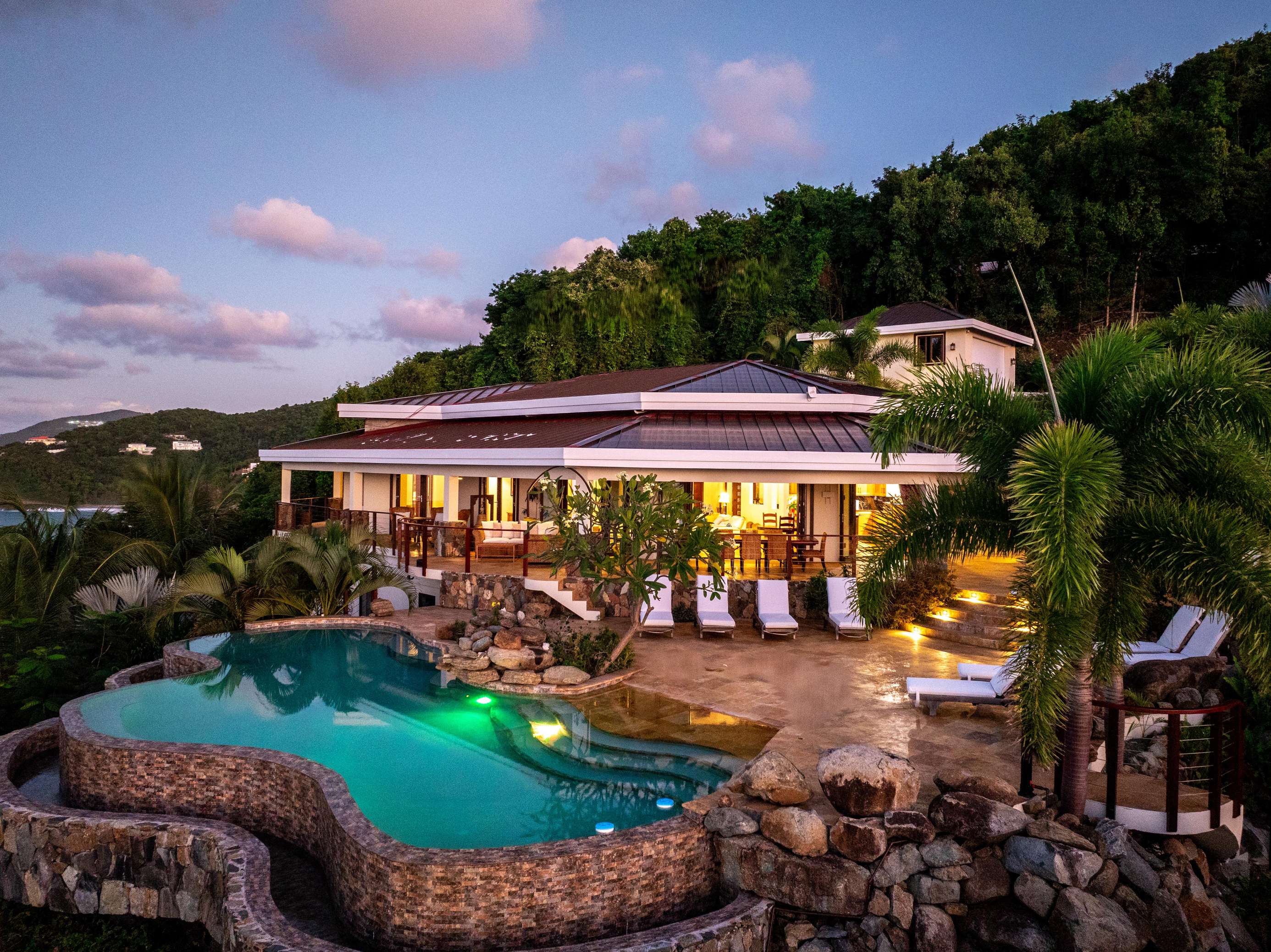 Nestled amongst the trees, you’ll have total privacy surrounded by nothing but 270° ocean views . Luxury amenities like infinity pool & jacuzzi may tempt you to stay in this idyllic spot BUT your neighbourhood includes Trunk Bay’s soft sands & clear waters & is 15mins to ferries, restaurants & stores in Road Town