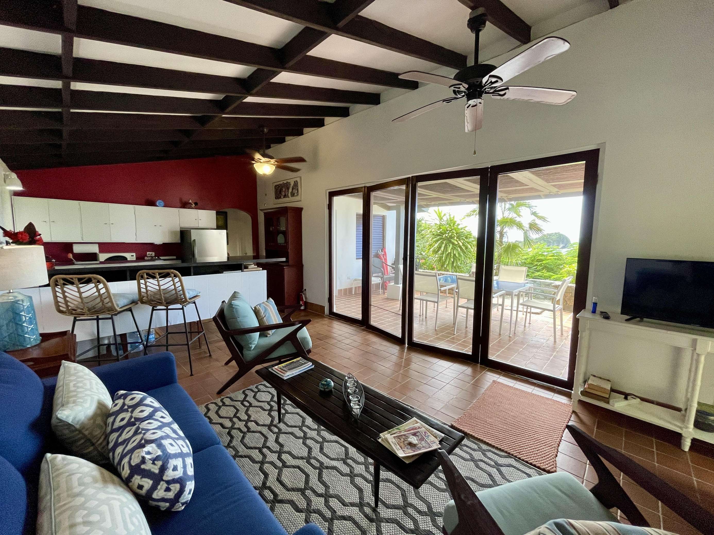 The villa is equipped with beach chairs, beach umbrella and cooler and a charcoal BBQ (guests to provide charcoal), so why not take the 5 min stroll to Smuggler’s Cove and set up on the beach for the day!
