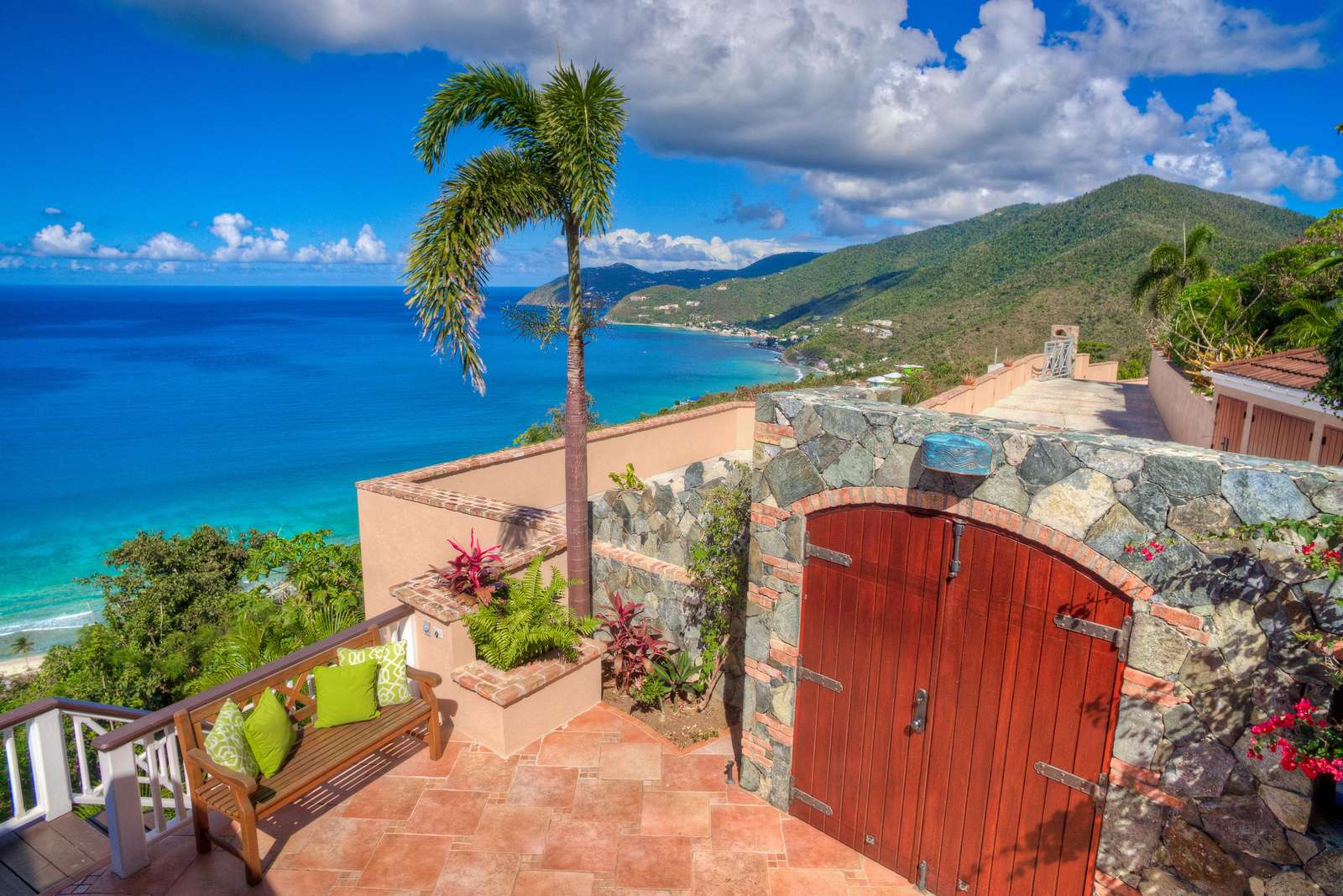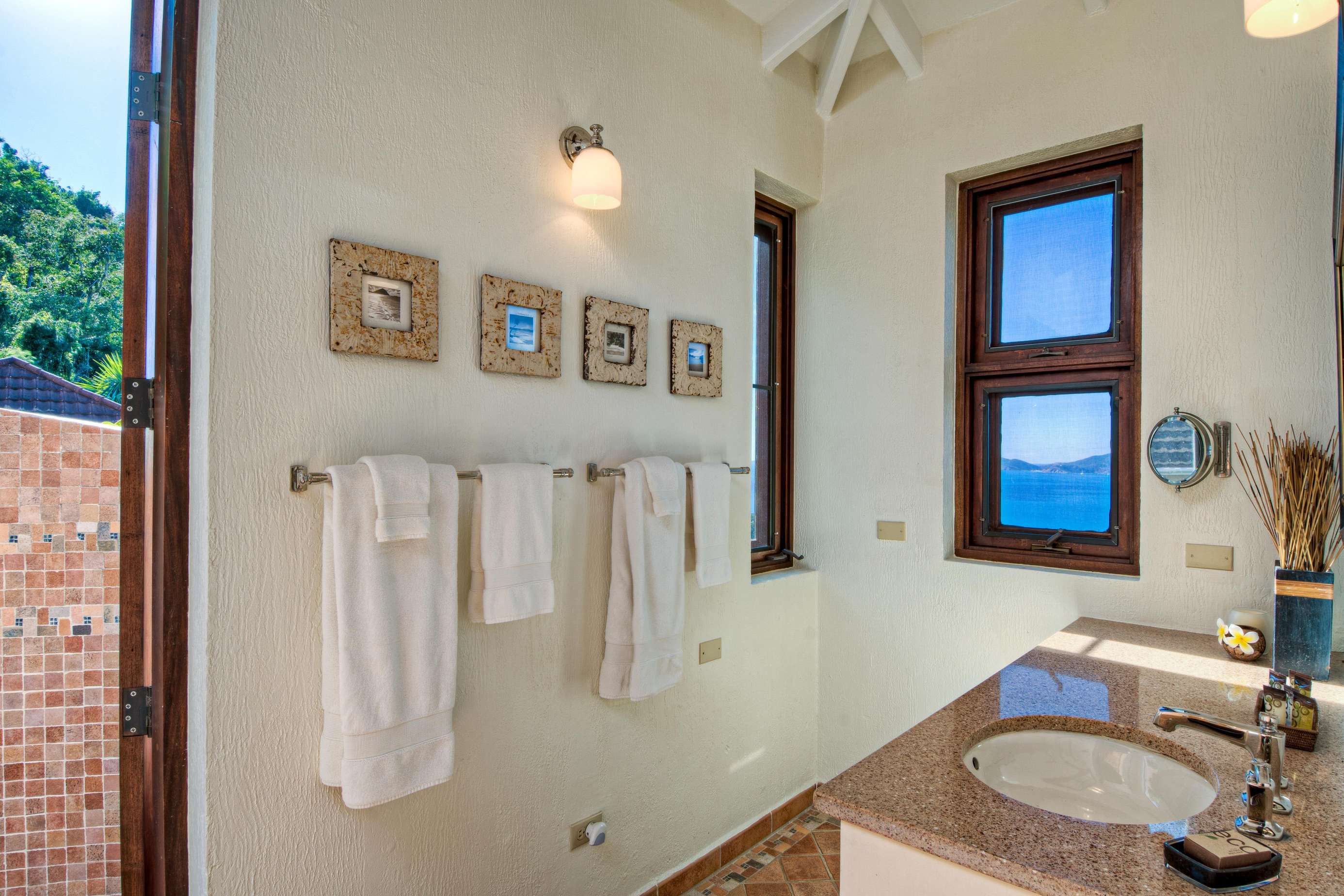 There are spectacular ocean & island views of the North Shore of Tortola. You’ll be able to spot Jost Van Dyke, Sandy Cay and Green Cay from all parts of the property. Enjoy over an acre of landscaped gardens full of colourful and fragrant Caribbean plants. Do not be surprised to see native hummingbirds enjoying their favourite firecracker plant. For the kids there are lots of places to explore both on the property, including the ‘castle keep’ area, and around Long Bay. For those times when you prefer a shaded and cool area, there is a lawned back garden.