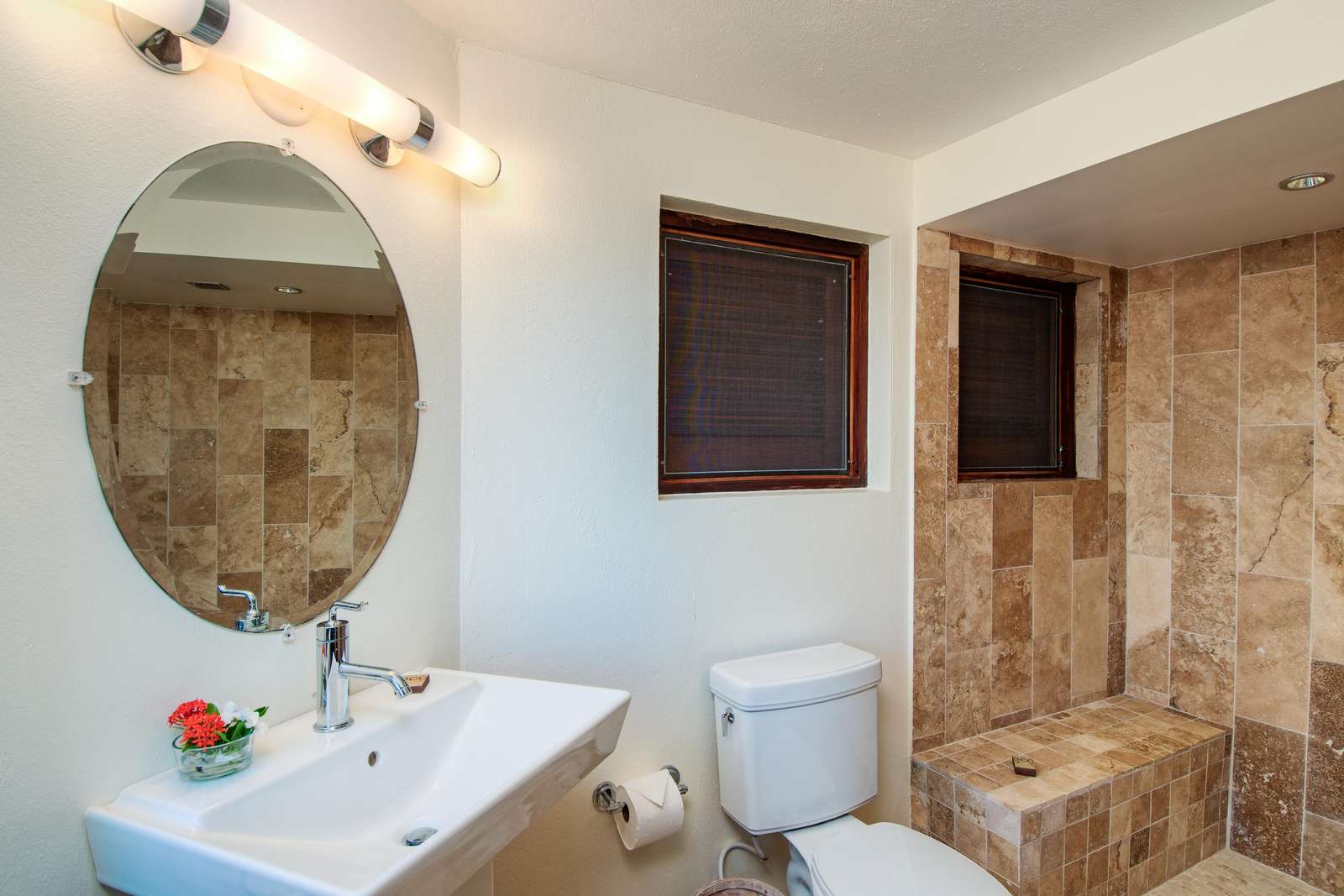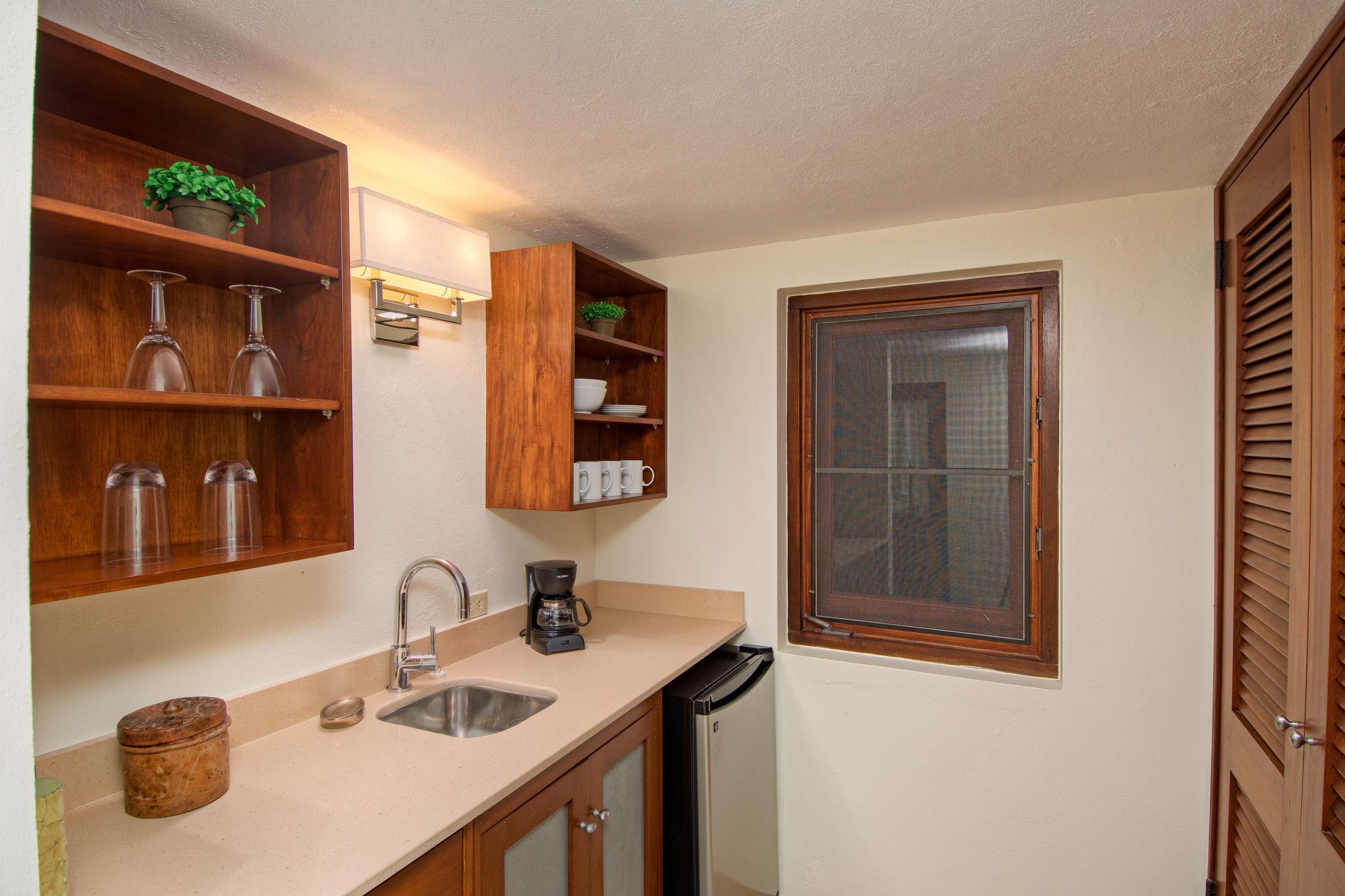 4)The 4th bedroom is another private suite downstairs of the landscaped courtyard of the property has two twin beds (can be made up as a king), an ensuite with rainfall shower and a kitchenette with refrigerator and coffee maker.