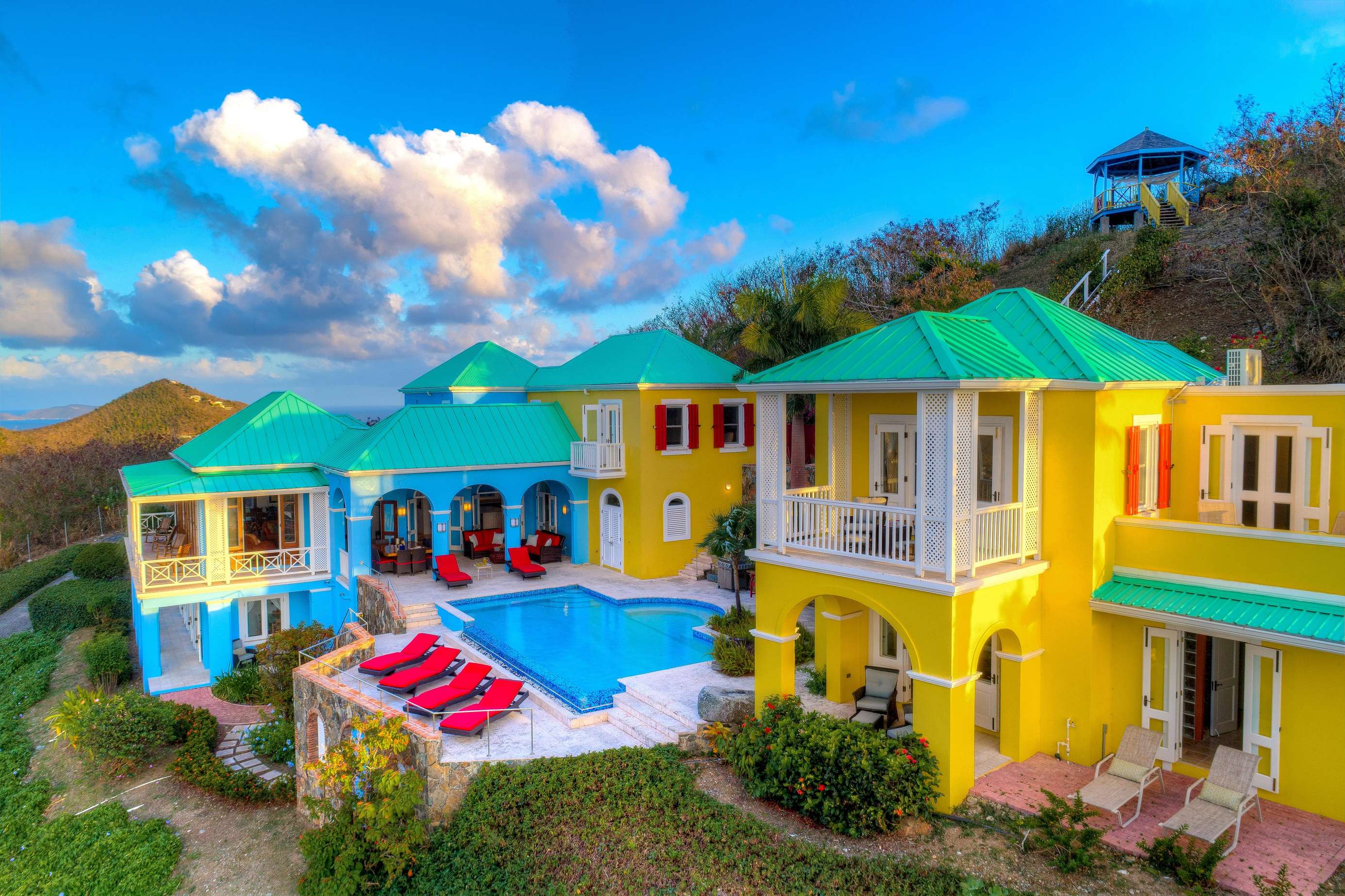 To get above it all, head to the colorful gazebo high atop the ridge for a yoga session or cocktail with friends, or some downtime. Another incredible viewpoint, this is where I'd be going at sunset to watch those famous fiery BVI skies.