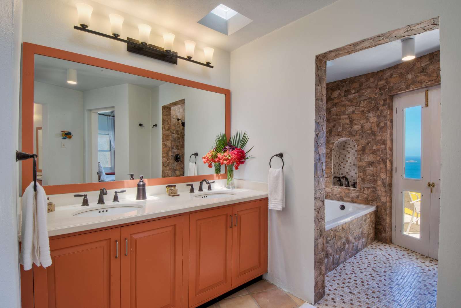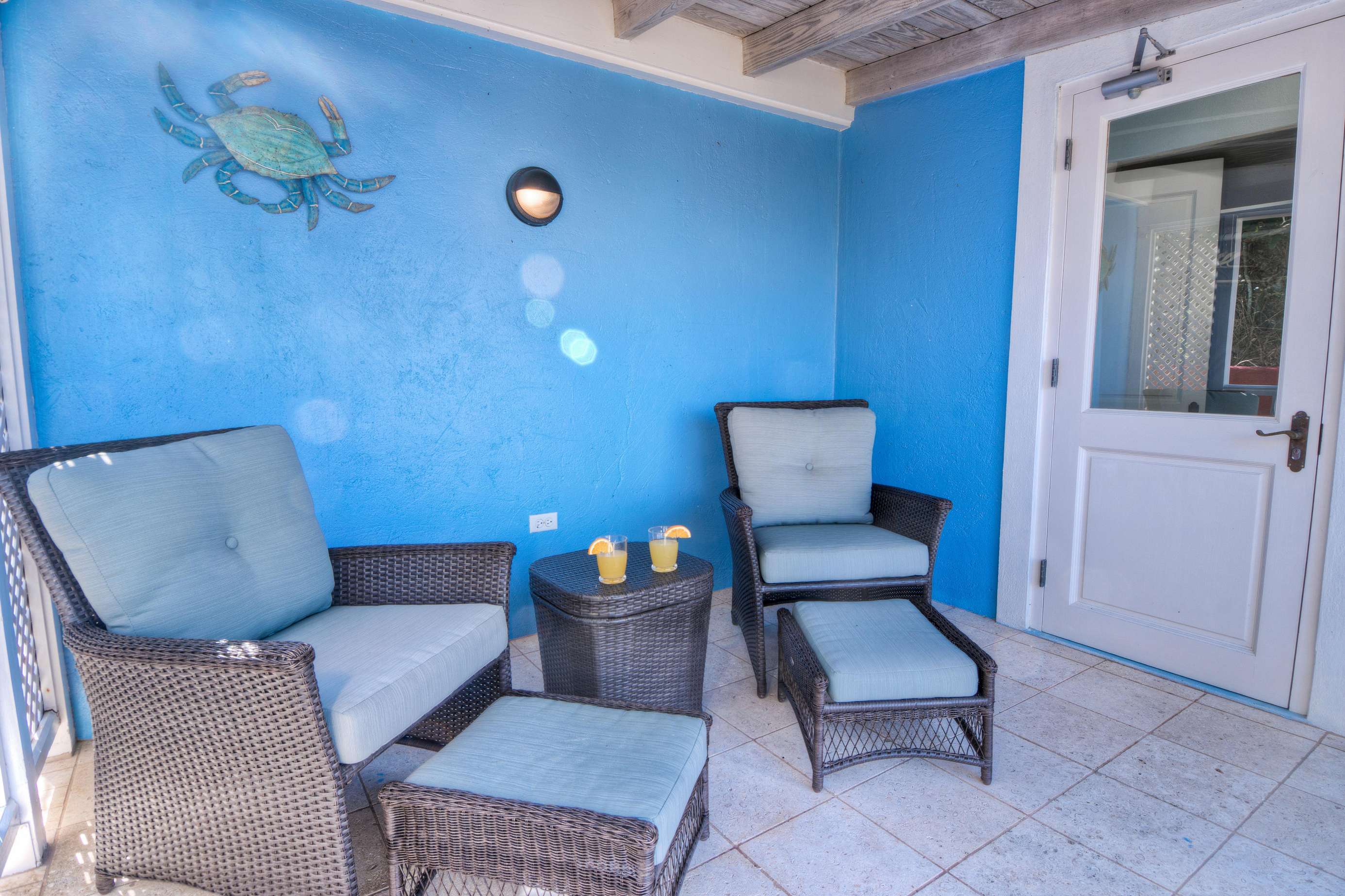 The air conditioned office, located off the Great Room, allows for a discreet conference call or a bit of work, if you must. It is available for two additional guests (total of 12 guests) on a queen-size pullout sofa. The guest bathroom, also on the main level, is available to those staying in the office.