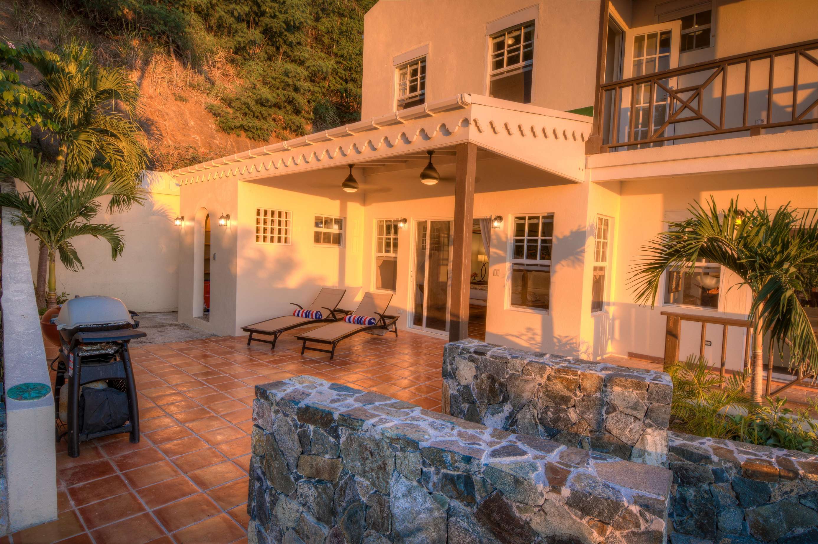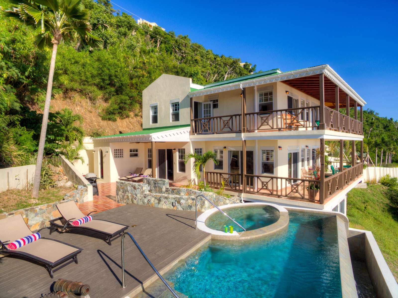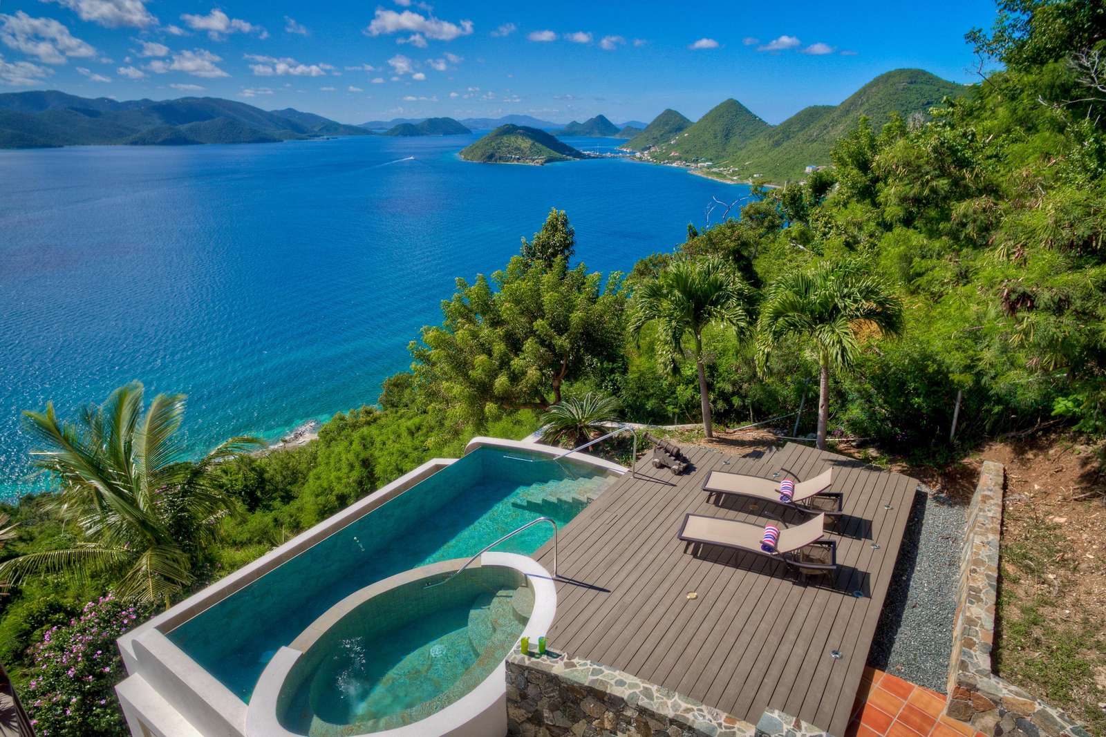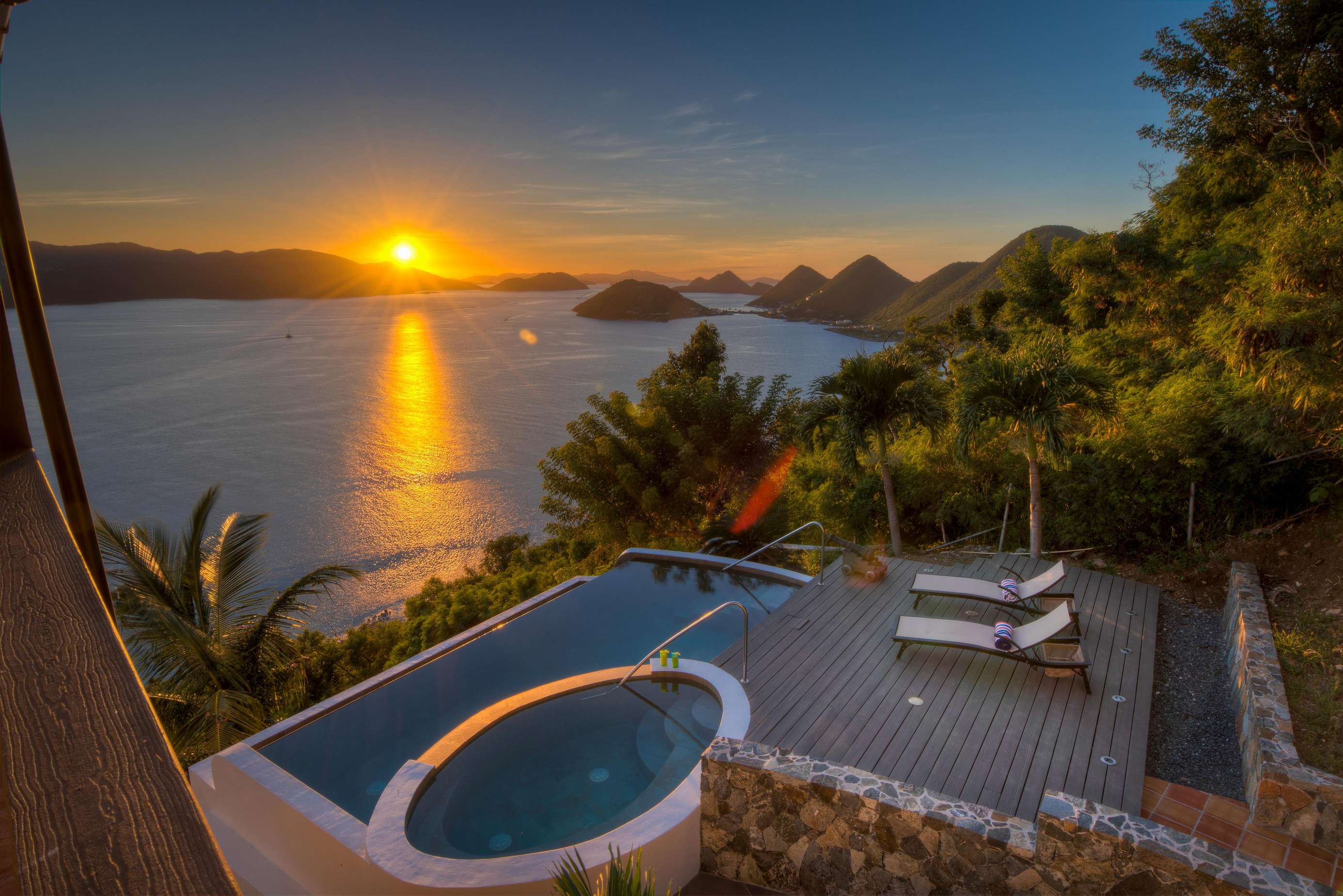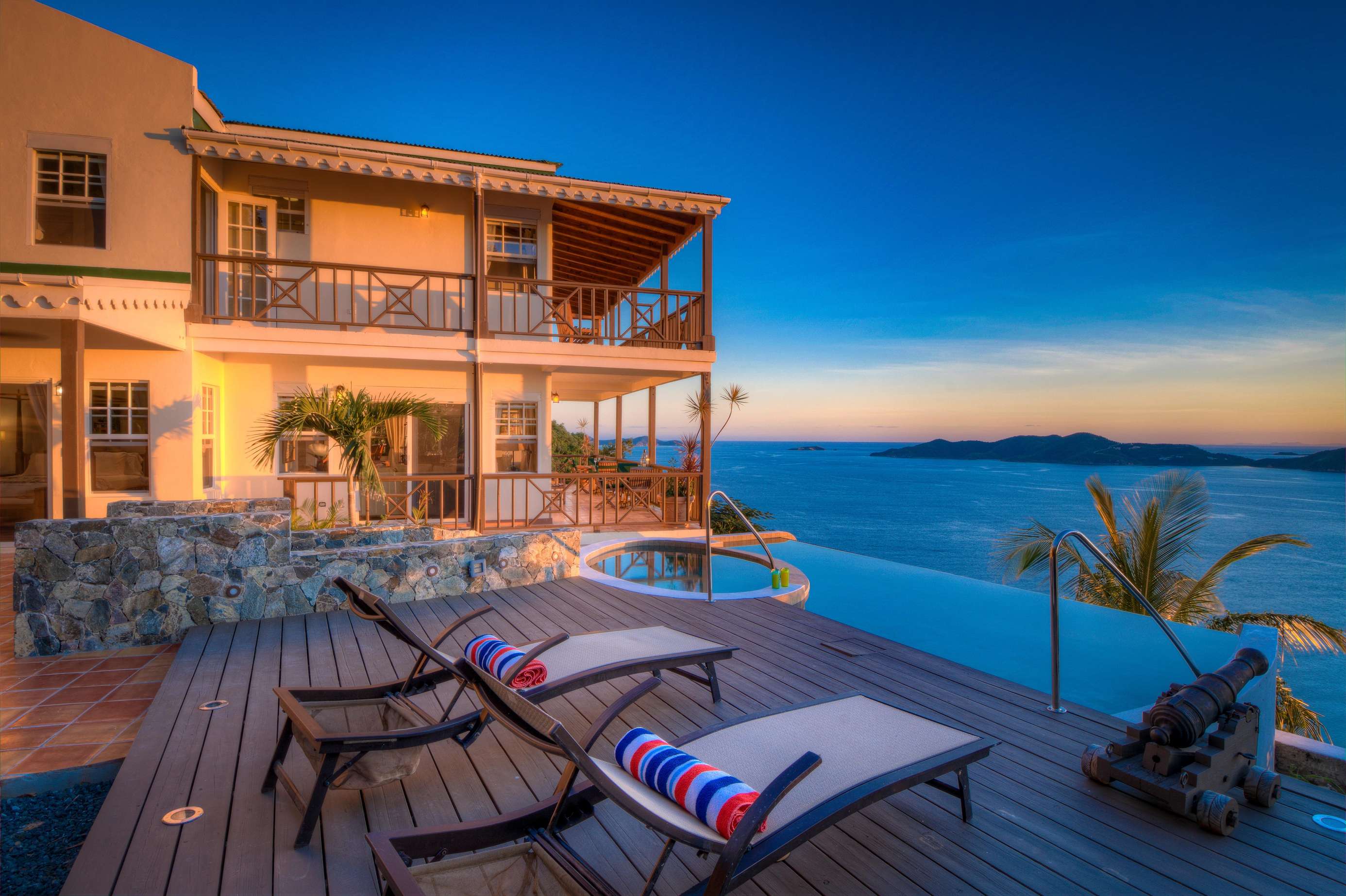 The grilling deck (both gas and charcoal BBQ’s available) is the perfect spot to grill up a local Anegada lobster as the sun sinks below the horizon. The infinity edge pool is an idyllic location for a cooling dip with a drink or a book at any time of the day. NOTE: The smaller oval part of the pool is NOT a jacuzzi or hot tub! We’ve said it before, but the views really are magnificent and these are the things that make ‘Sans Souci’ or ‘Without Worries’ the perfect name for this gorgeous villa.