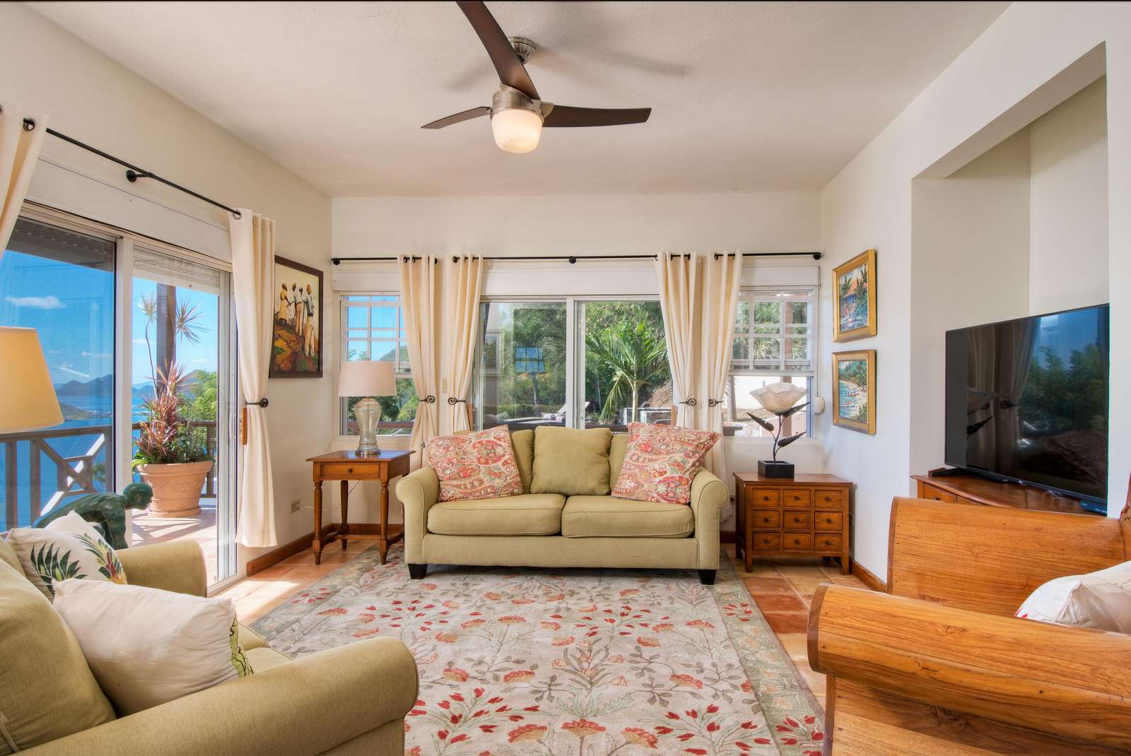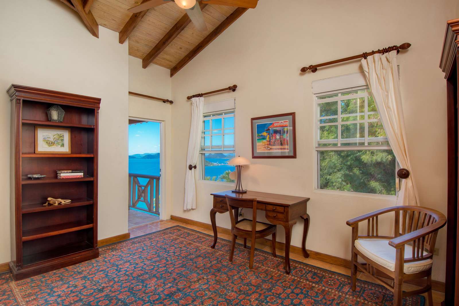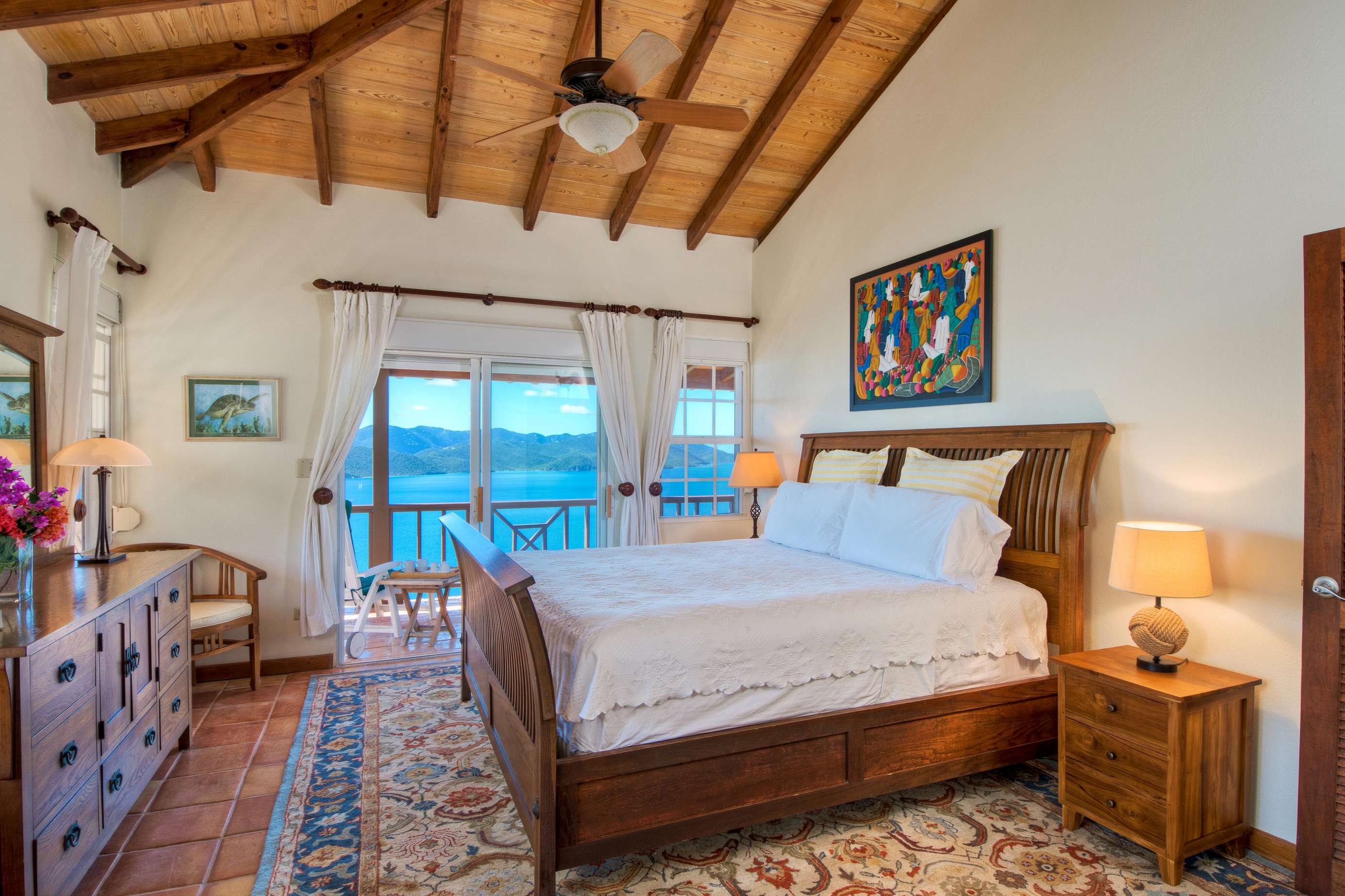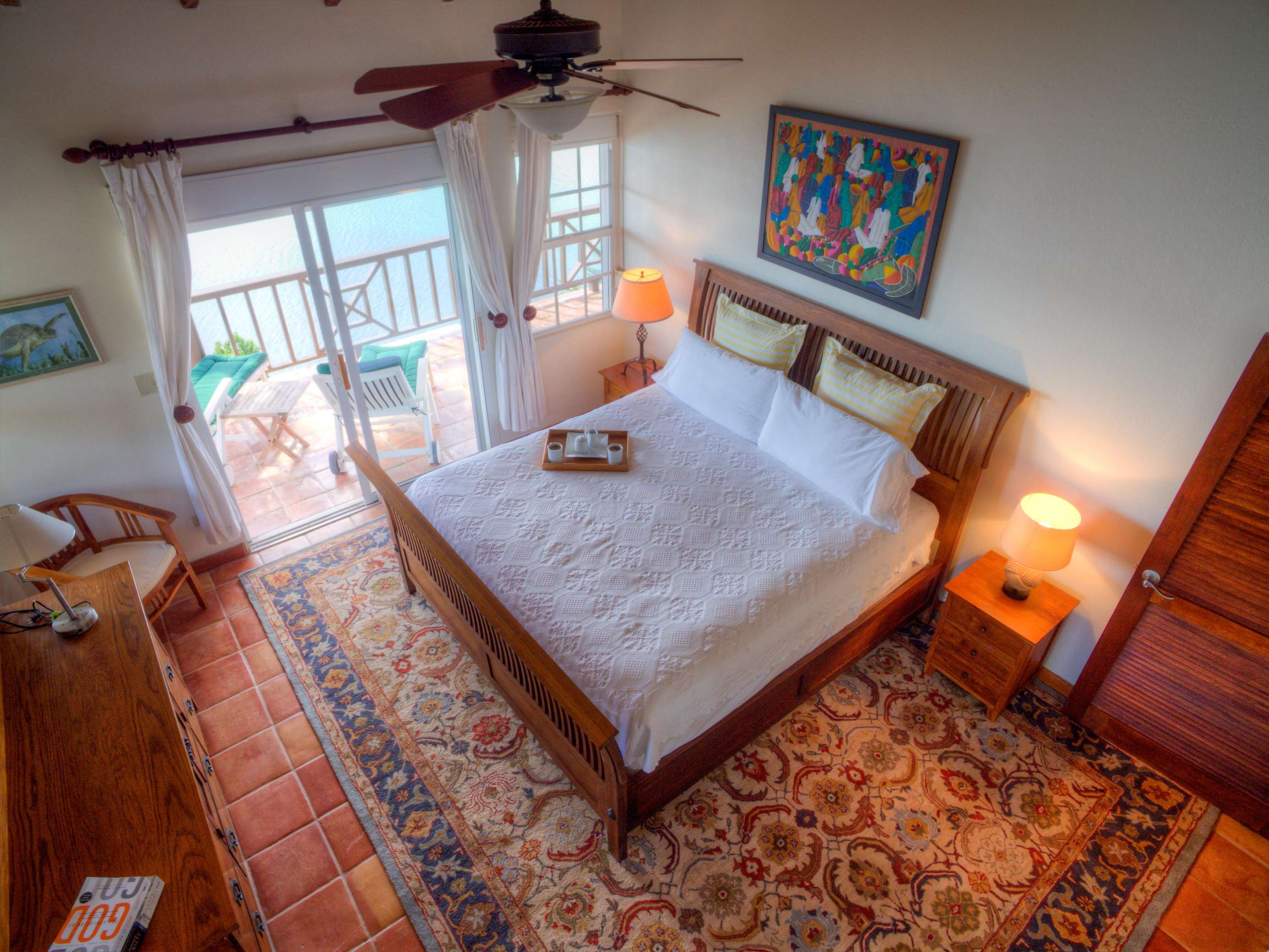 The neutral tones, Caribbean style paintings by local artists & beautiful quality Balinese teak furniture lends a calming backdrop for the views to take centre stage.