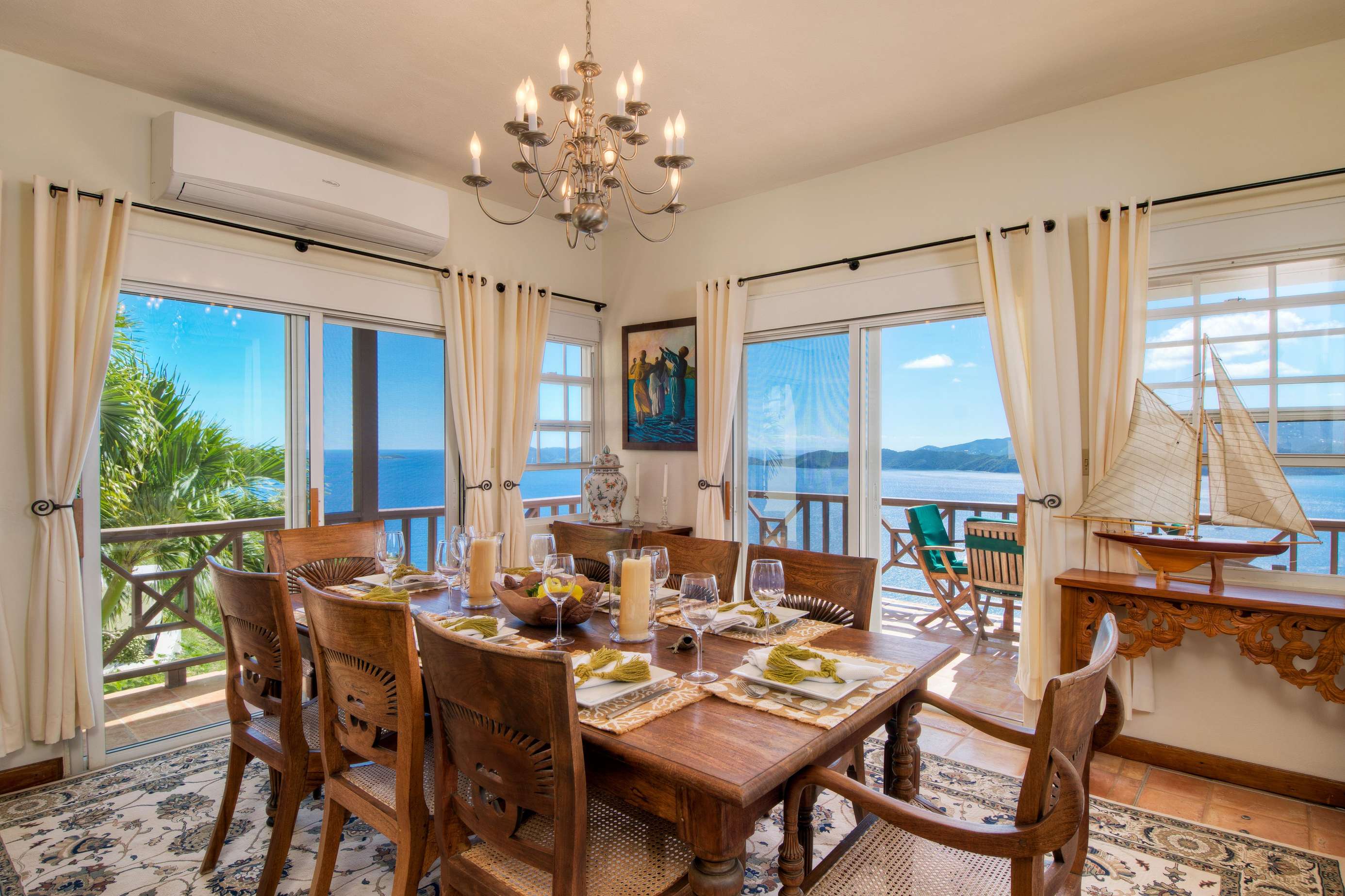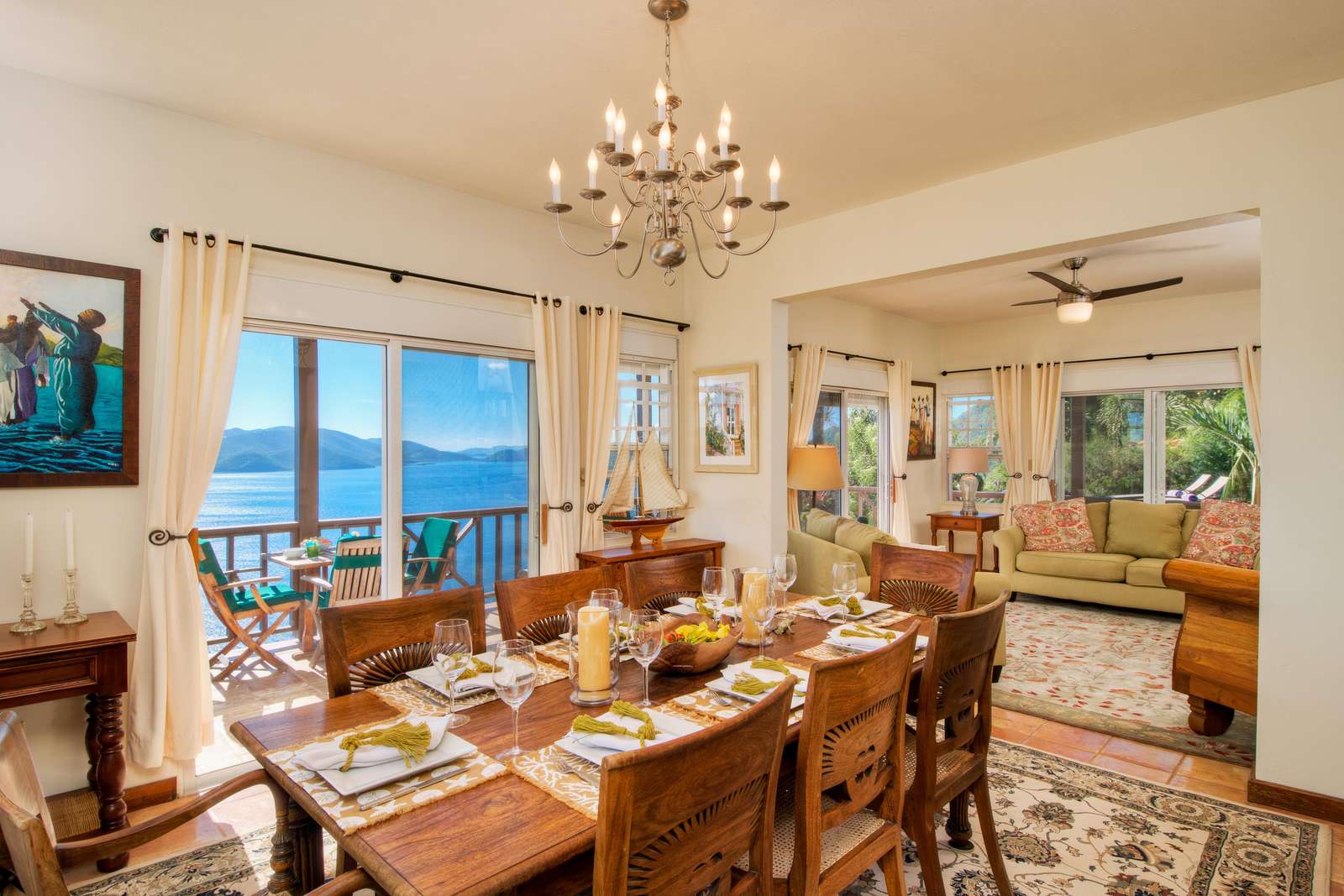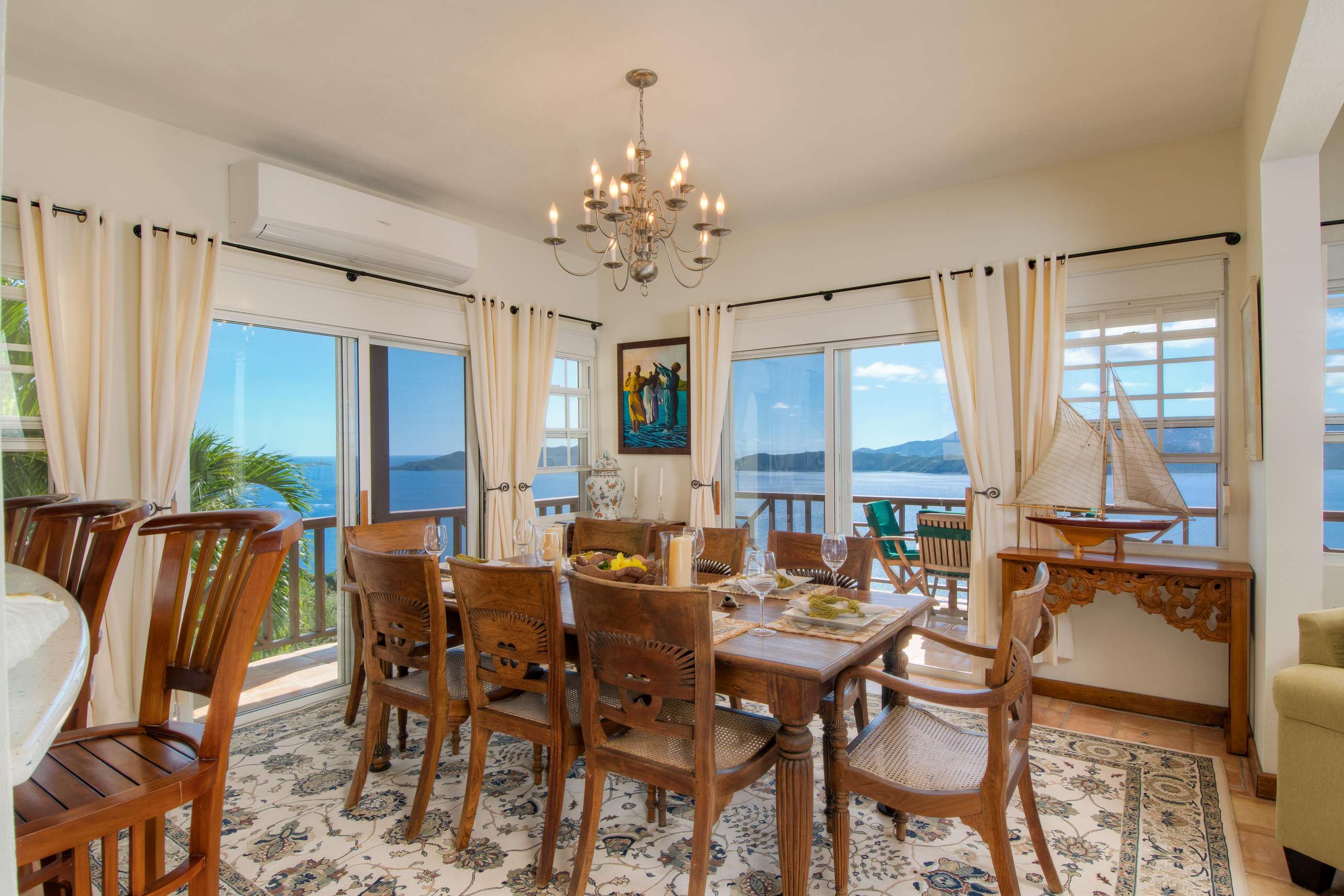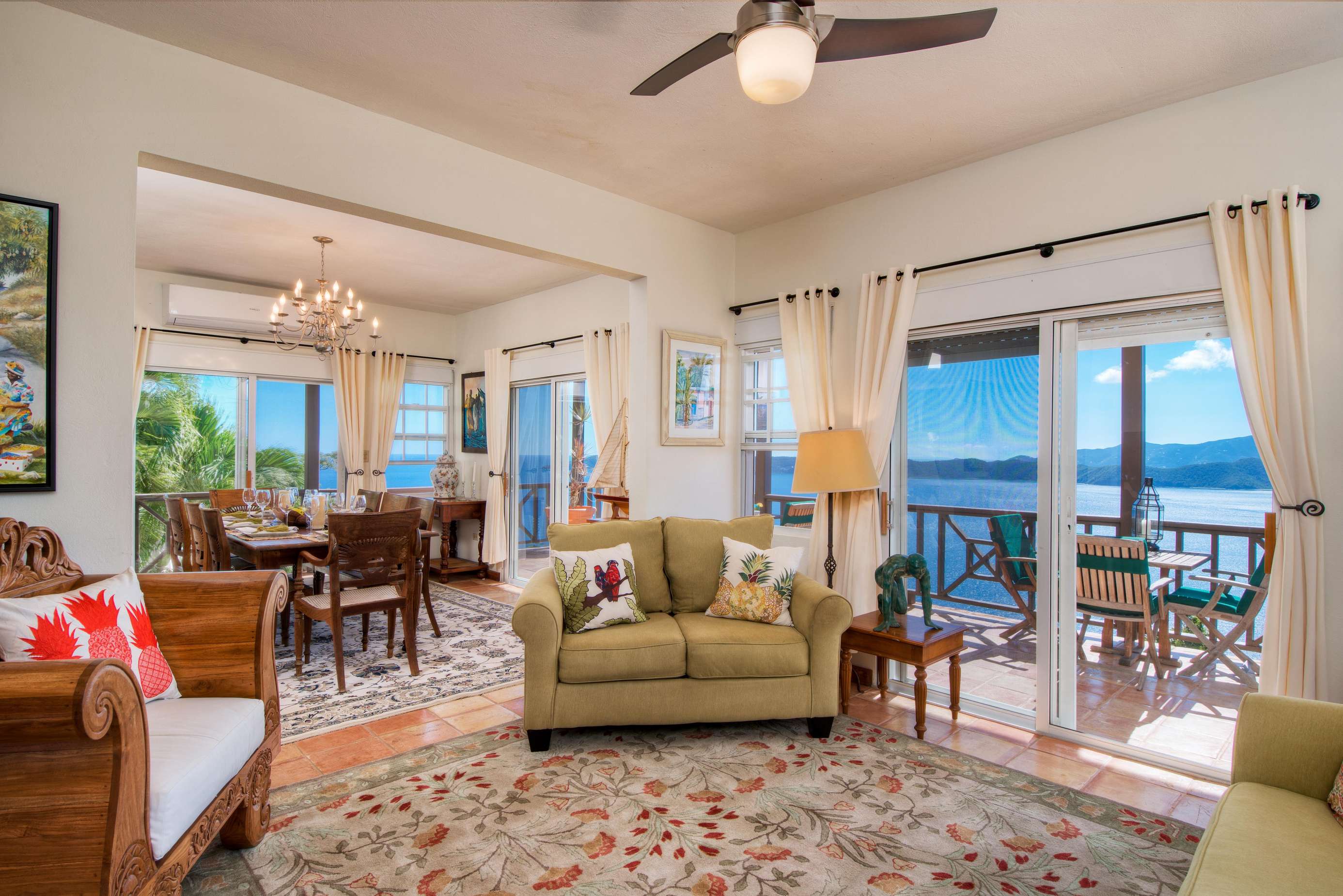 The neutral tones, Caribbean style paintings by local artists & beautiful quality Balinese teak furniture lends a calming backdrop for the views to take centre stage.
