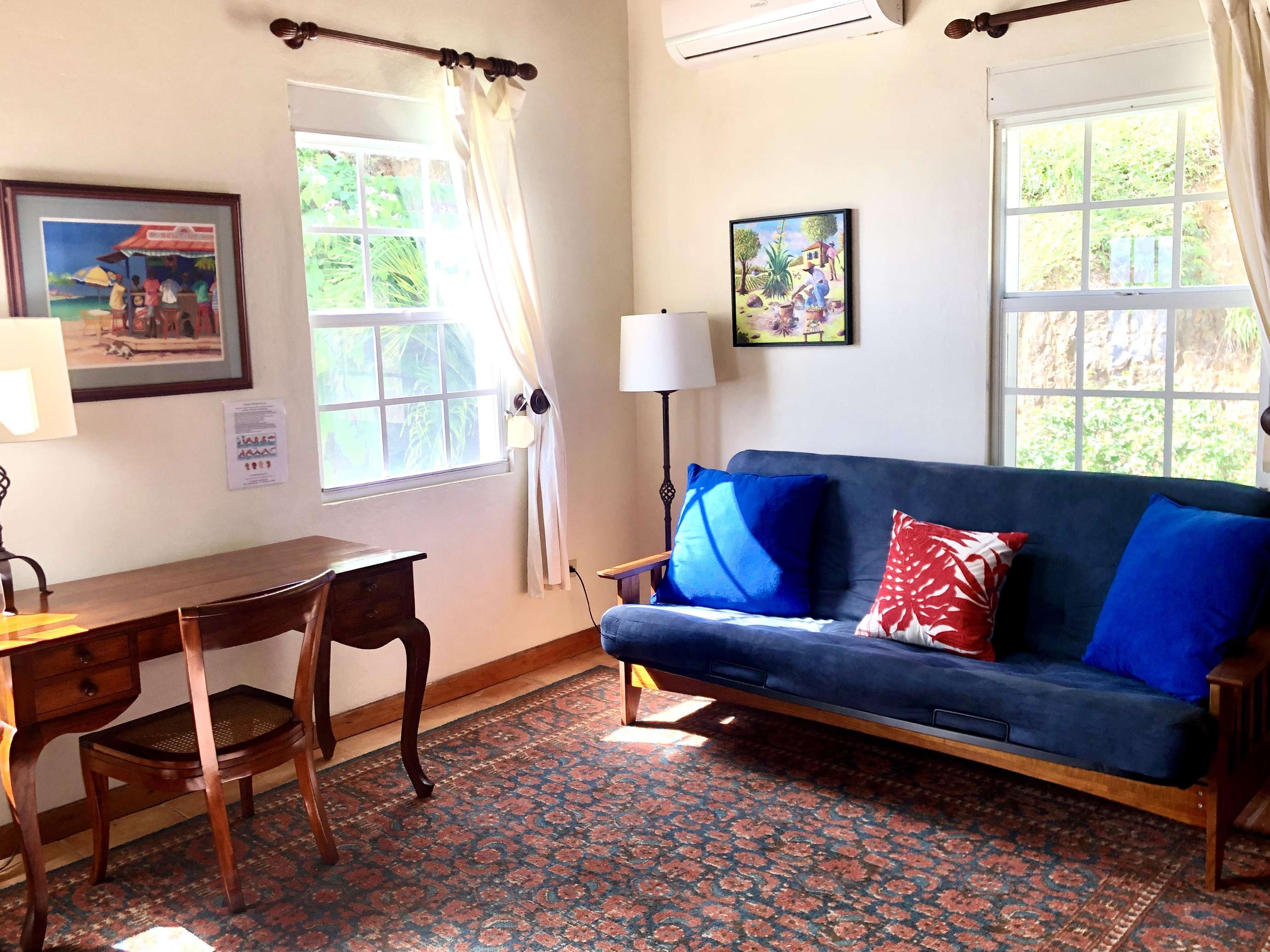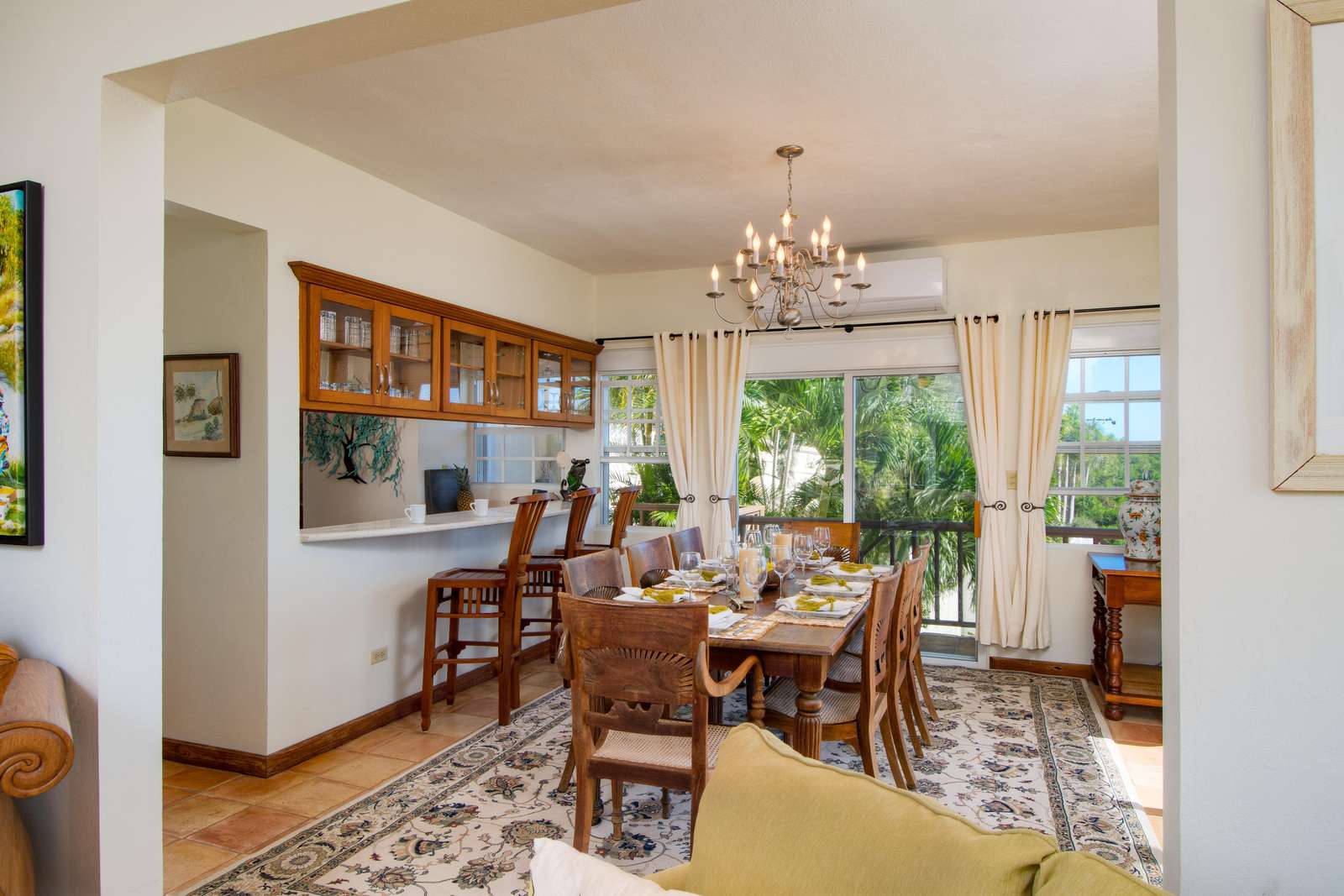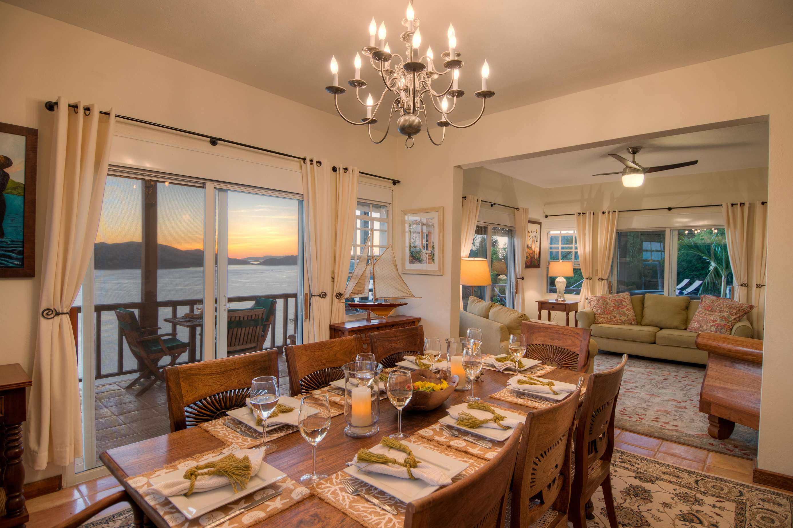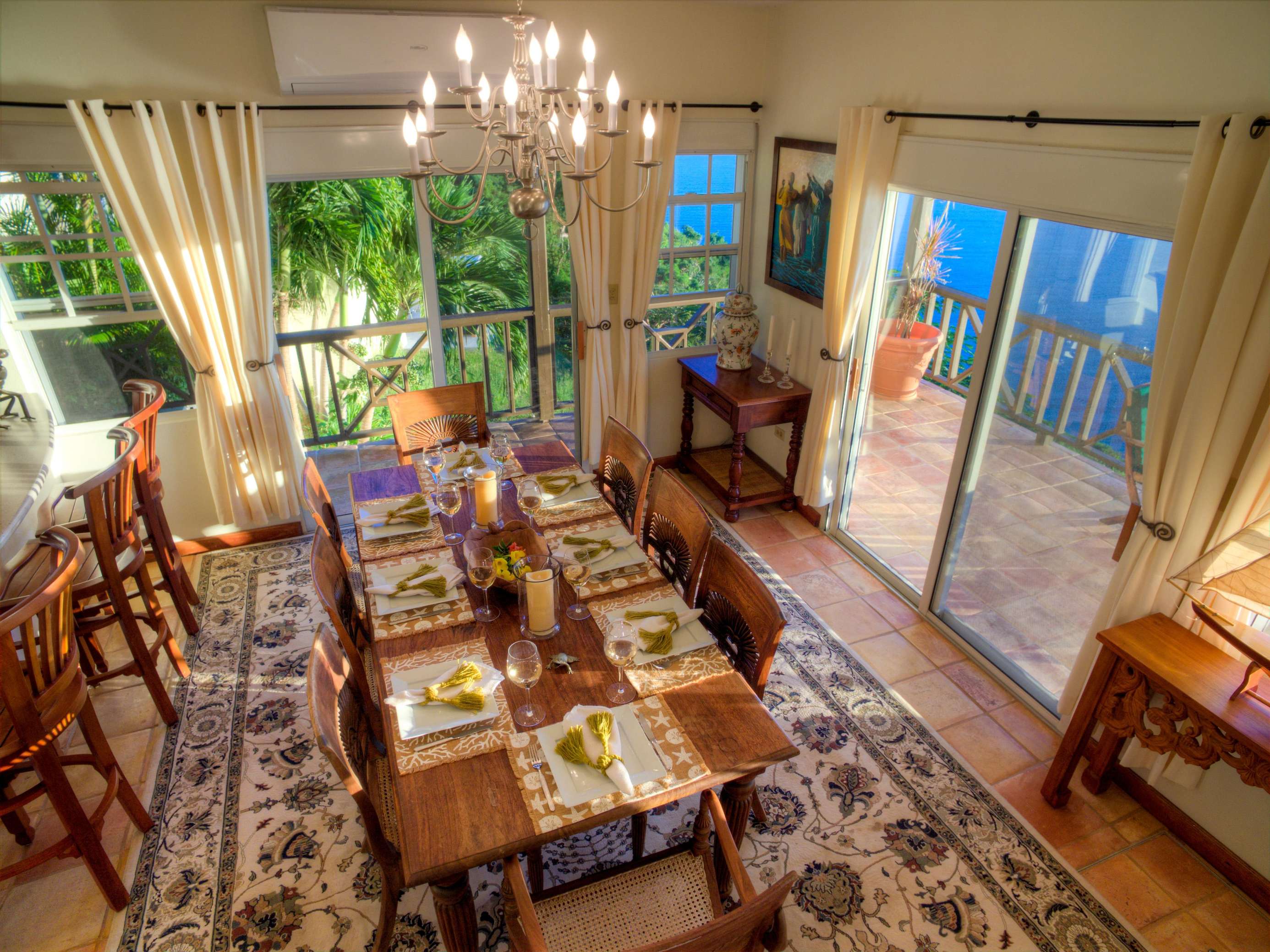 The neutral tones, Caribbean style paintings by local artists & beautiful quality Balinese teak furniture lends a calming backdrop for the views to take centre stage.