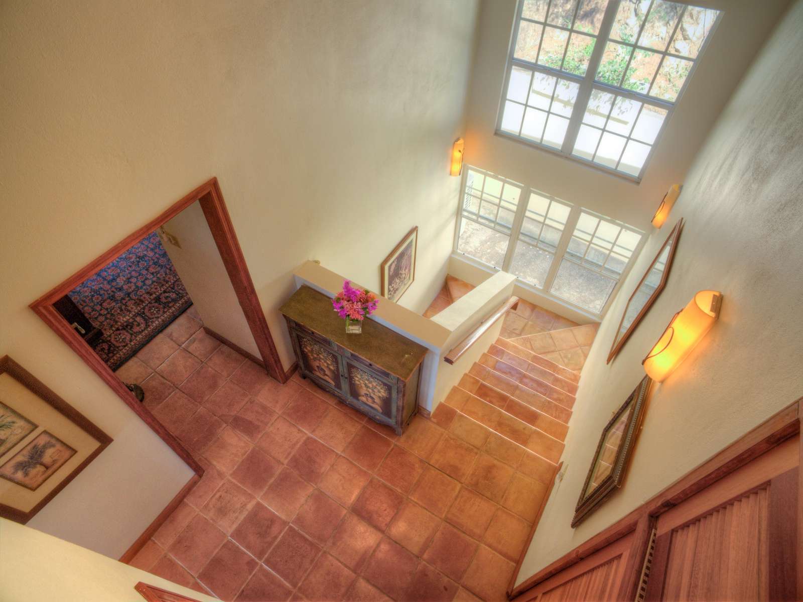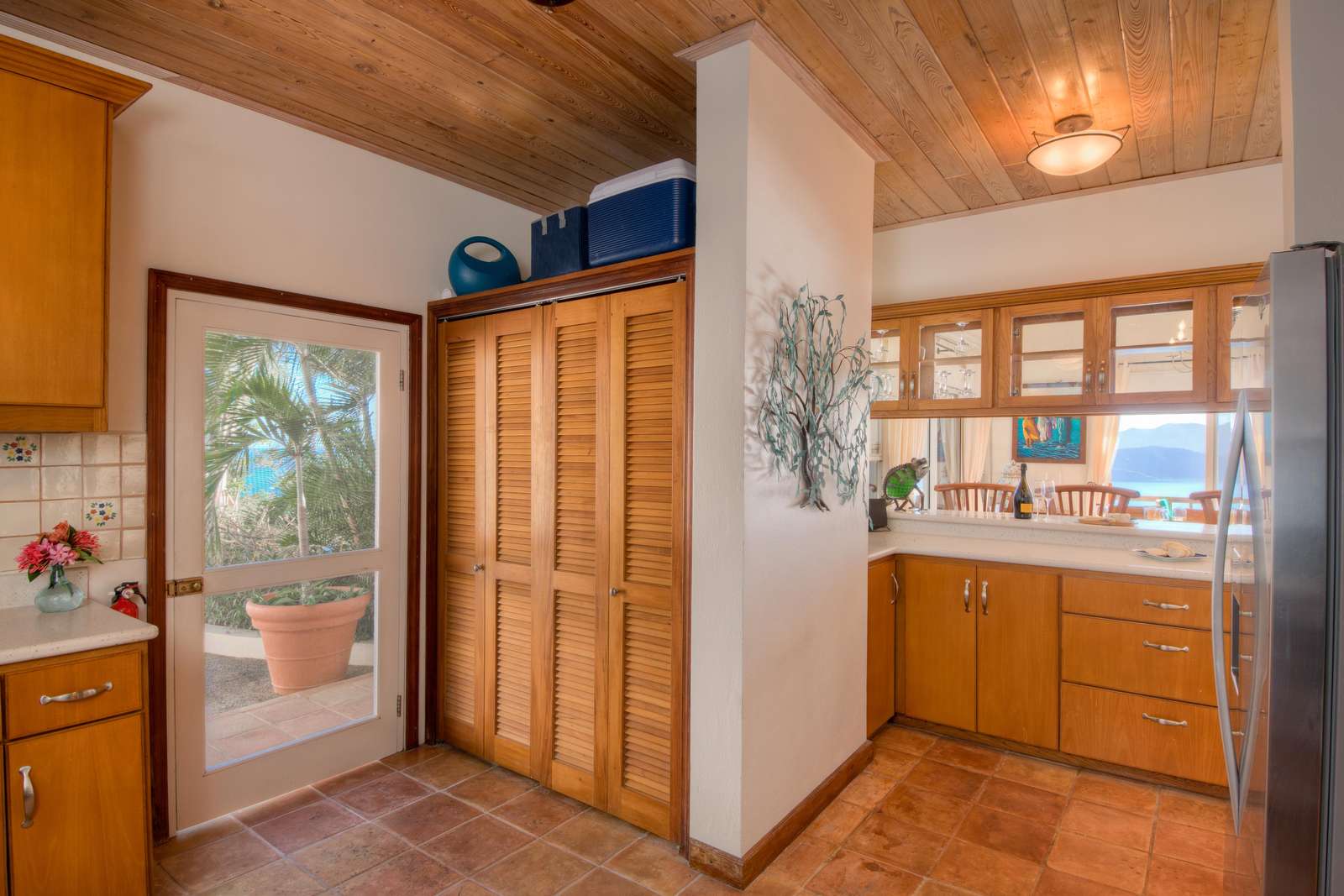 3) A 3rd bedroom with queen bed and built-in closets again offers the ocean views and breezes with the large sliding doors at the foot of the bed. A bathroom with shower located on the landing is shared by this bedroom and anyone who might be staying the office, although there is also a half bathroom is also located on the ground floor.