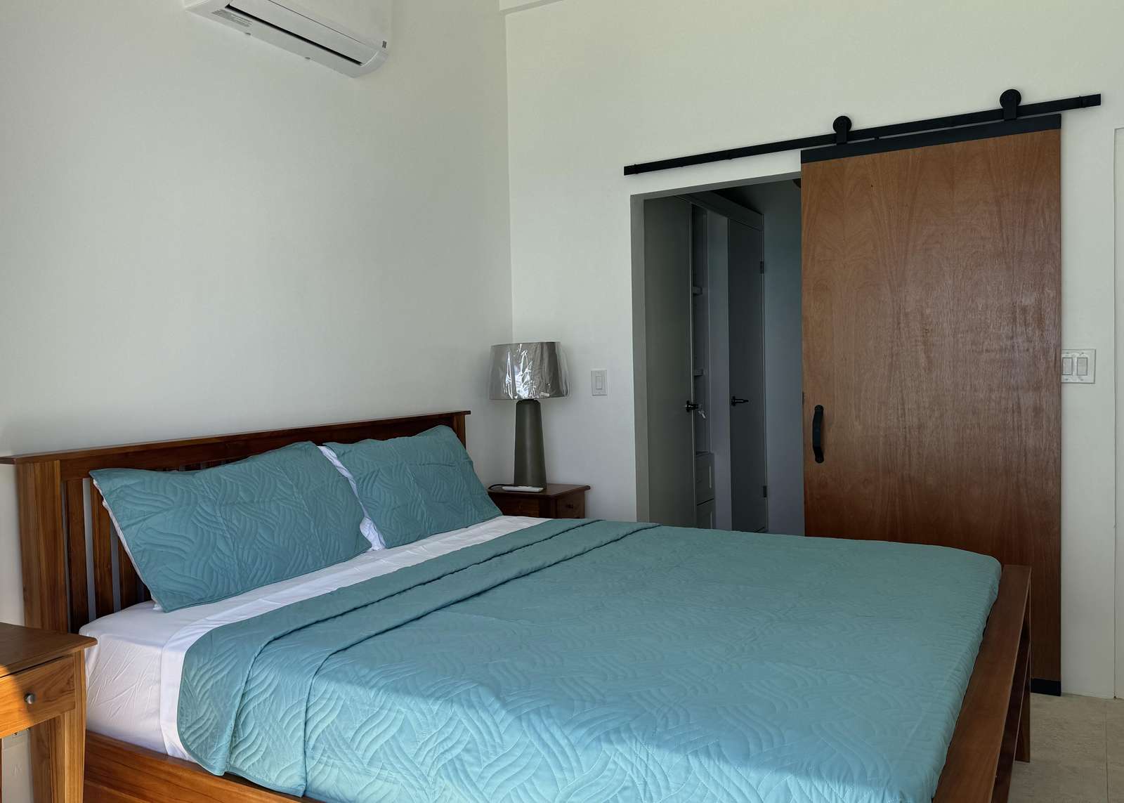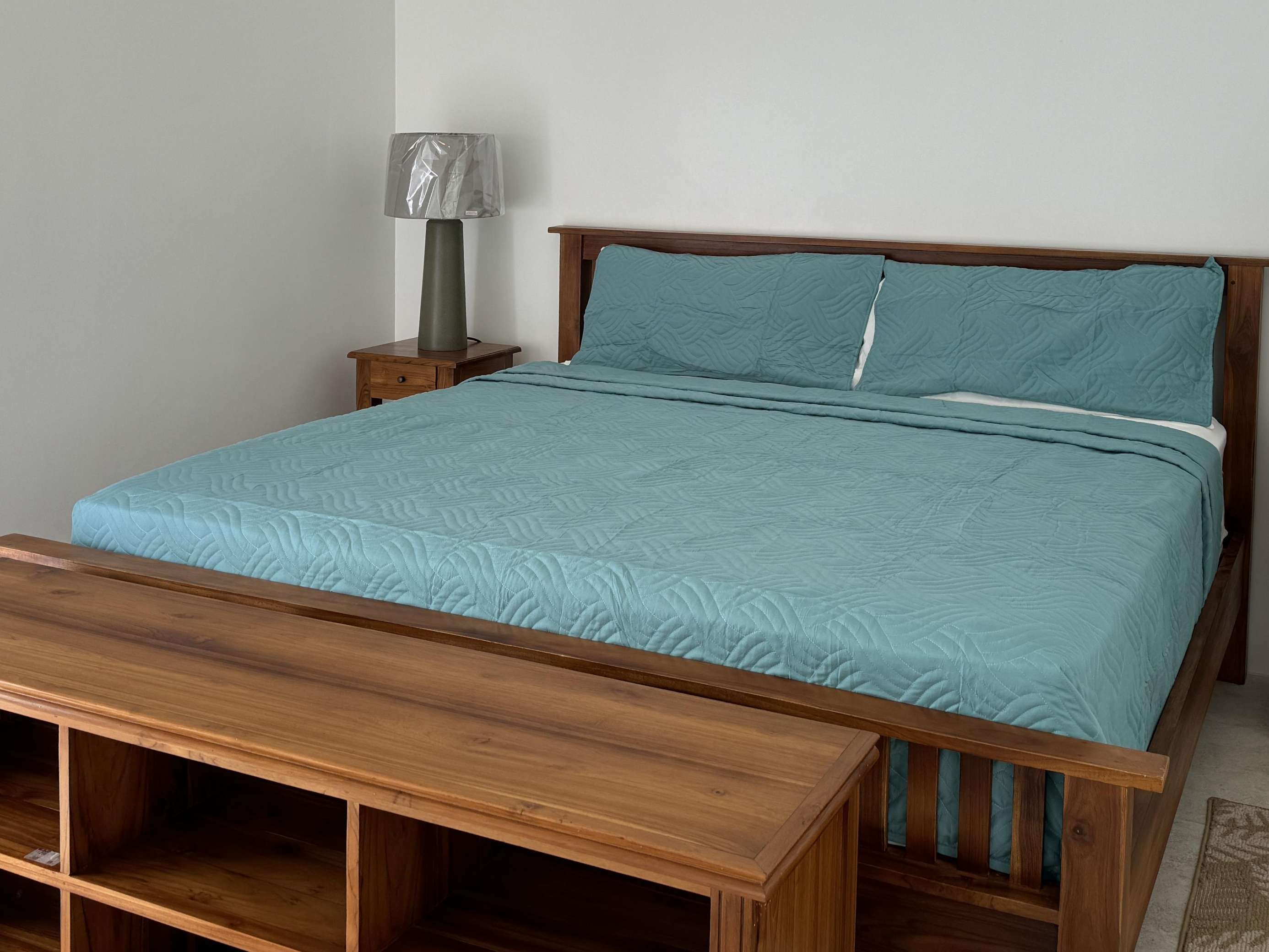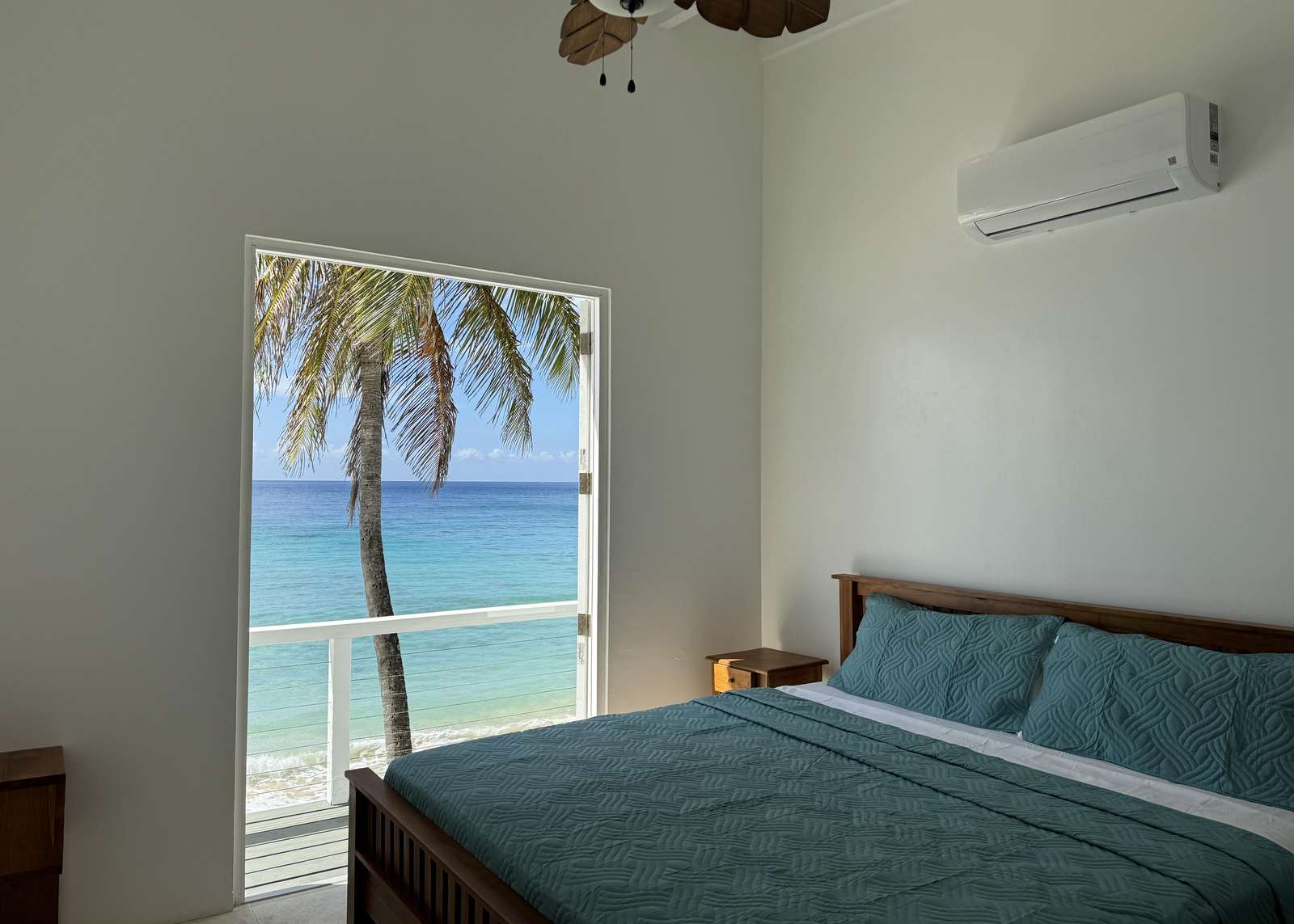 The bedrooms are either side of the living room and both have the comfort of a teak king bed and choice of AC or ceiling fans.