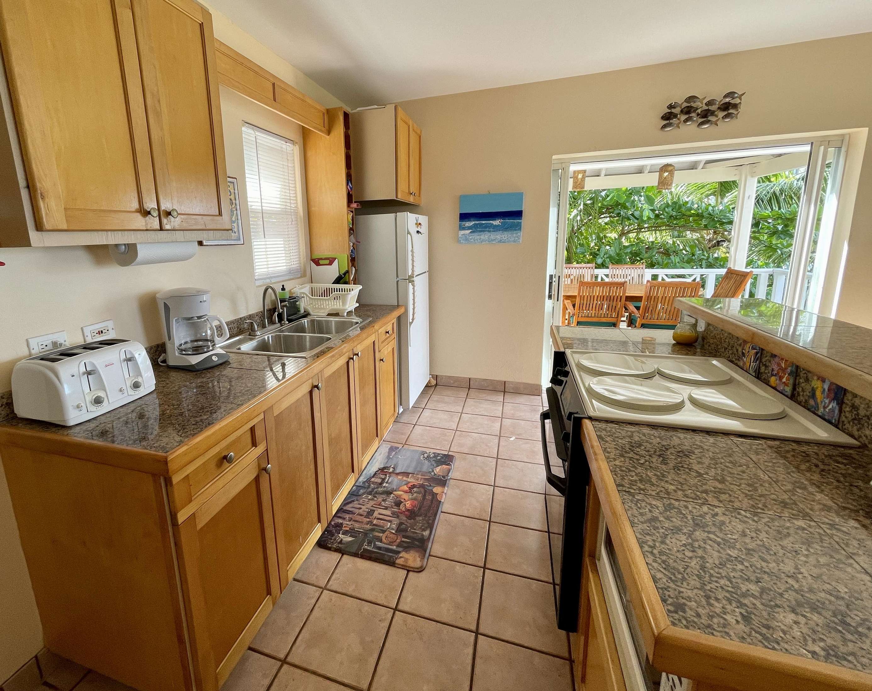 Surrounded by tropical palms and lush vegetation is your private dining deck. With seating for 6 and a built-in gas BBQ, it’s a wonderful space for dining and chatting with friends and family with ocean views beyond.