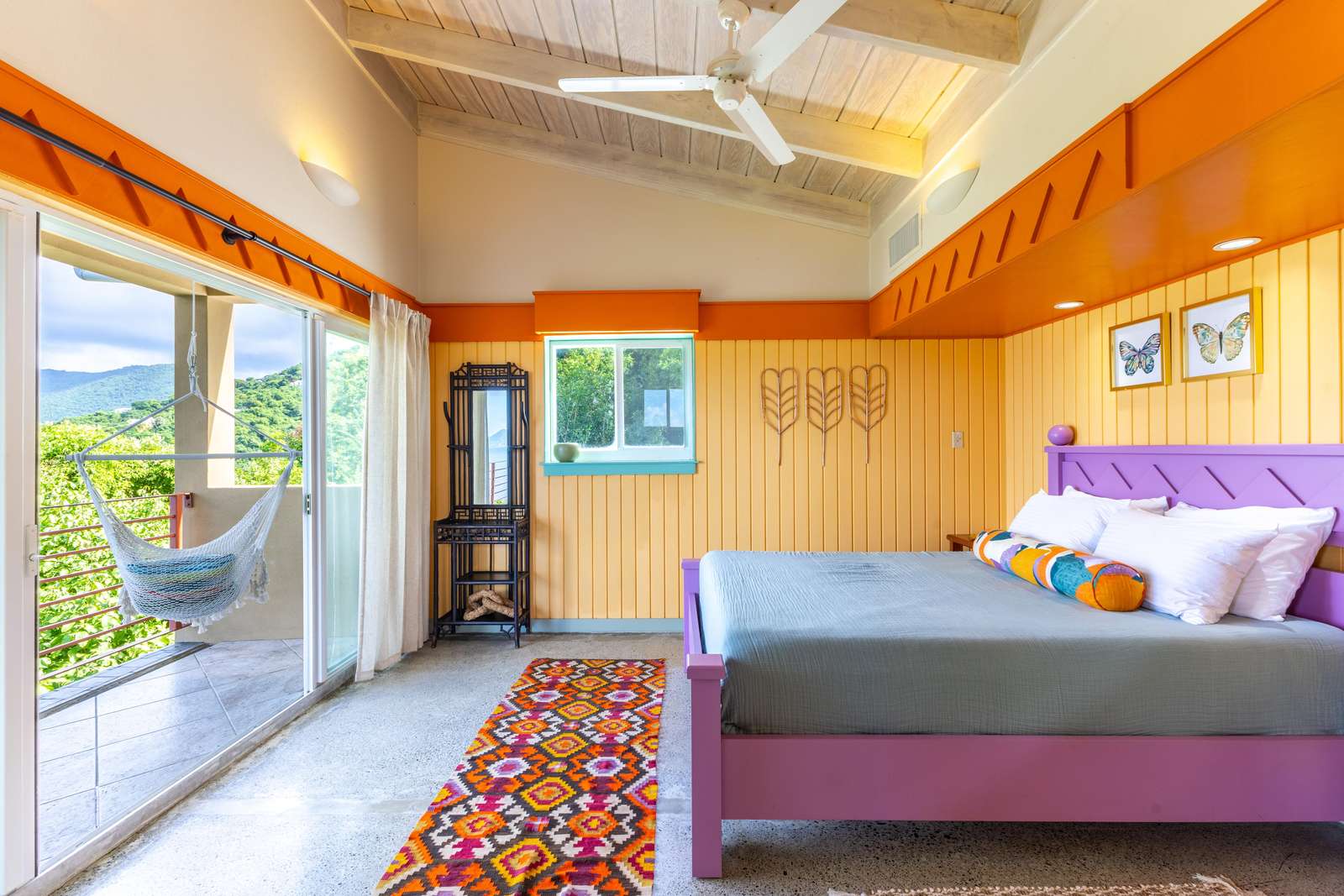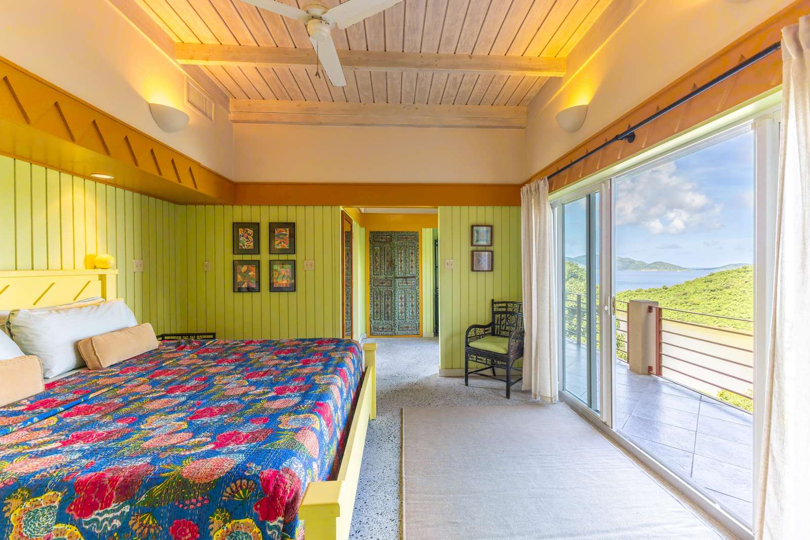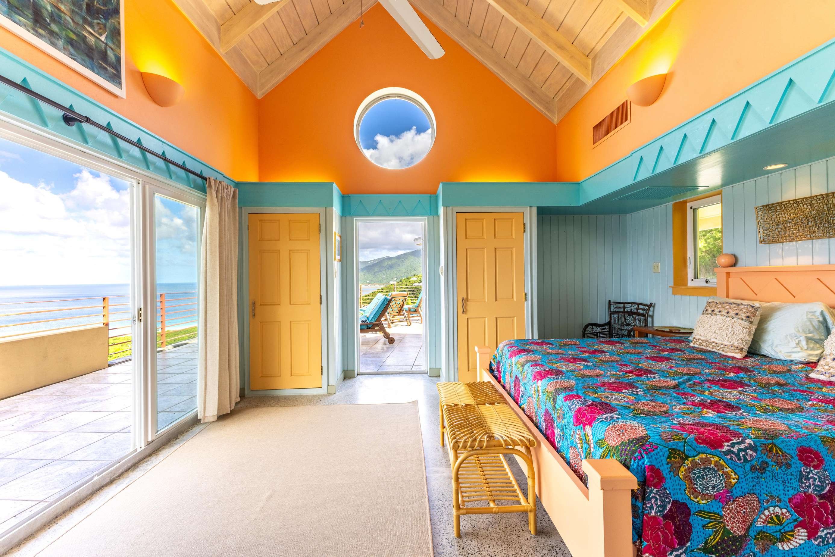 There are 4 bedrooms at Stargazer, all with bright & cheery painted furniture,AC, ocean views & ensuites so no arguing over bedrooms necessary!