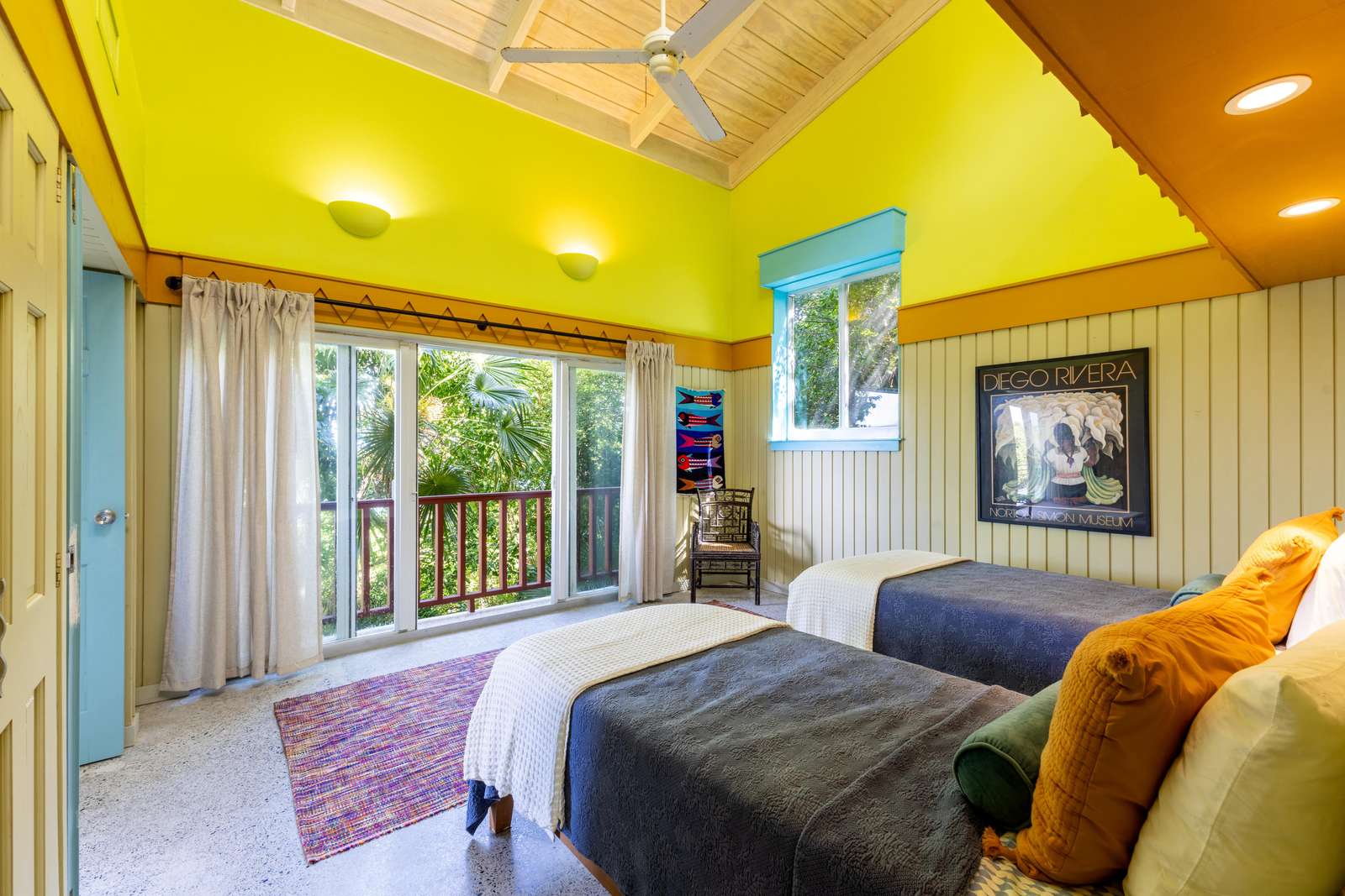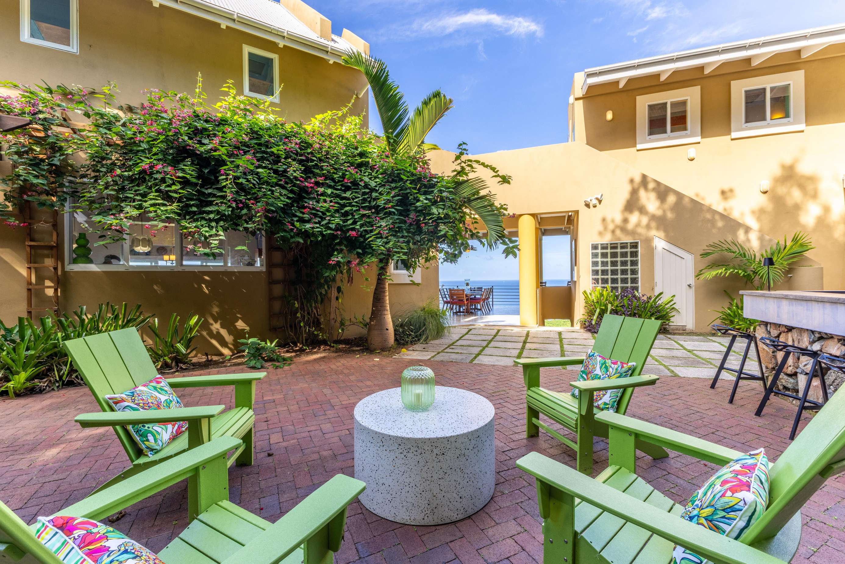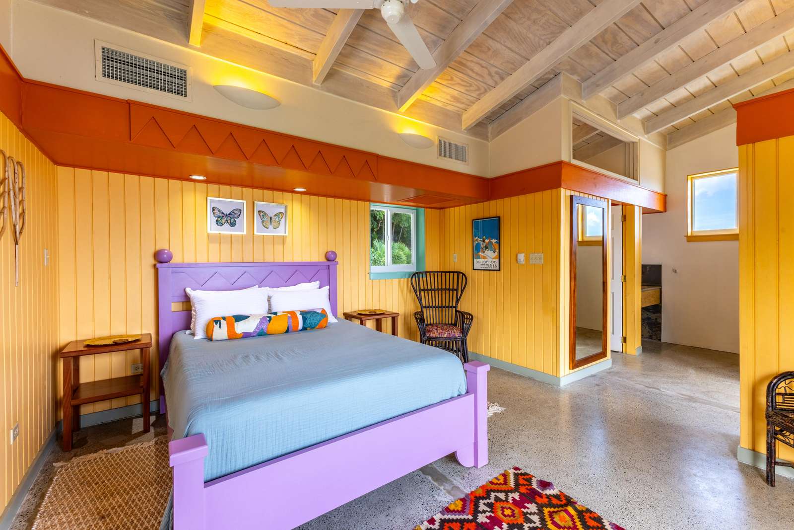 There are 4 bedrooms at Stargazer, all with bright & cheery painted furniture,AC, ocean views & ensuites so no arguing over bedrooms necessary!