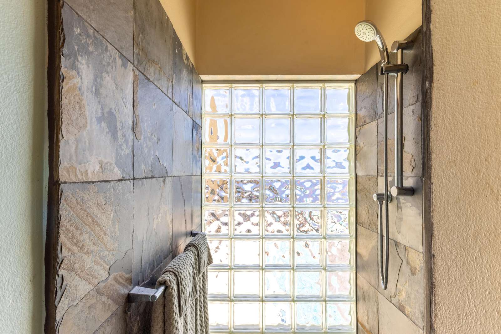 4) A double room is to the right as you come up the stairs, again with access to a balcony with ocean views, unique hand-painted wooden doors, and ensuite bathroom with glass tiled walk-in shower.