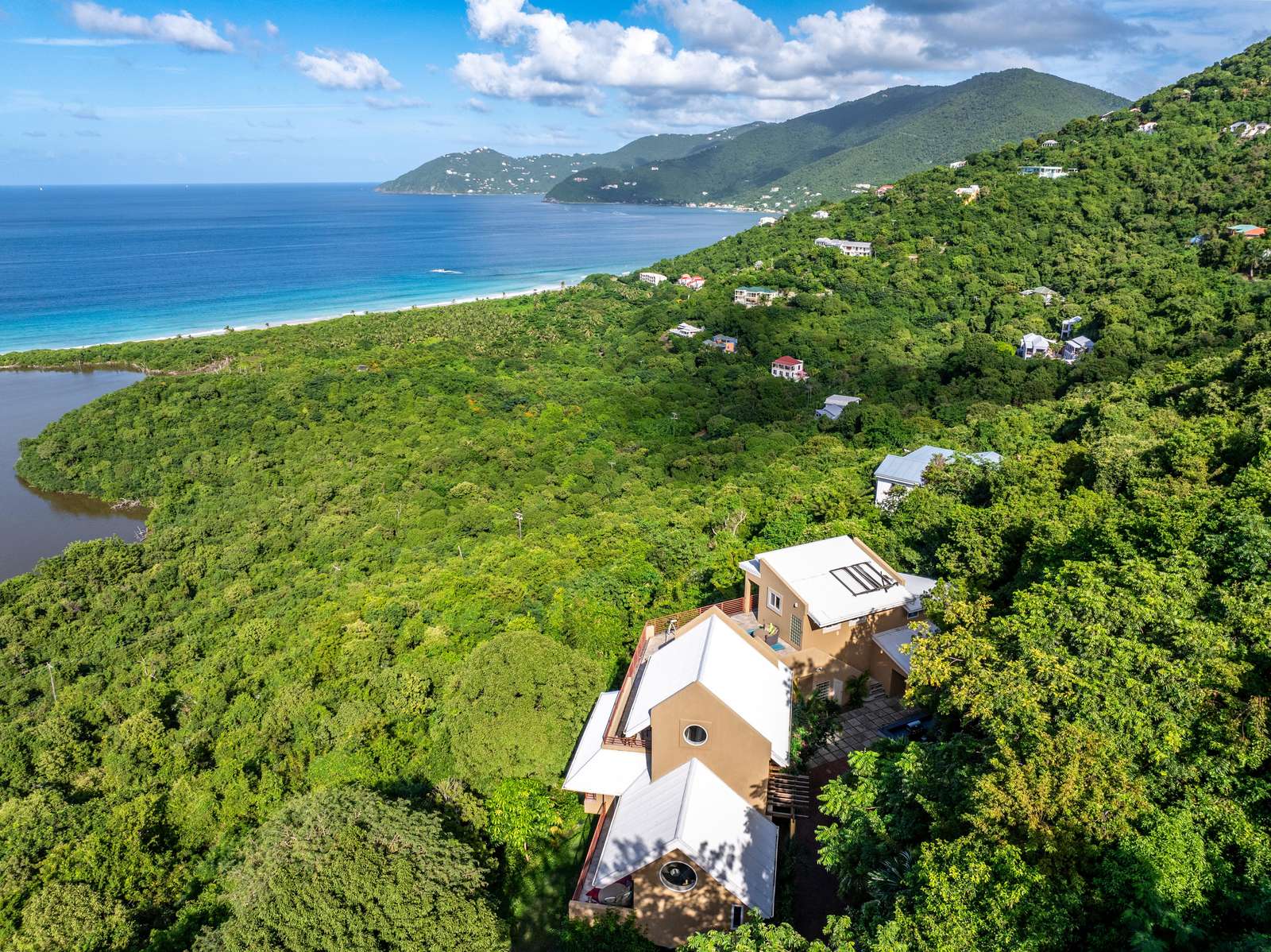 Stargazer is located in the exclusive but welcoming rural estate of Belmont. You can drive to two beautiful beaches (Smuggler’s Cove and Long Bay) in 5/10 minutes or take a pretty walk down but a fairly strenuous one up! Belmont Salt Pond below is a natural reserve and important ecosystem that regularly attracts flamingos (there are 8 there this week as I write this).
