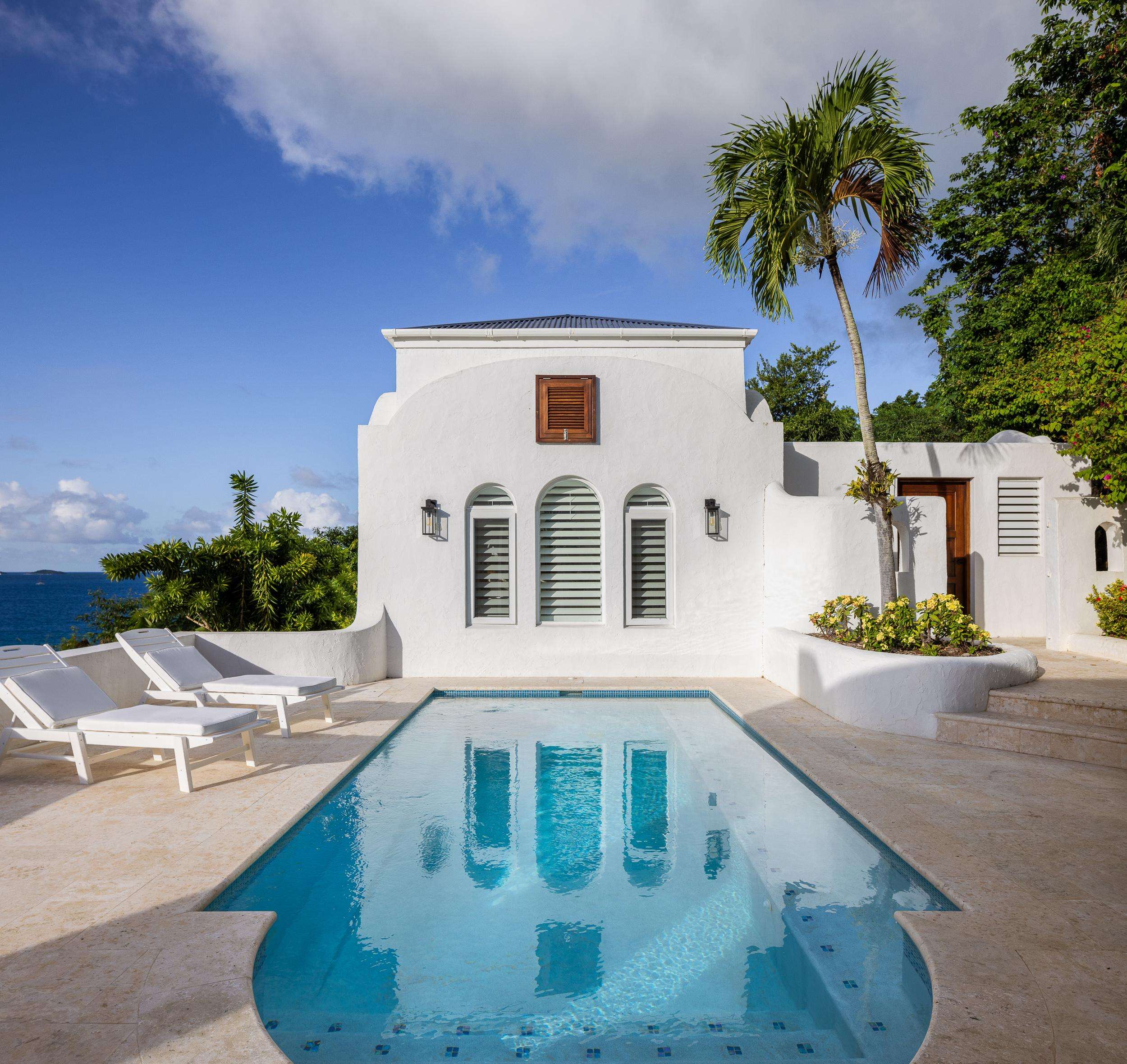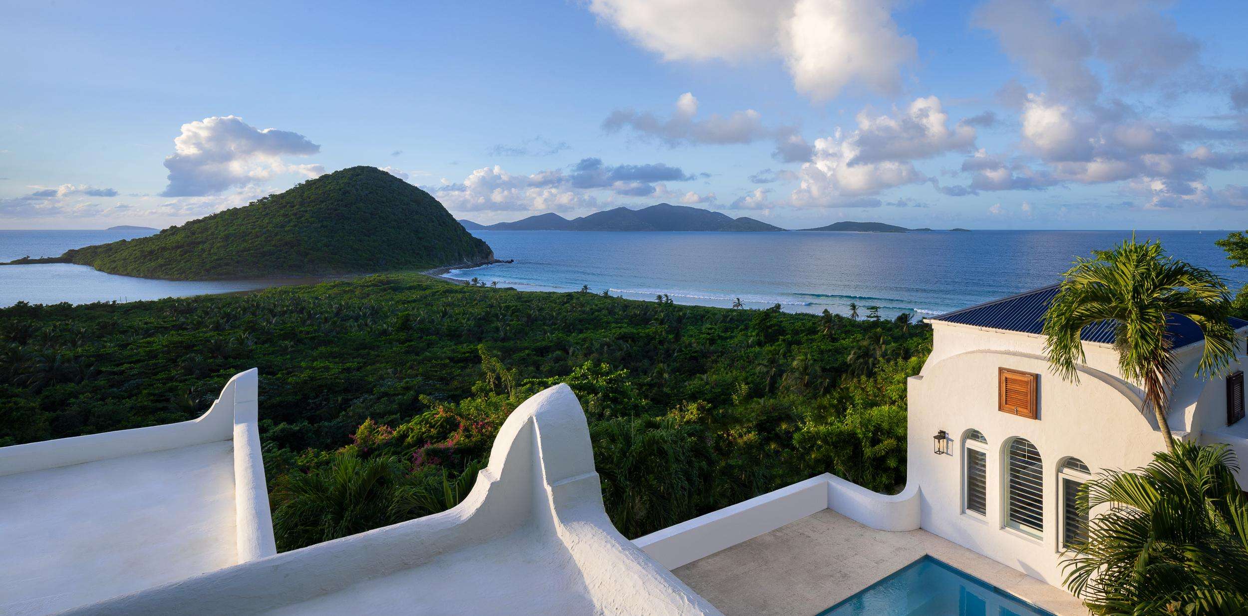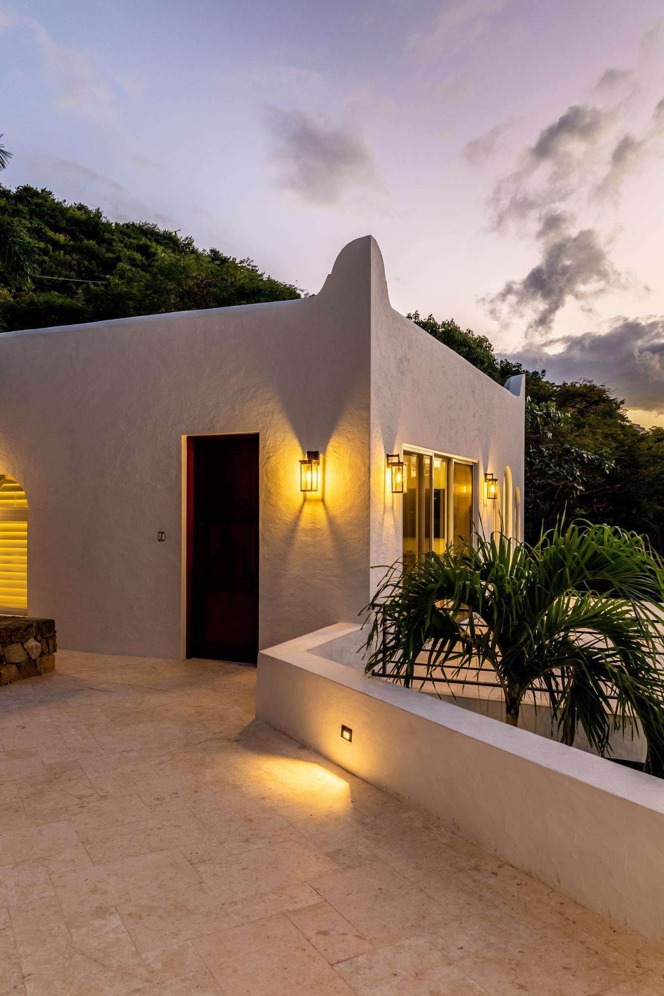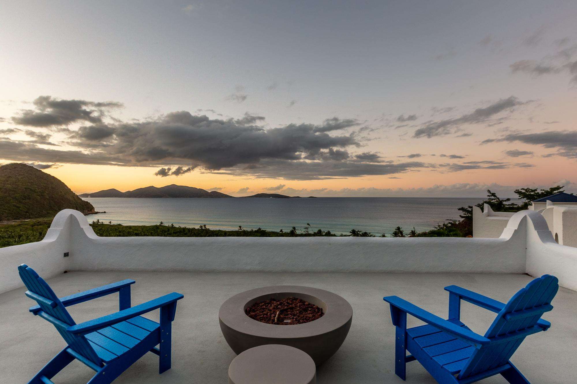 The outside spaces at Santorini are just as unique & thoughtful as the indoors with that signature Mediterranean style. A truly special spot is accessed by a flight of stairs behind the primary suite, where you’ll be met with a rooftop terrace complete with fire pit and breathtaking views over the ocean to Jost Van Dyke. You may even be able to spot some flamingos on Belmont Pond!