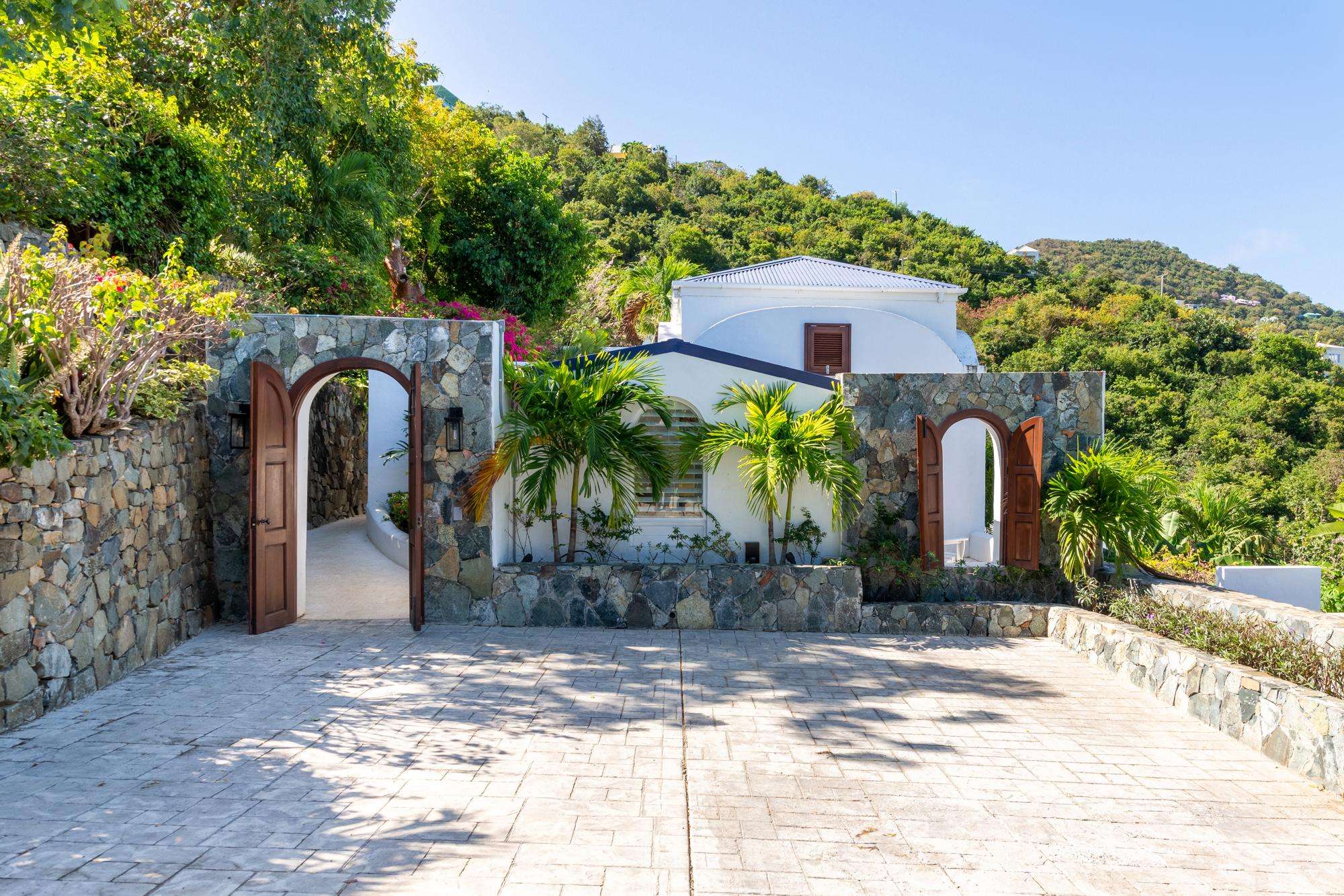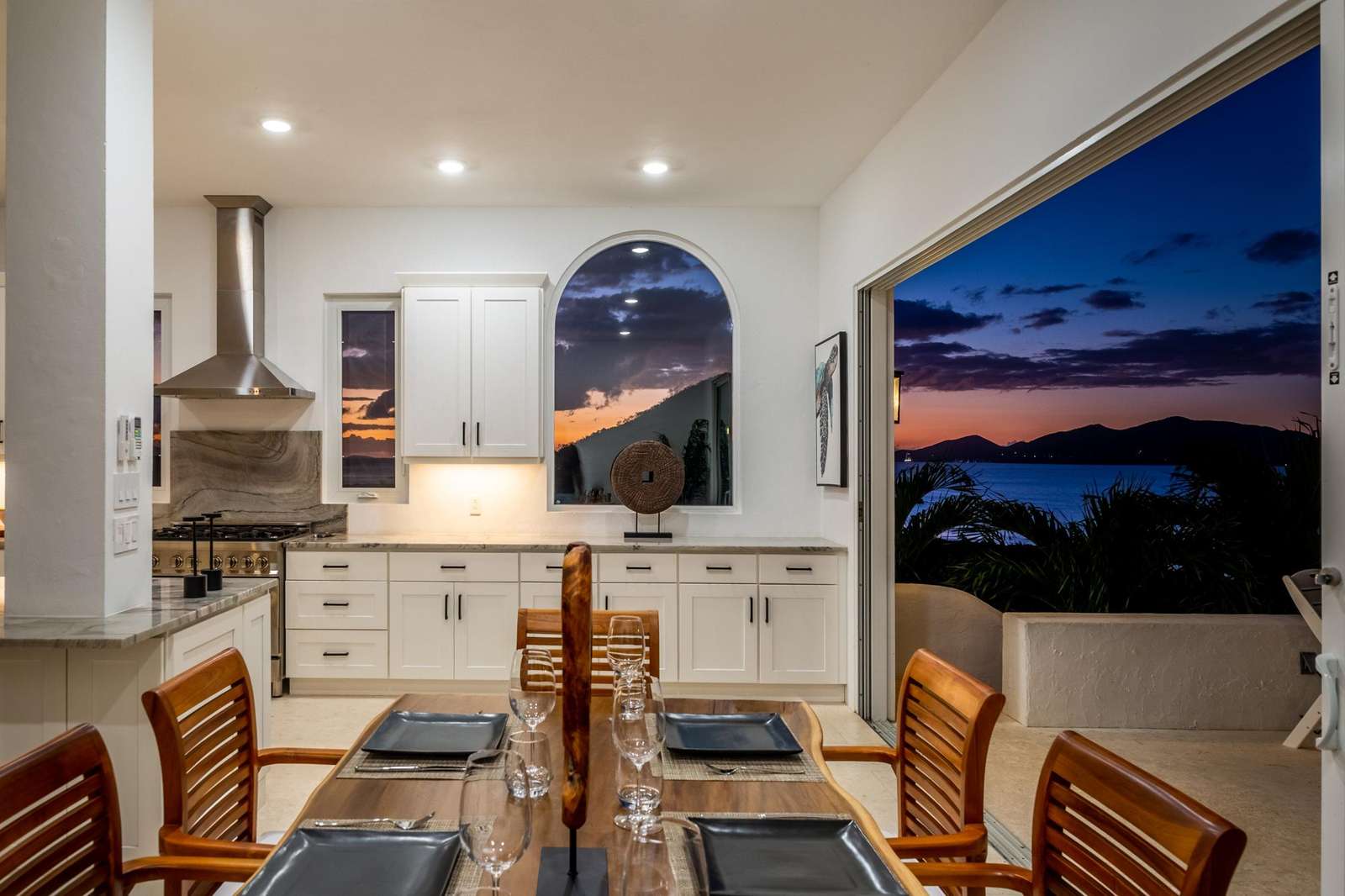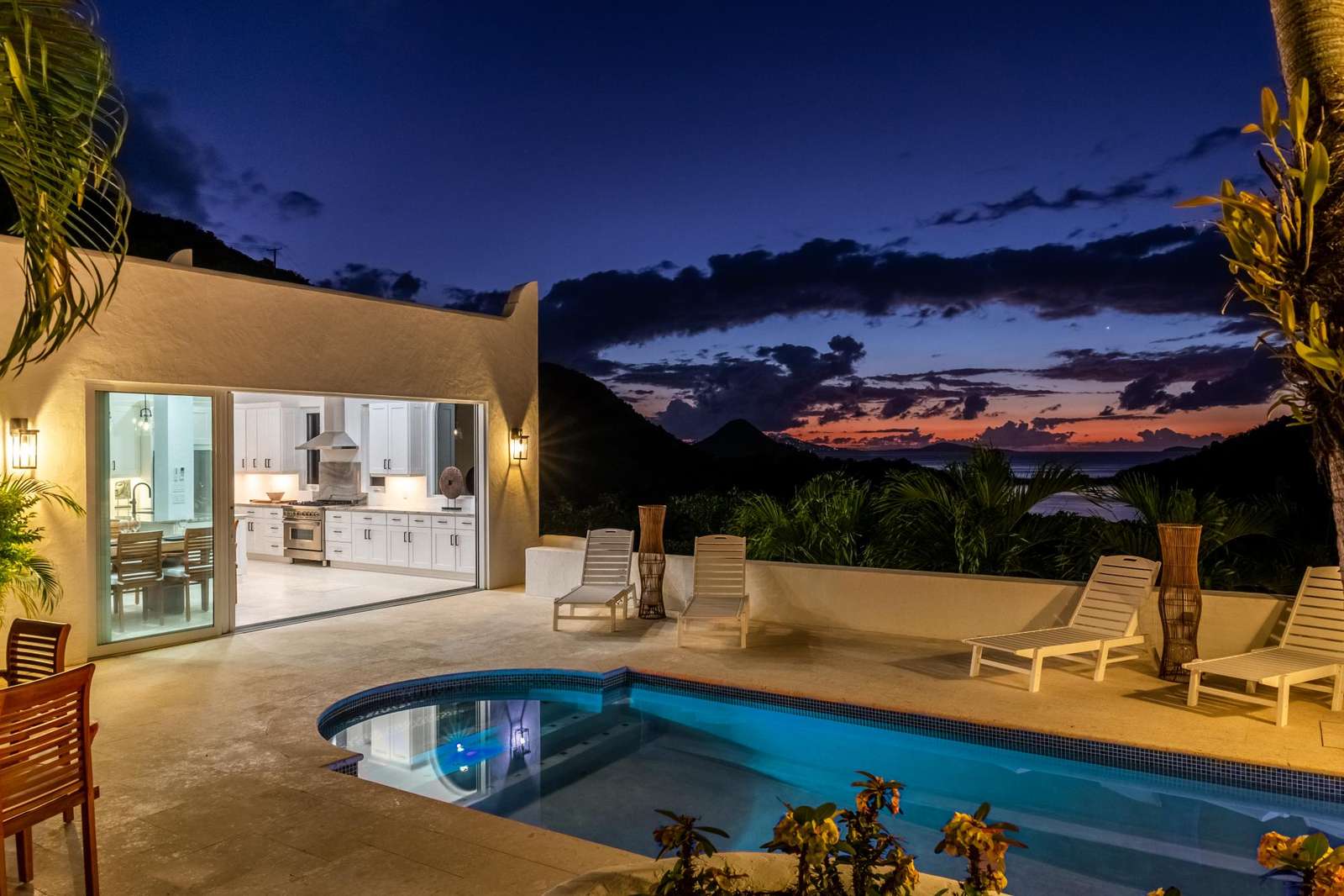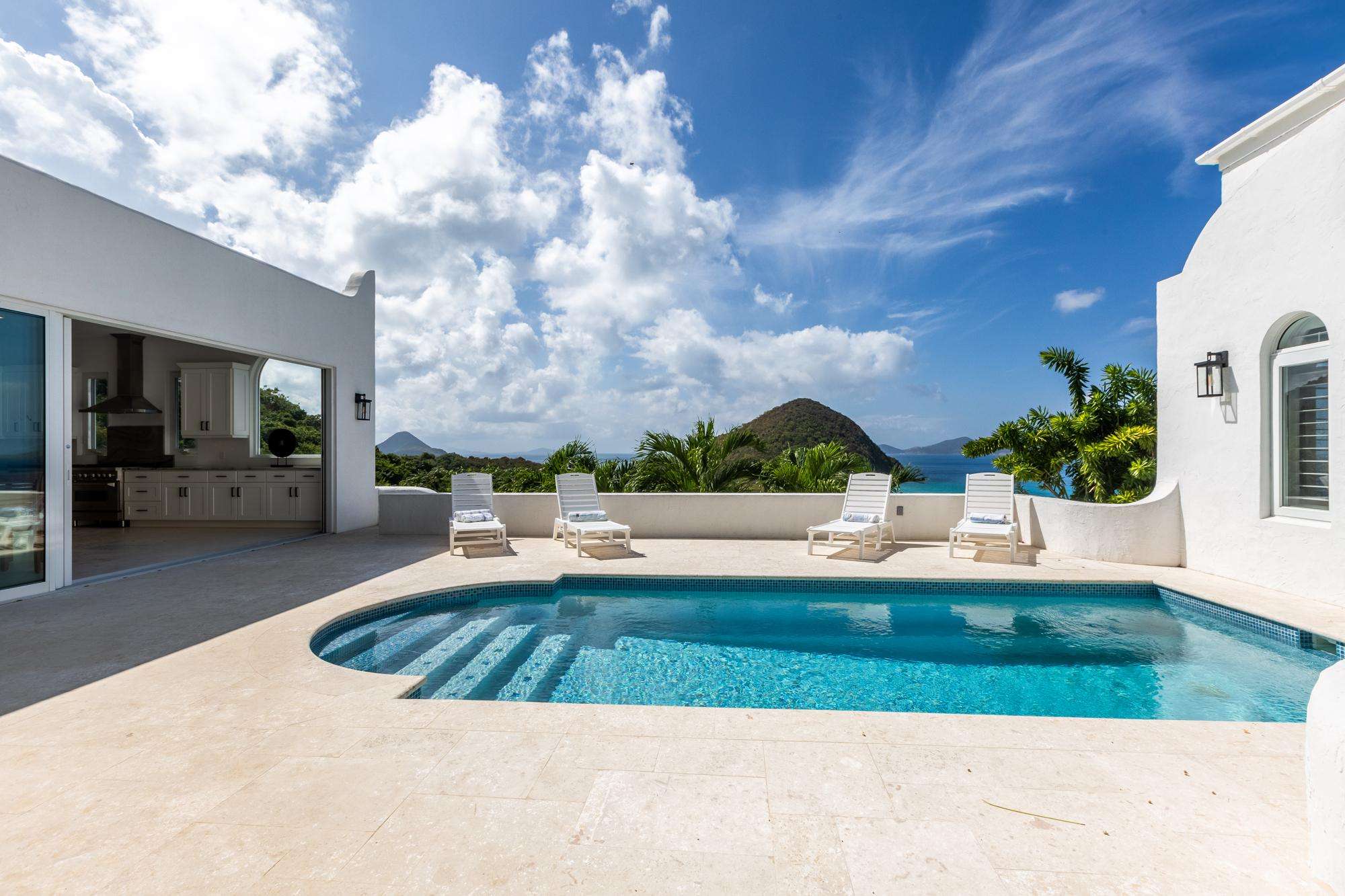 The outside spaces at Santorini are just as unique & thoughtful as the indoors with that signature Mediterranean style. A truly special spot is accessed by a flight of stairs behind the primary suite, where you’ll be met with a rooftop terrace complete with fire pit and breathtaking views over the ocean to Jost Van Dyke. You may even be able to spot some flamingos on Belmont Pond!