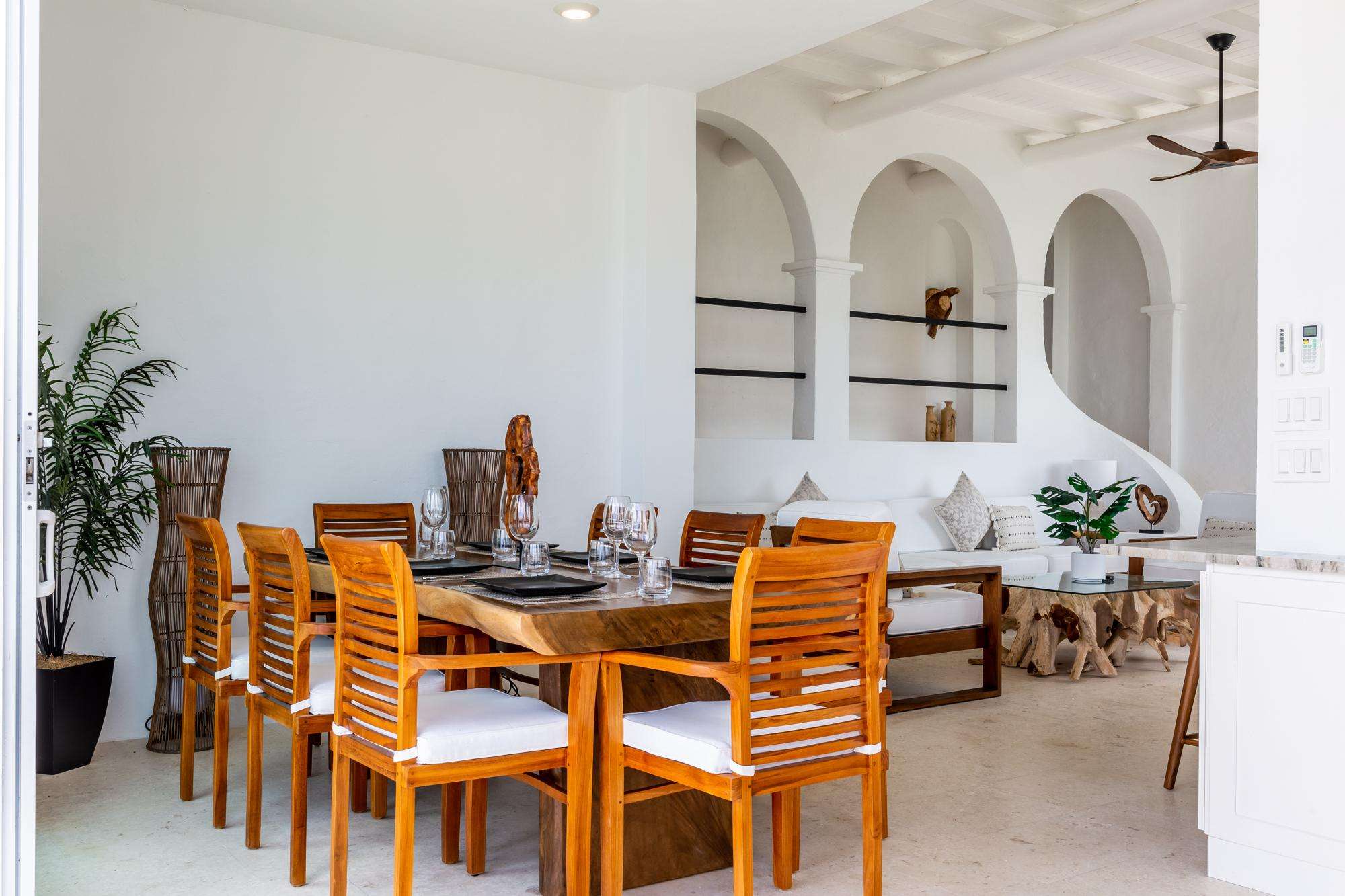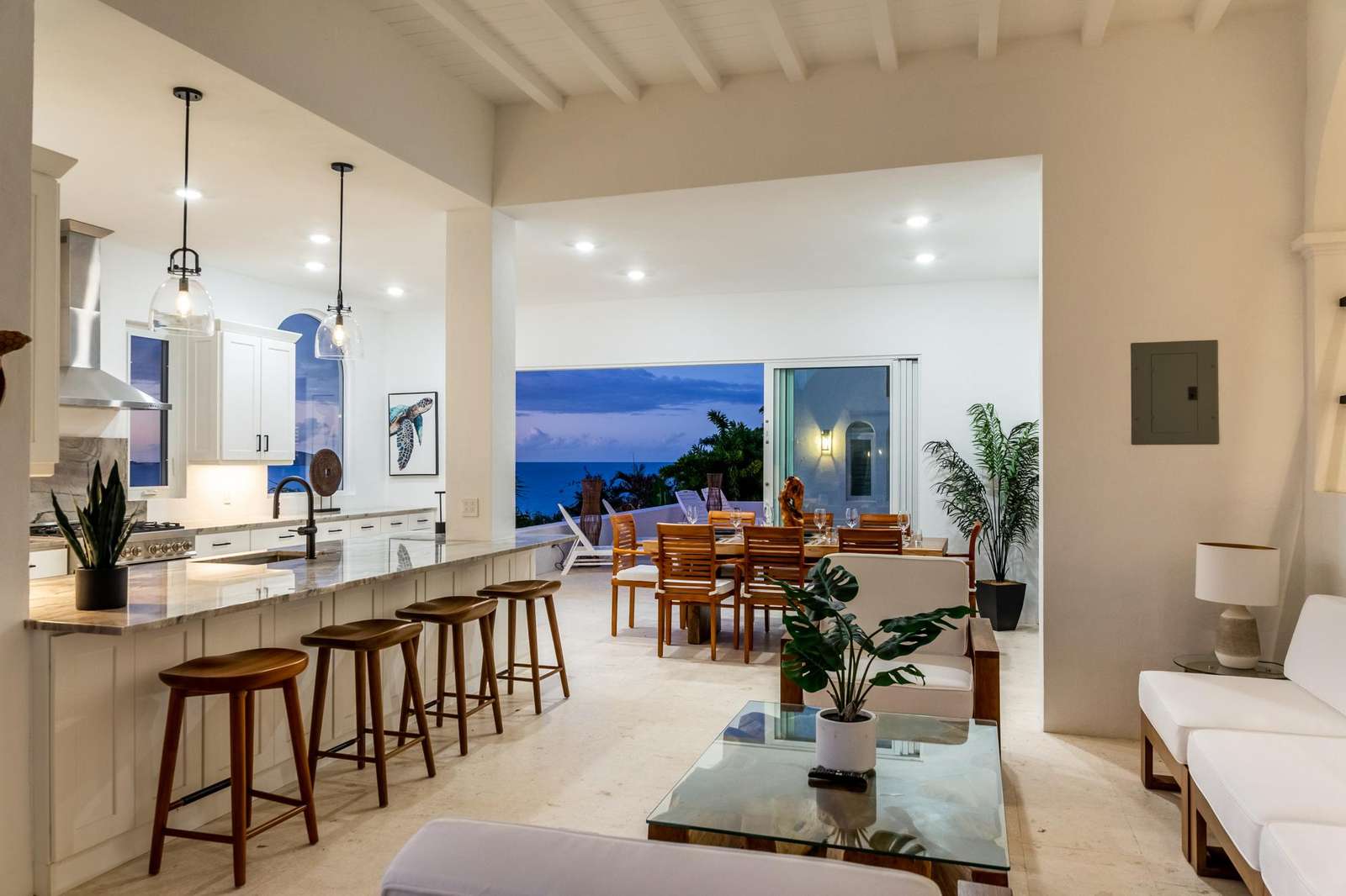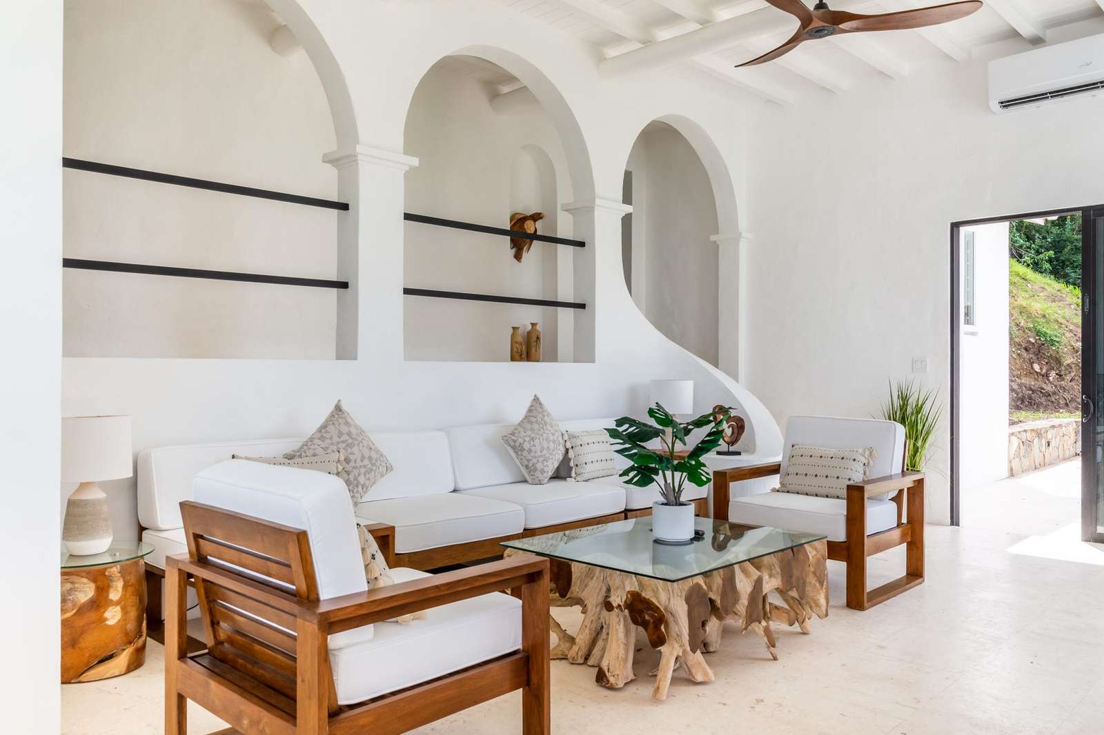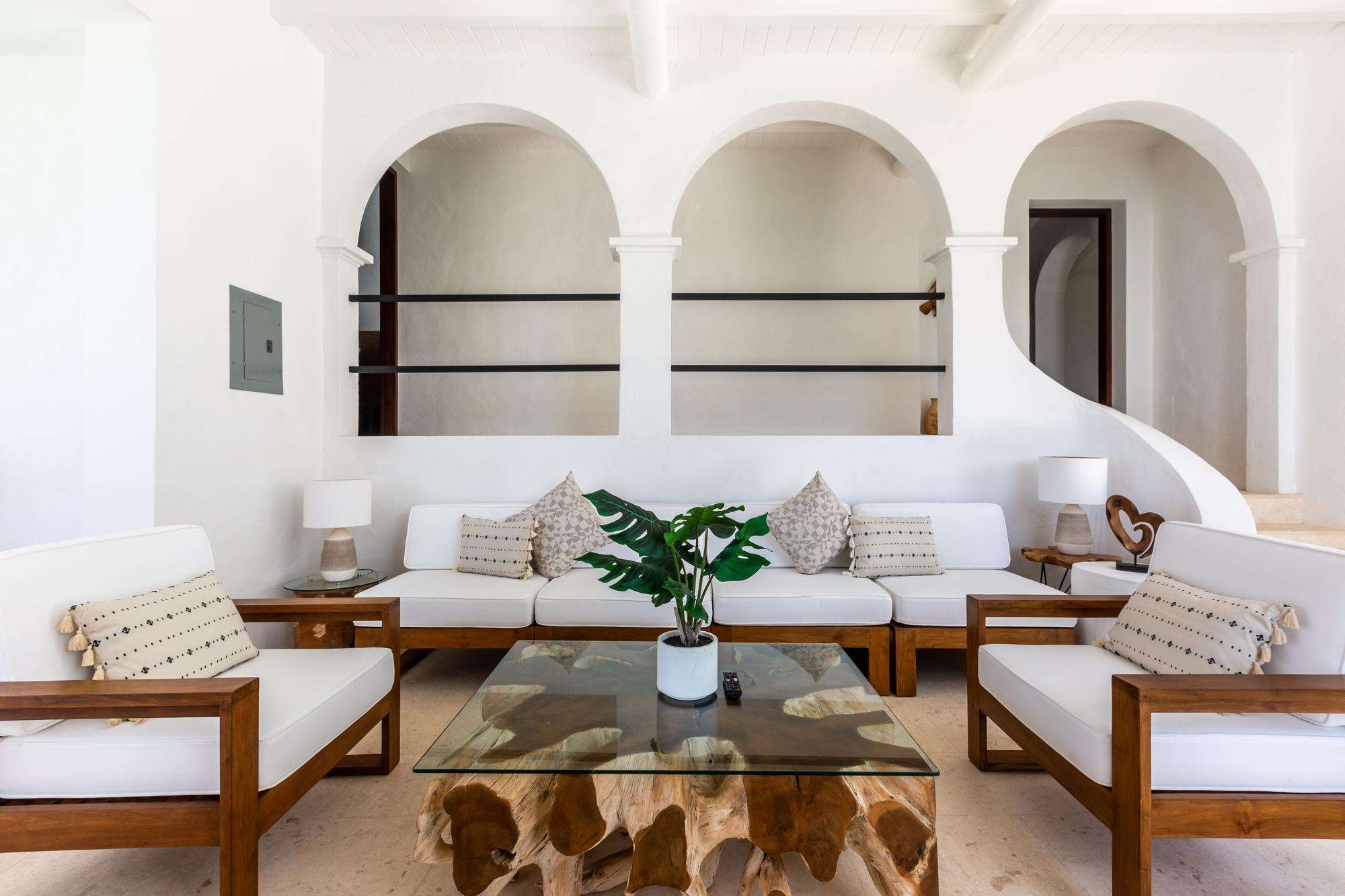 Villa Santorini just oozes effortless Greek glamour. Cool, white walls contrast with splashes of dark exotic woods. Soft curves frame the nearby turquoise ocean & high ceilings flood each room with sea breezes & natural light.