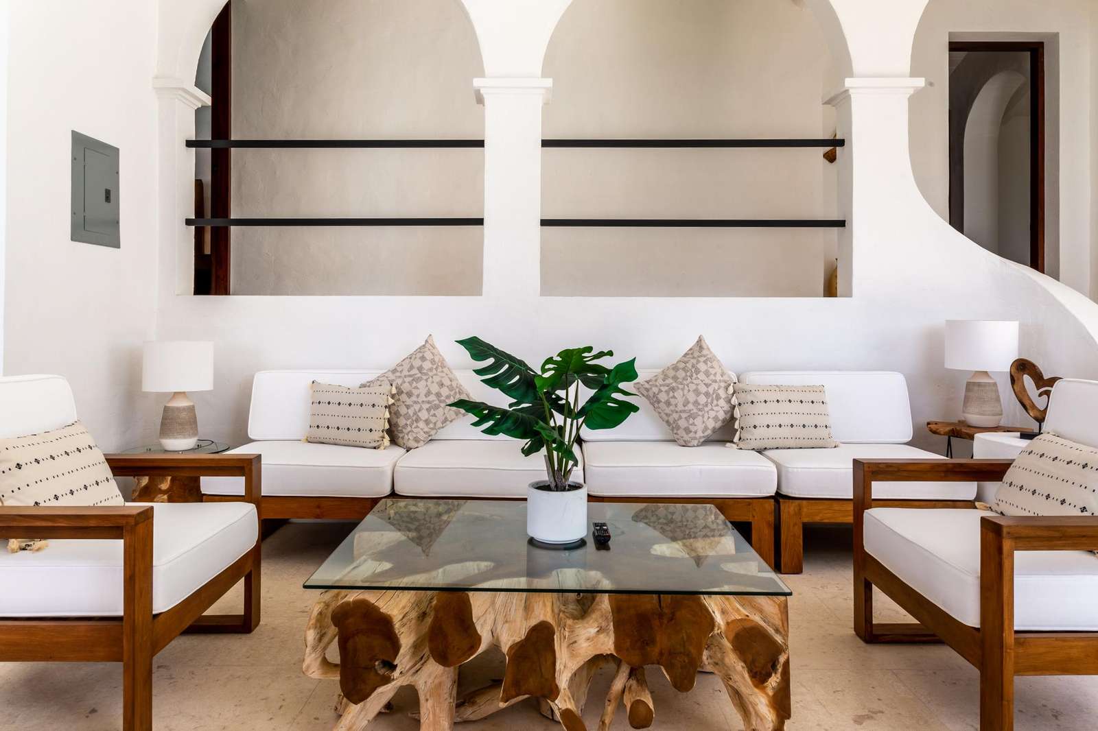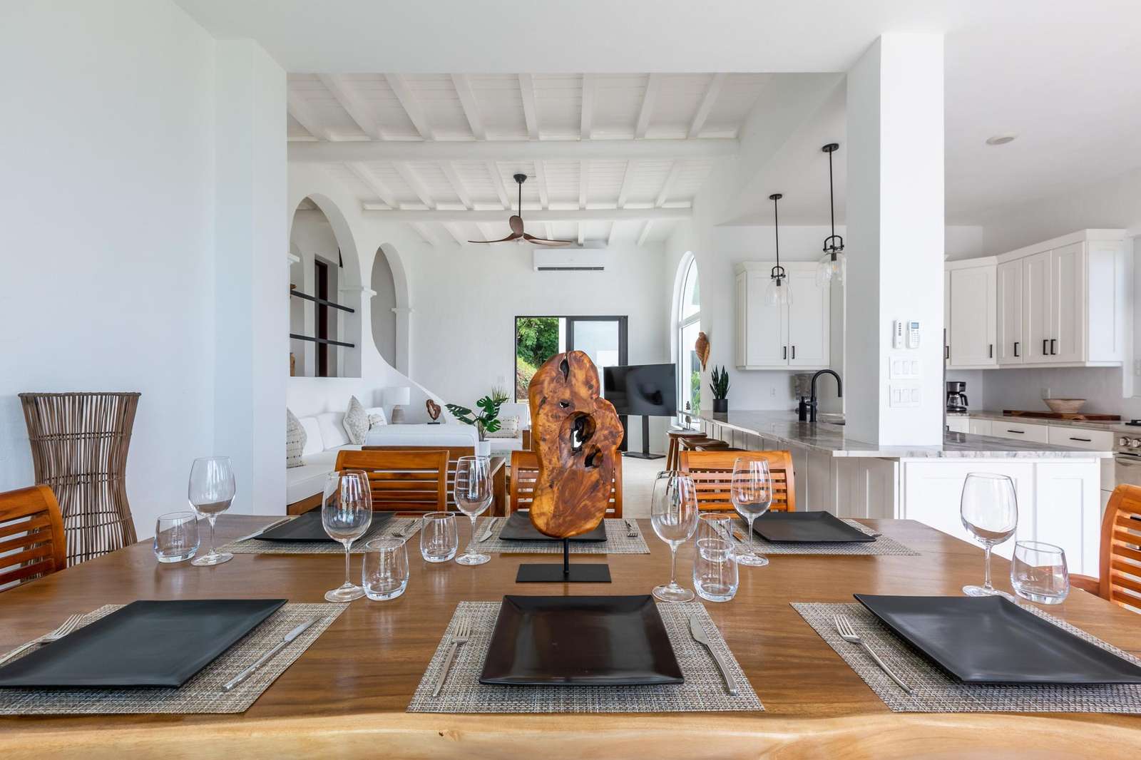 A gorgeous teak dining table with plenty of room for 8 gives you the option of indoor dining. In the living area, you’ll find plenty of comfy seating with gorgeous ocean views & (if you can bear to look away from your tropical surroundings) a 65” flat-screen SmartTV for moments of downtime.